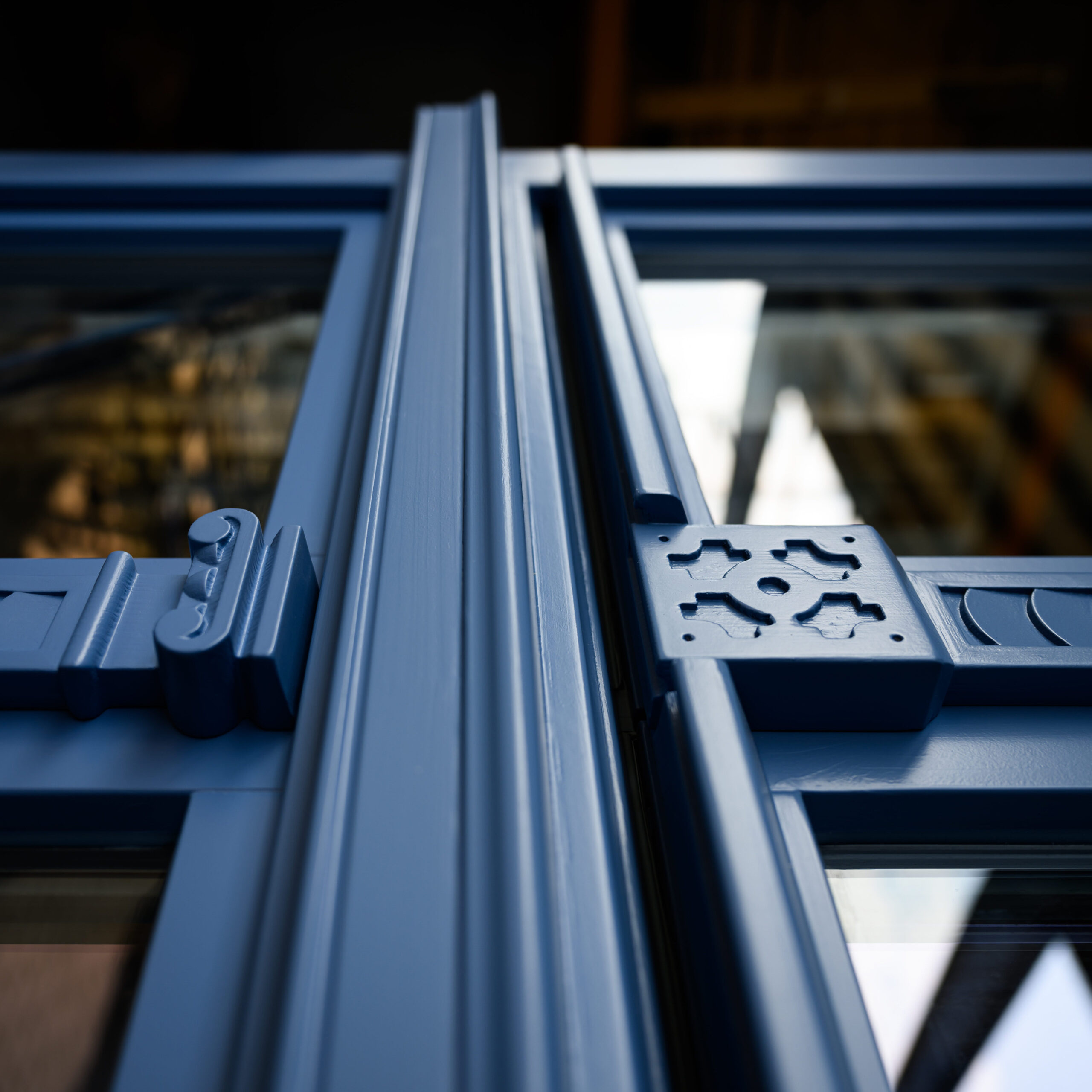 Les nombreuses années d’expérience de MS Okna i Drzwi dans la production de fenêtres en bois comprennent : la reproduction de divers types d’éléments décoratifs qui constituent un ajout fréquent aux fenêtres historiques . Ces types de composants comprennent des têtes, des pieds, des bandes de recouvrement, des stores et des boulons fraisés de manière décorative. Chaque commande est traitée individuellement. Le processus d’exécution de la commande comprend la préparation de la documentation technique nécessaire pour le restaurateur du bâtiment. Il s’agit notamment de présenter une vue des menuiseries, de développer toutes les coupes, ainsi que de dessiner les détails des éléments décoratifs.