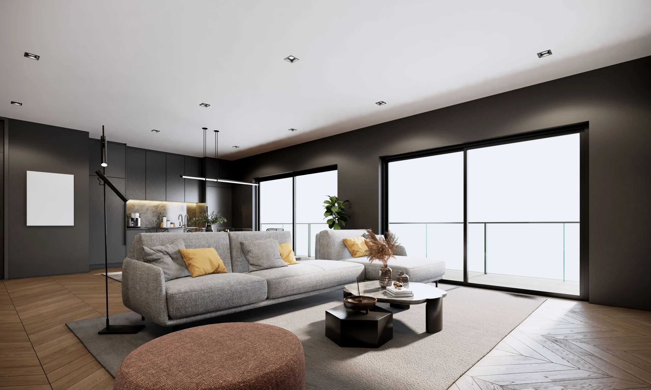 Un cadre de fenêtre foncé crée une ambiance intérieure unique. Il s’harmonise parfaitement avec les accessoires en bois, béton, pierre et métal. Dans les pièces lumineuses, il apporte une touche d’élégance qui souligne les lignes architecturales et donne de la profondeur à l’espace.