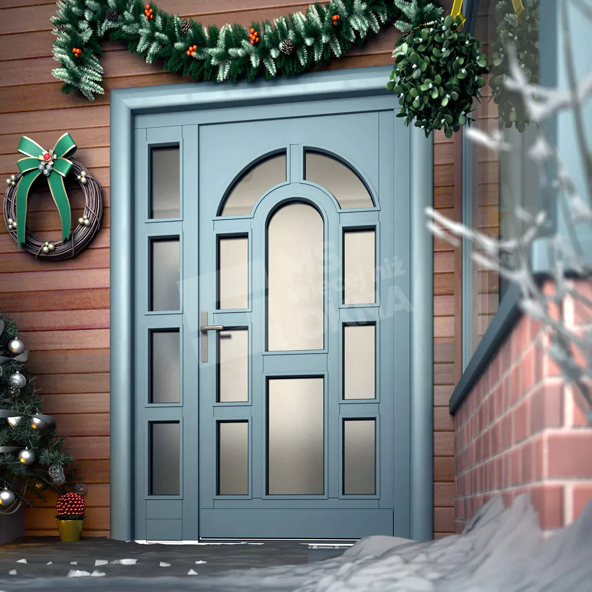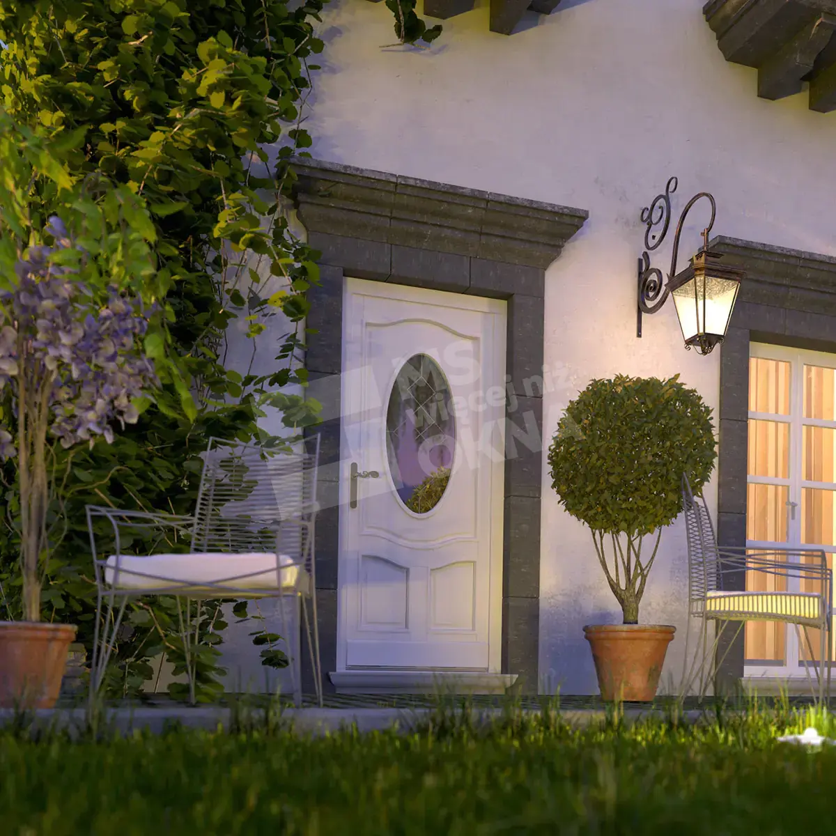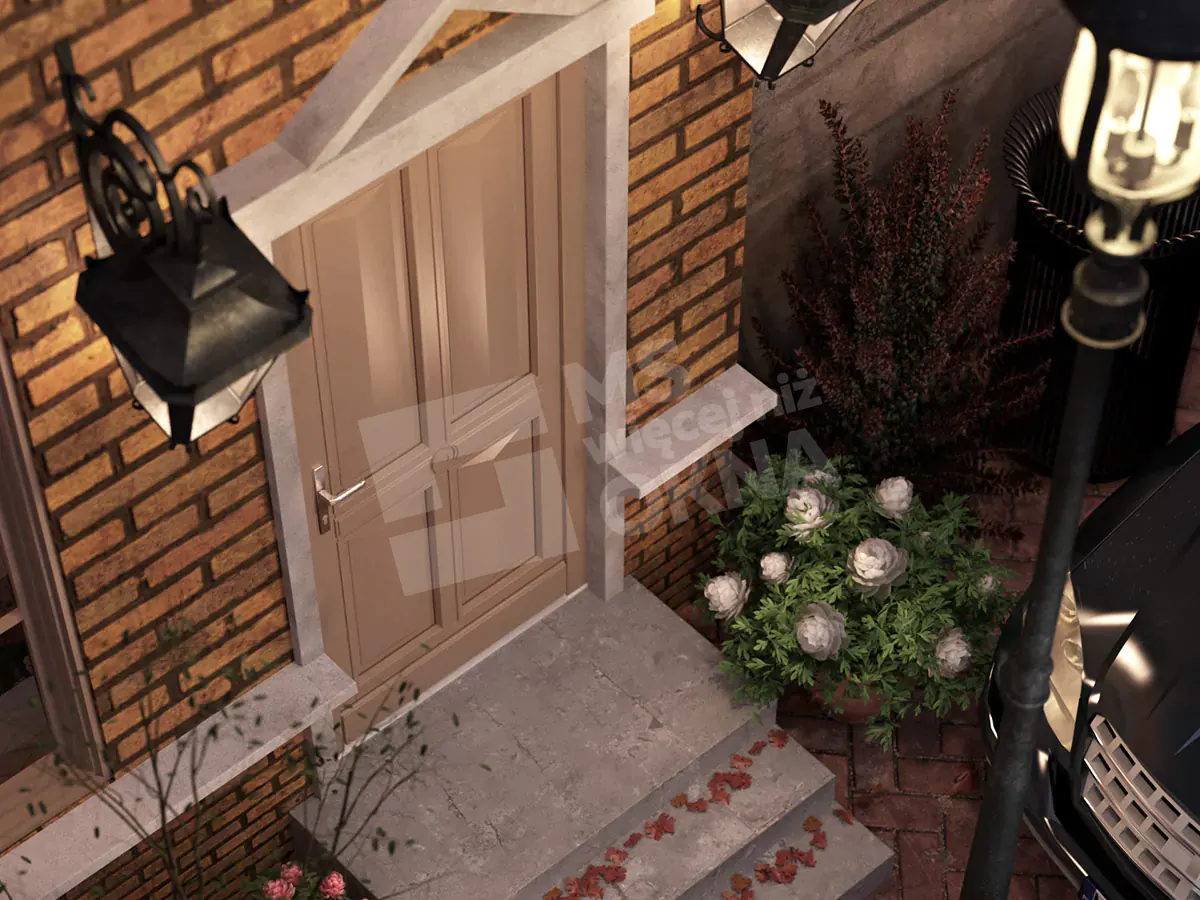 - visuel – la structure est la décoration de la façade principale de la maison, elle influence l’apparence de l’ensemble du bâtiment. Pour cette raison, sa finition doit être assortie aux autres portes et fenêtres ;