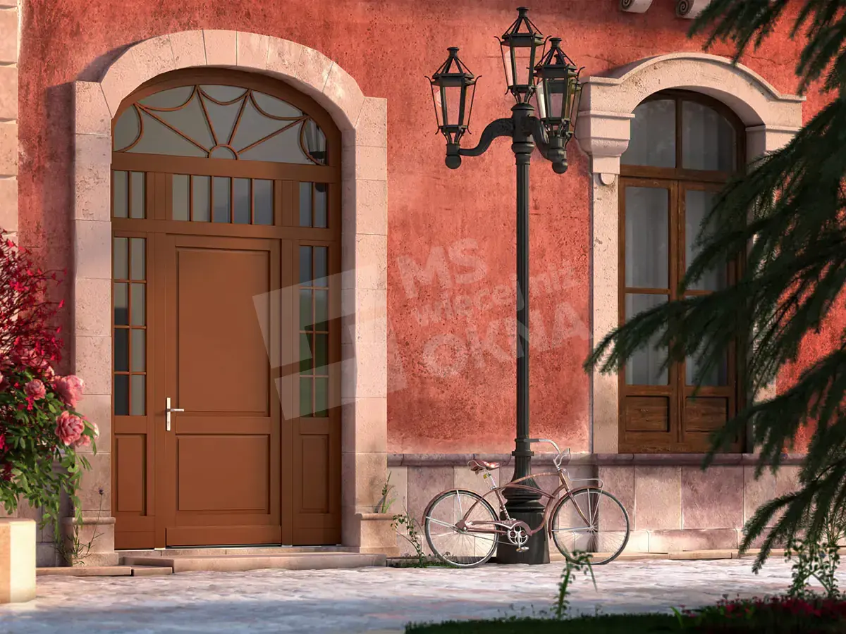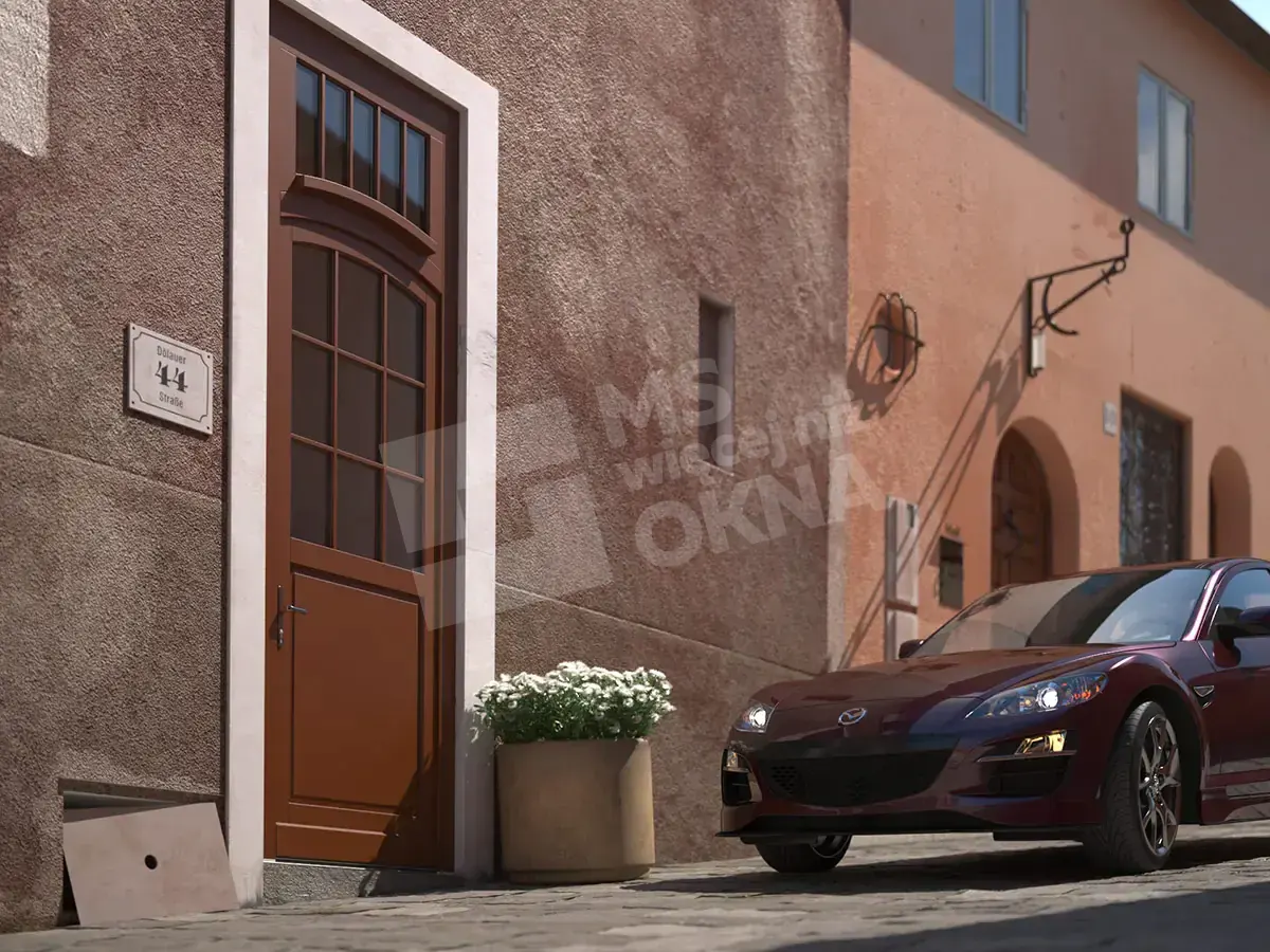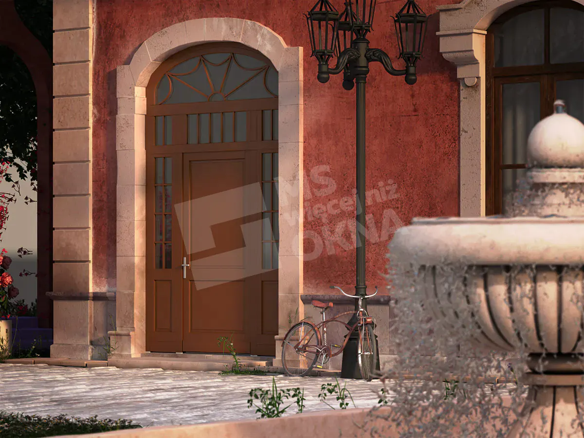 Les portes d’entrée en bois standard sont de forme rectangulaire. Ils sont disponibles en versions à un ou deux vantaux. Ils peuvent également prendre d’autres formes, par ex. arc . Comme dans le cas des portes patio FD, les impostes des portes d’entrée, en plus d’être rectangulaires ou cintrées, peuvent également avoir la forme d’ellipses, de trapèzes, de triangles, etc. Il est également possible d’utiliser des lattes, des barres en bois et des panneaux de porte en bois .