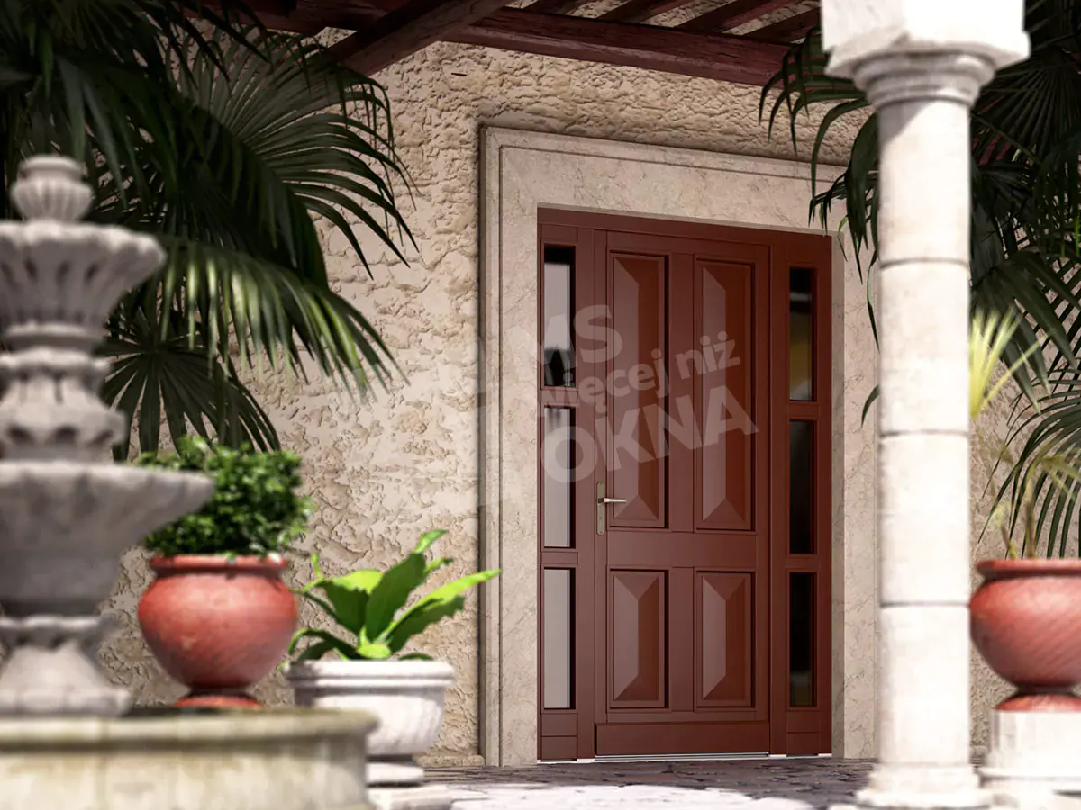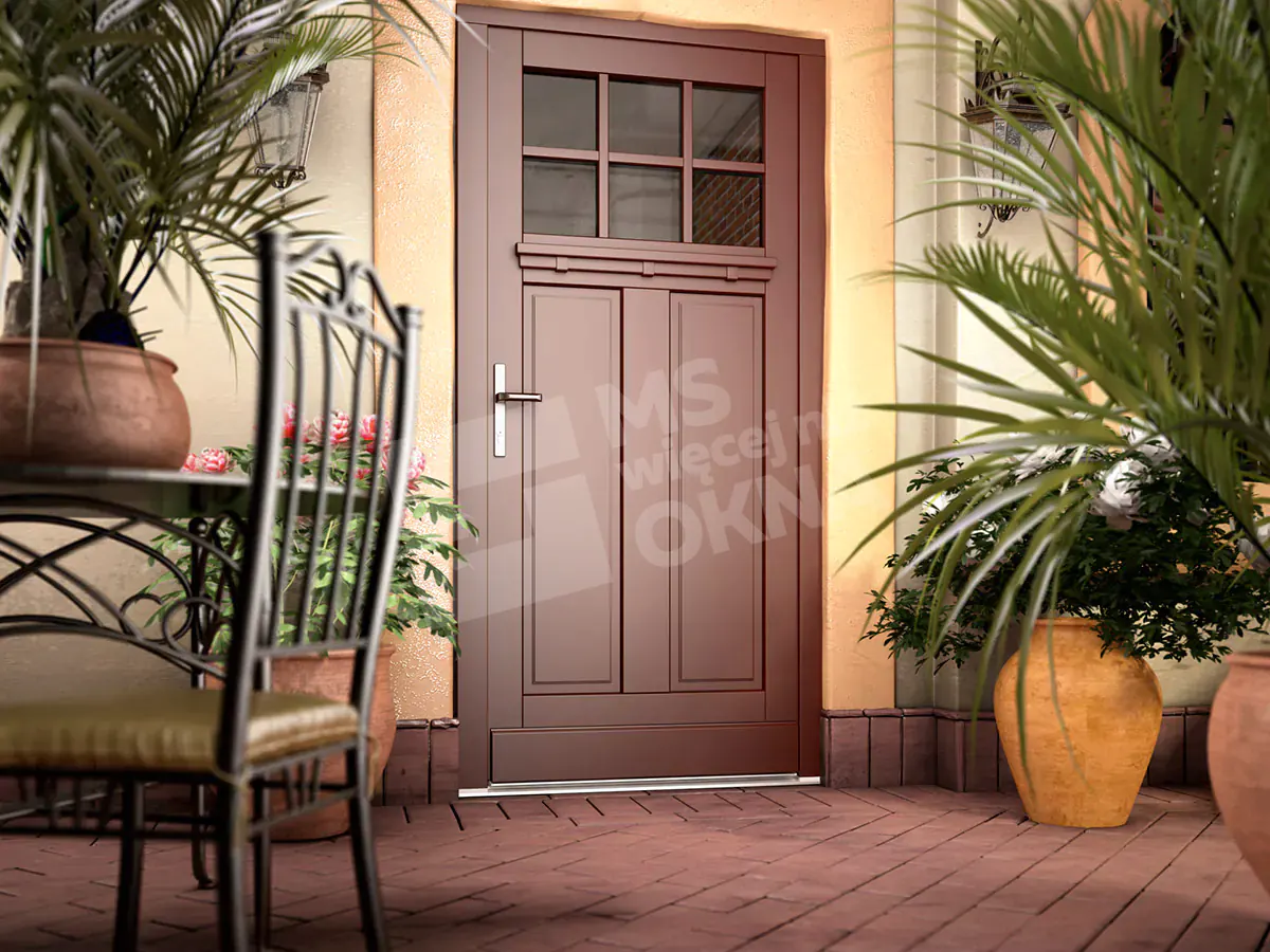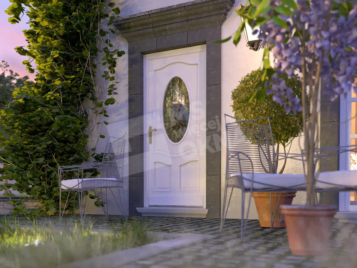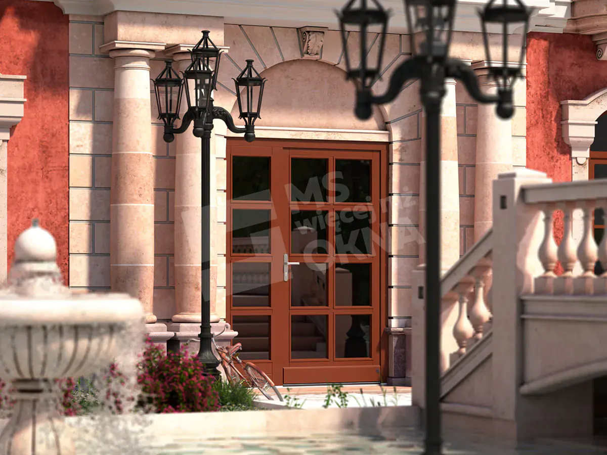 Les portes d’entrée en bois standard sont de forme rectangulaire. Ils sont disponibles en versions à un ou deux vantaux. Ils peuvent également prendre d’autres formes, par ex. arc . Comme dans le cas des portes patio FD, les impostes des portes d’entrée, en plus d’être rectangulaires ou cintrées, peuvent également avoir la forme d’ellipses, de trapèzes, de triangles, etc. Il est également possible d’utiliser des lattes, des barres en bois et des panneaux de porte en bois .