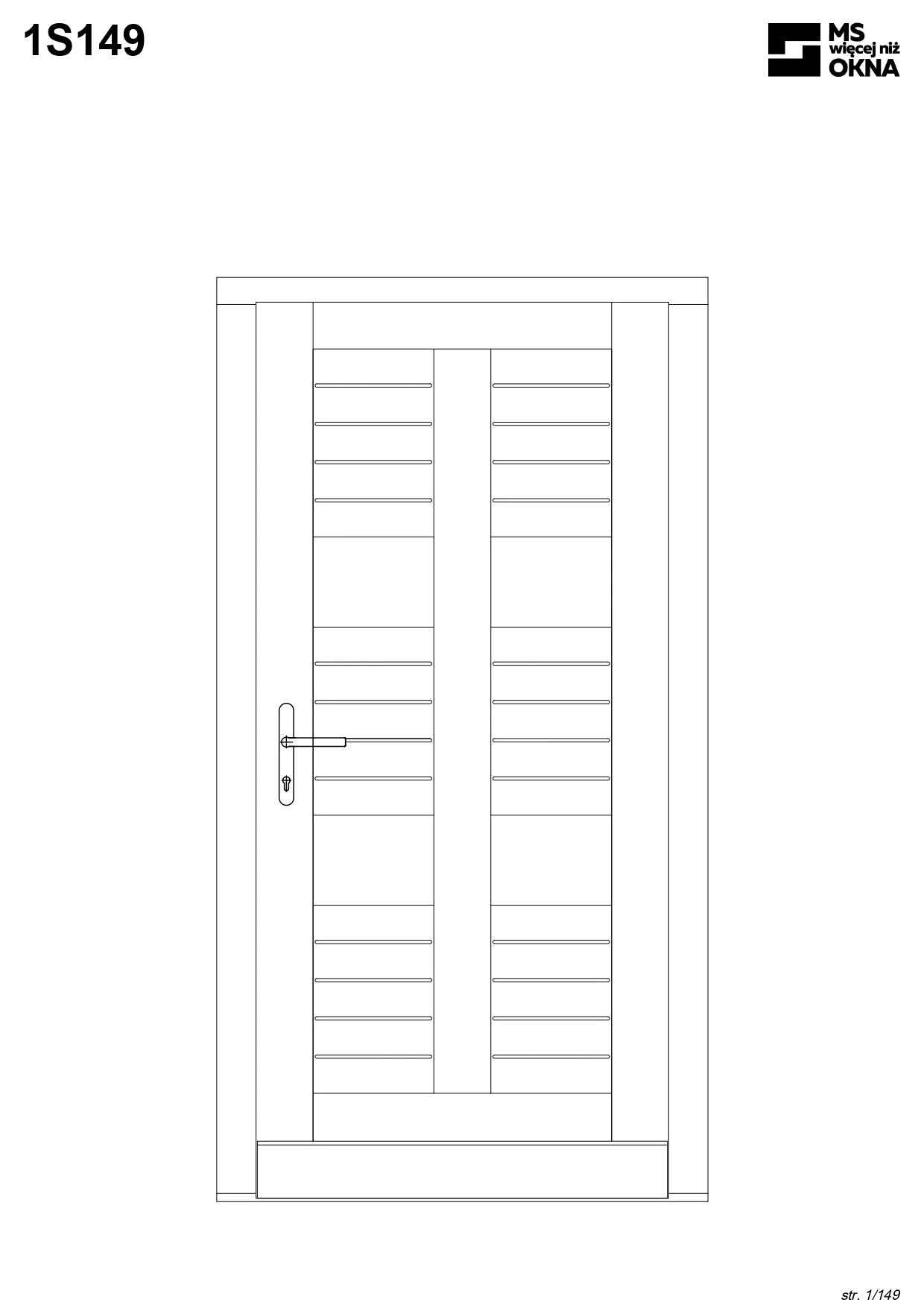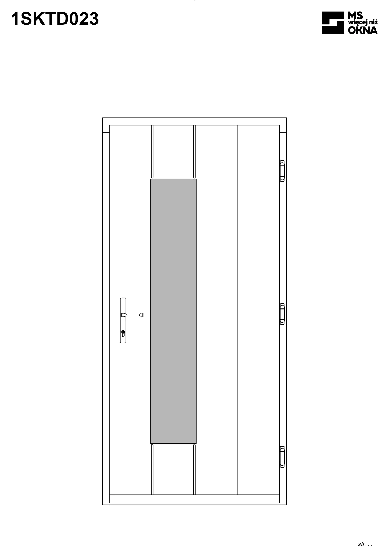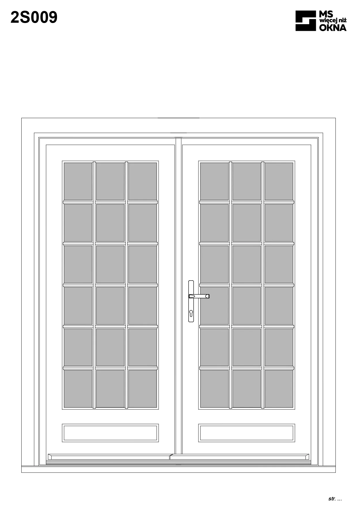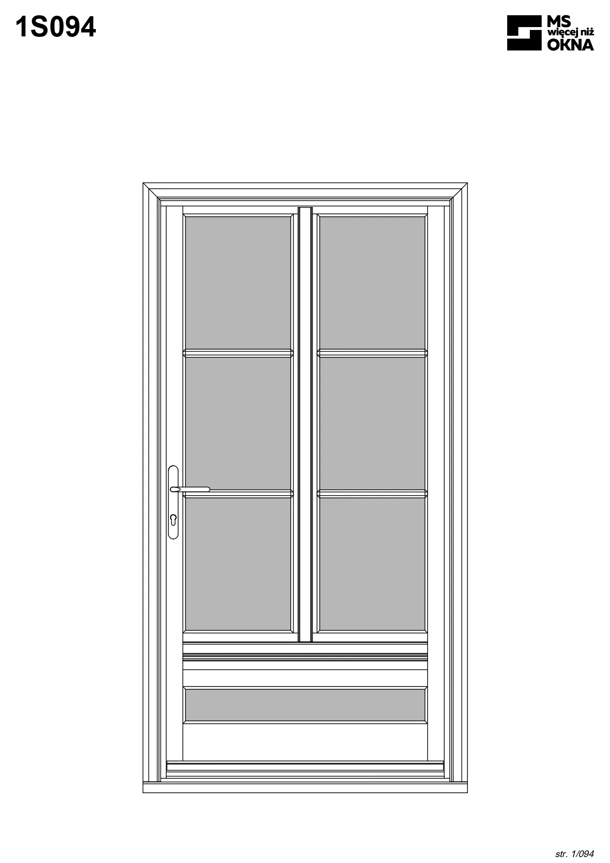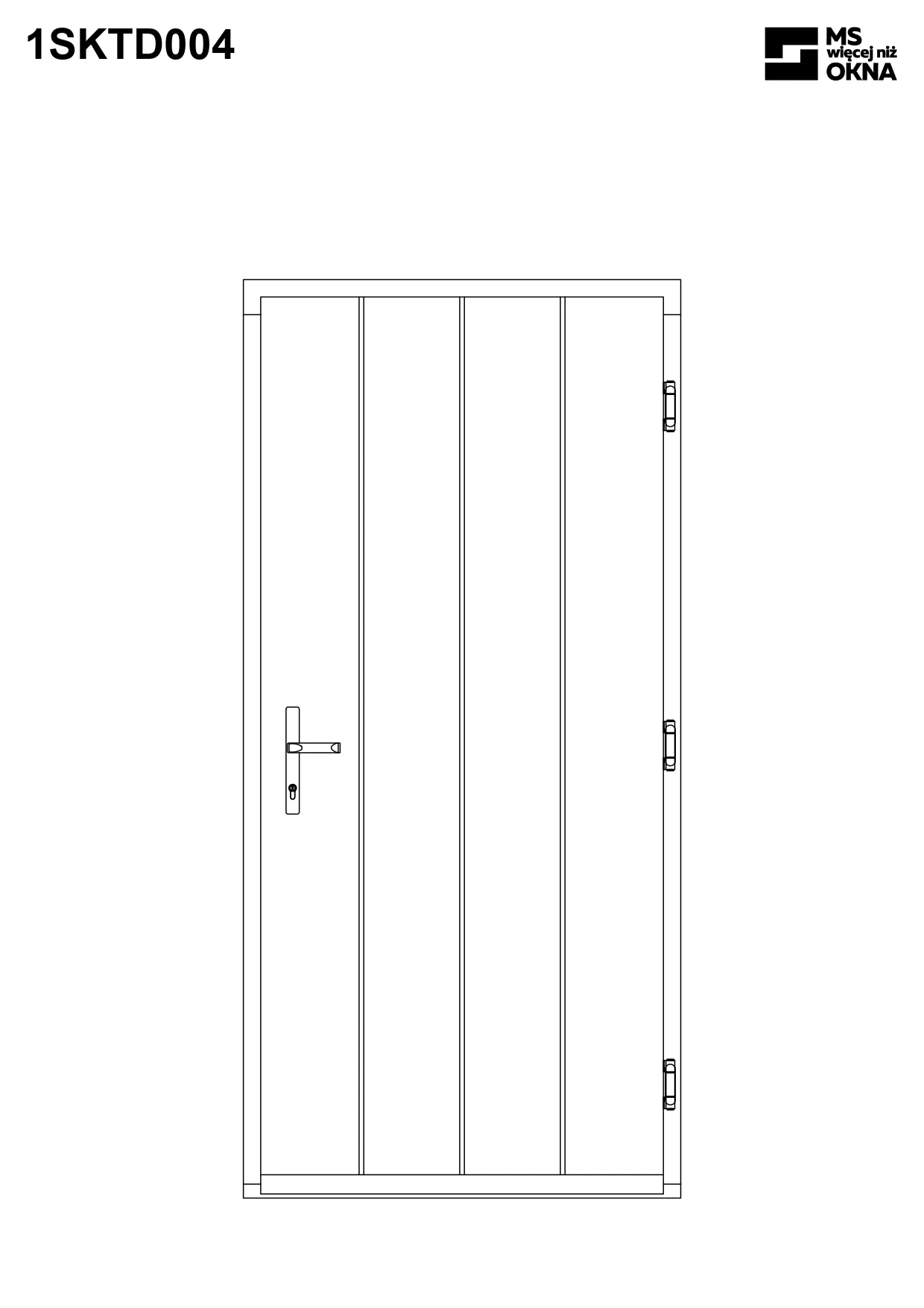 - version standard avec une poignée placée sur le vantail actif – le vantail passif est verrouillé à l’aide de loquets haut/bas, et le déverrouillage s’effectue à l’aide de la poignée,