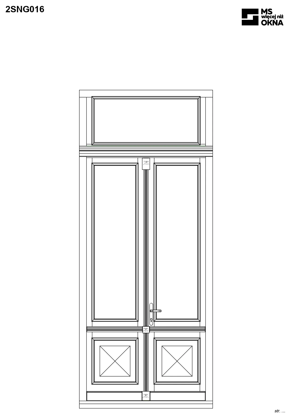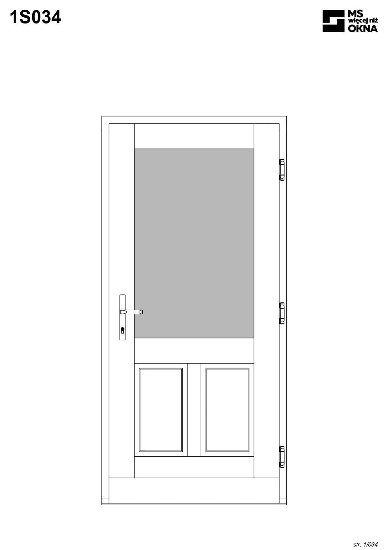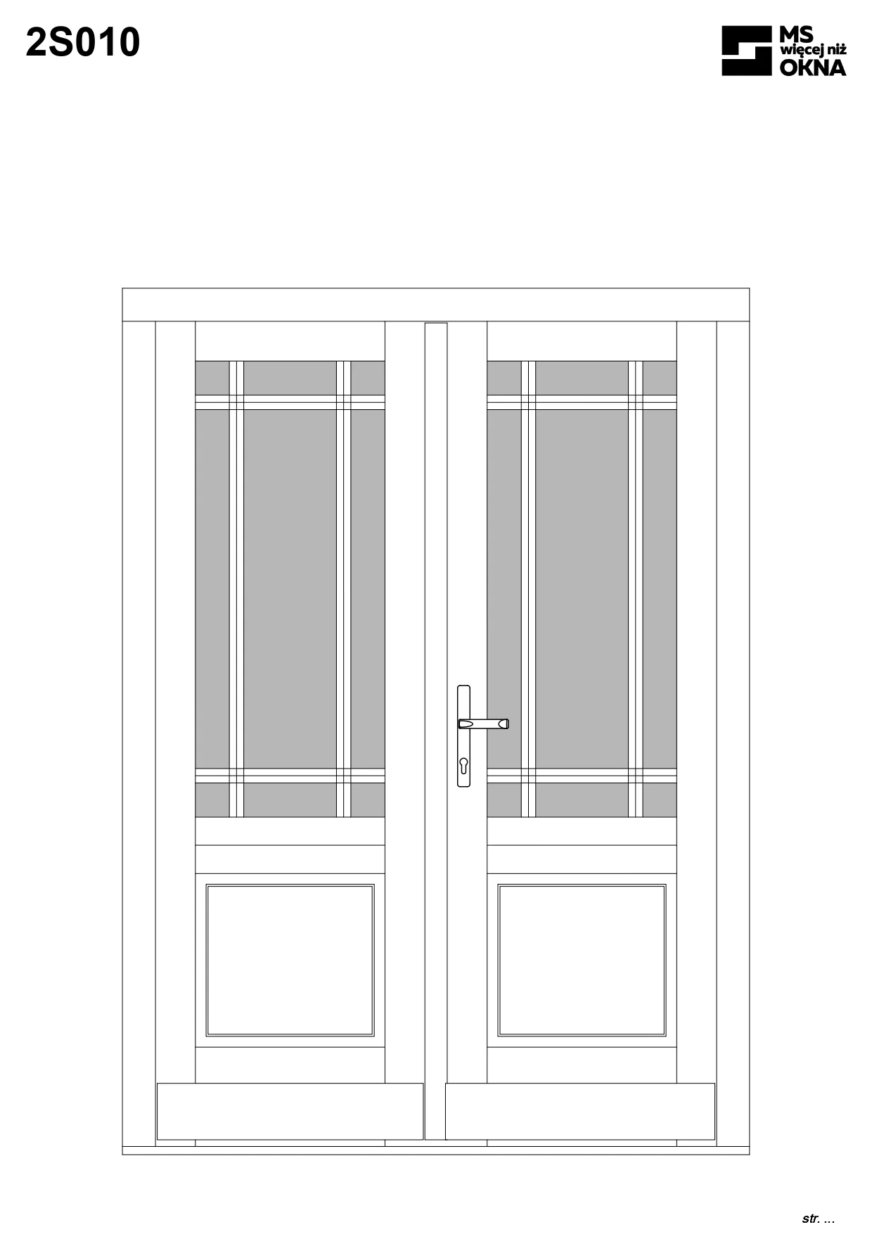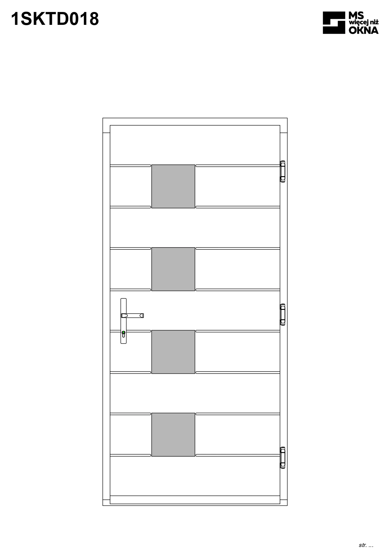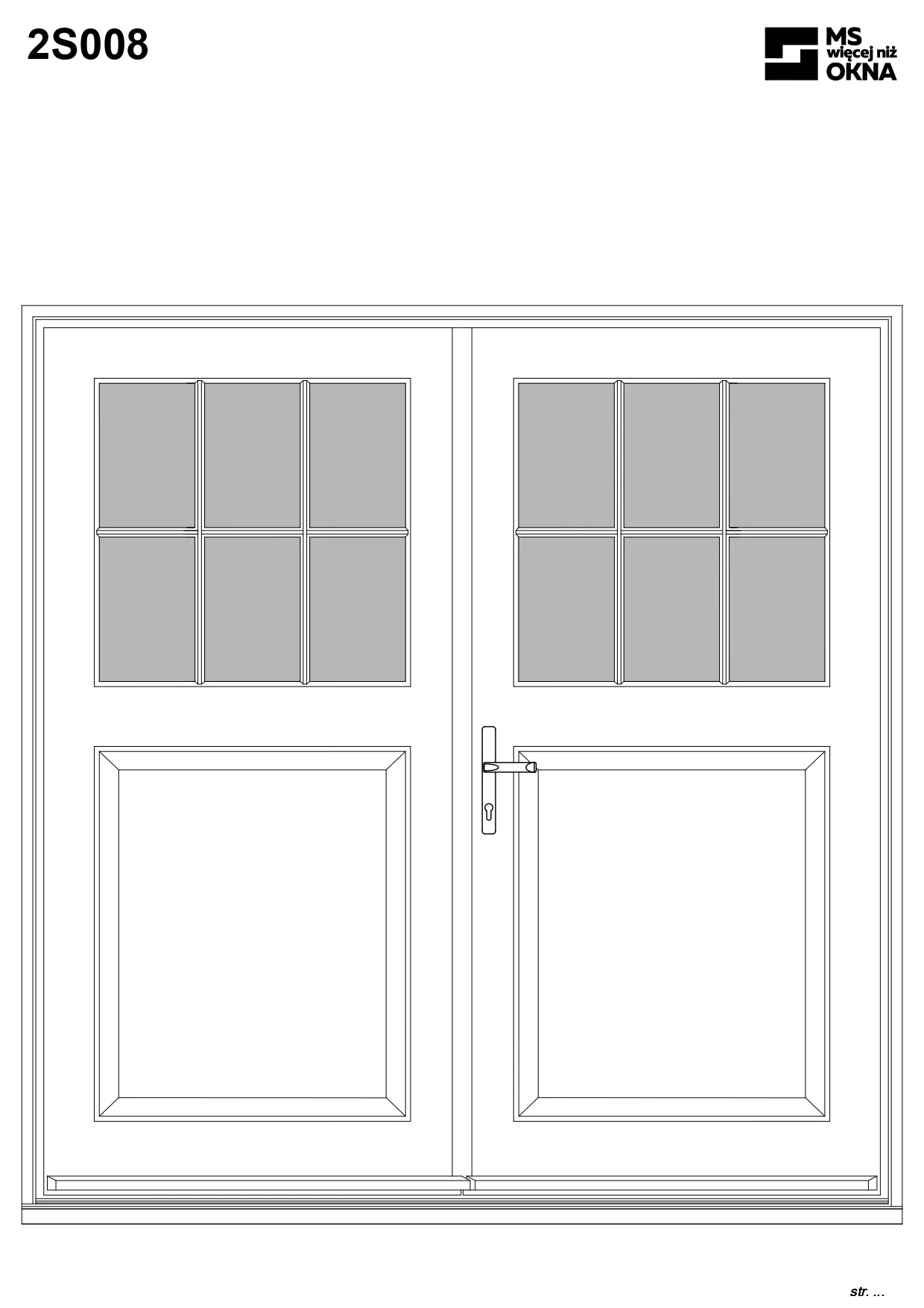 - version standard avec une poignée placée sur le vantail actif – le vantail passif est verrouillé à l’aide de loquets haut/bas, et le déverrouillage s’effectue à l’aide de la poignée,