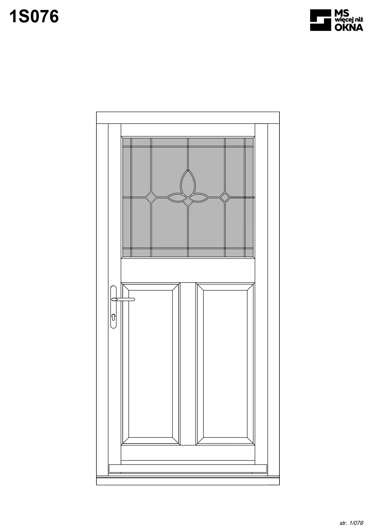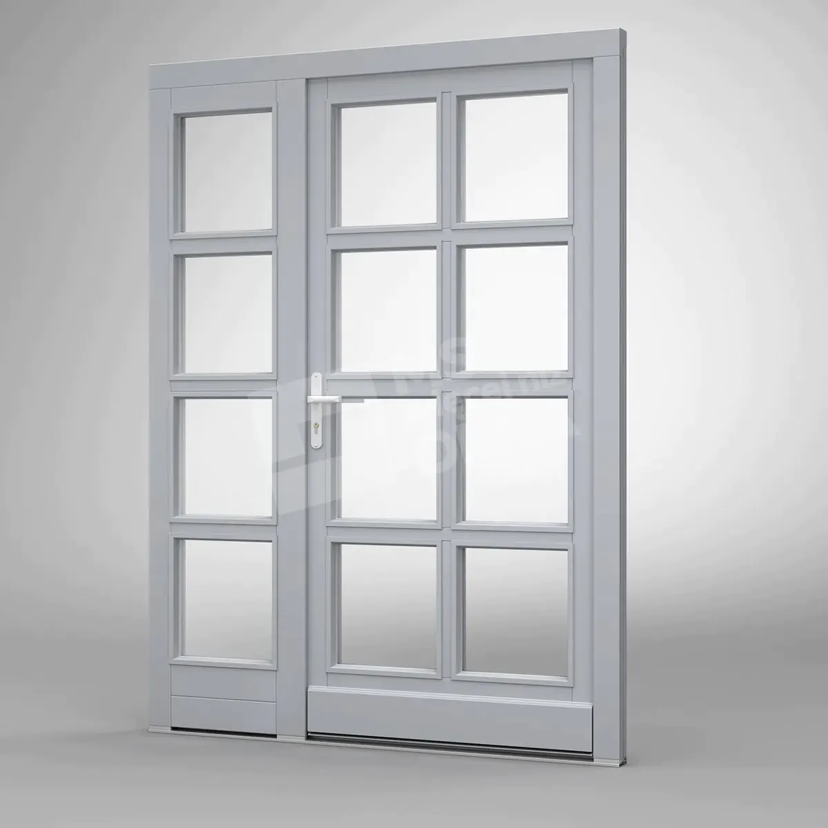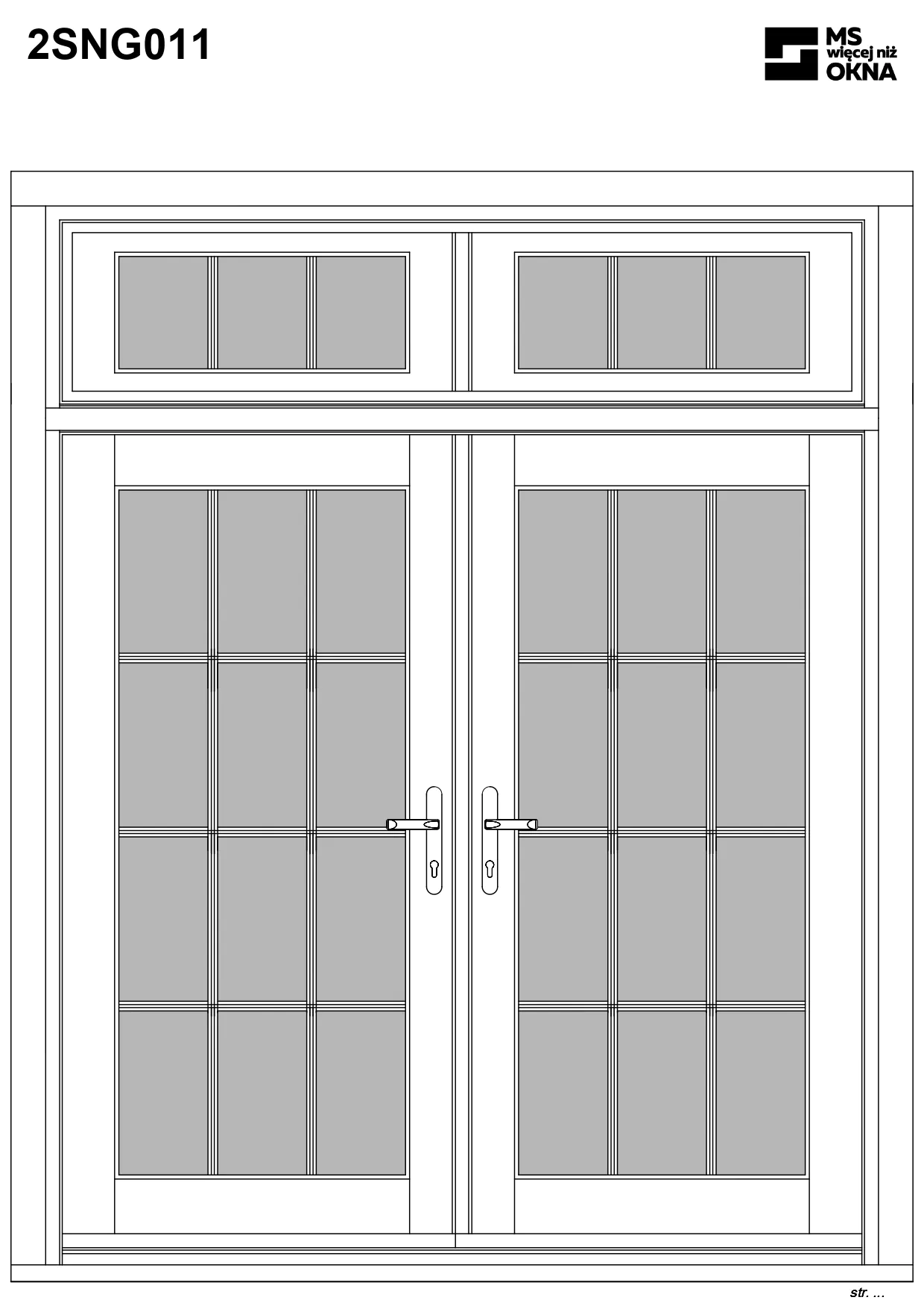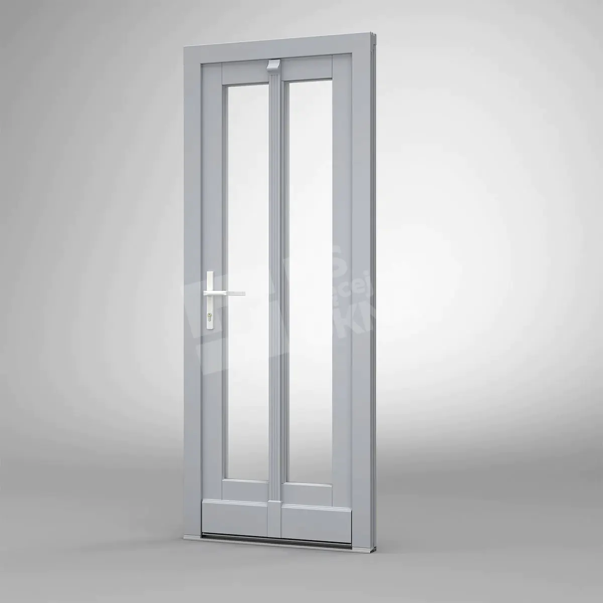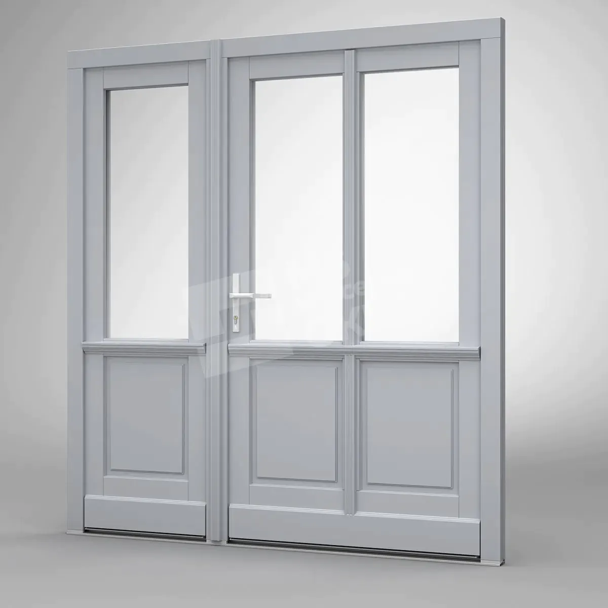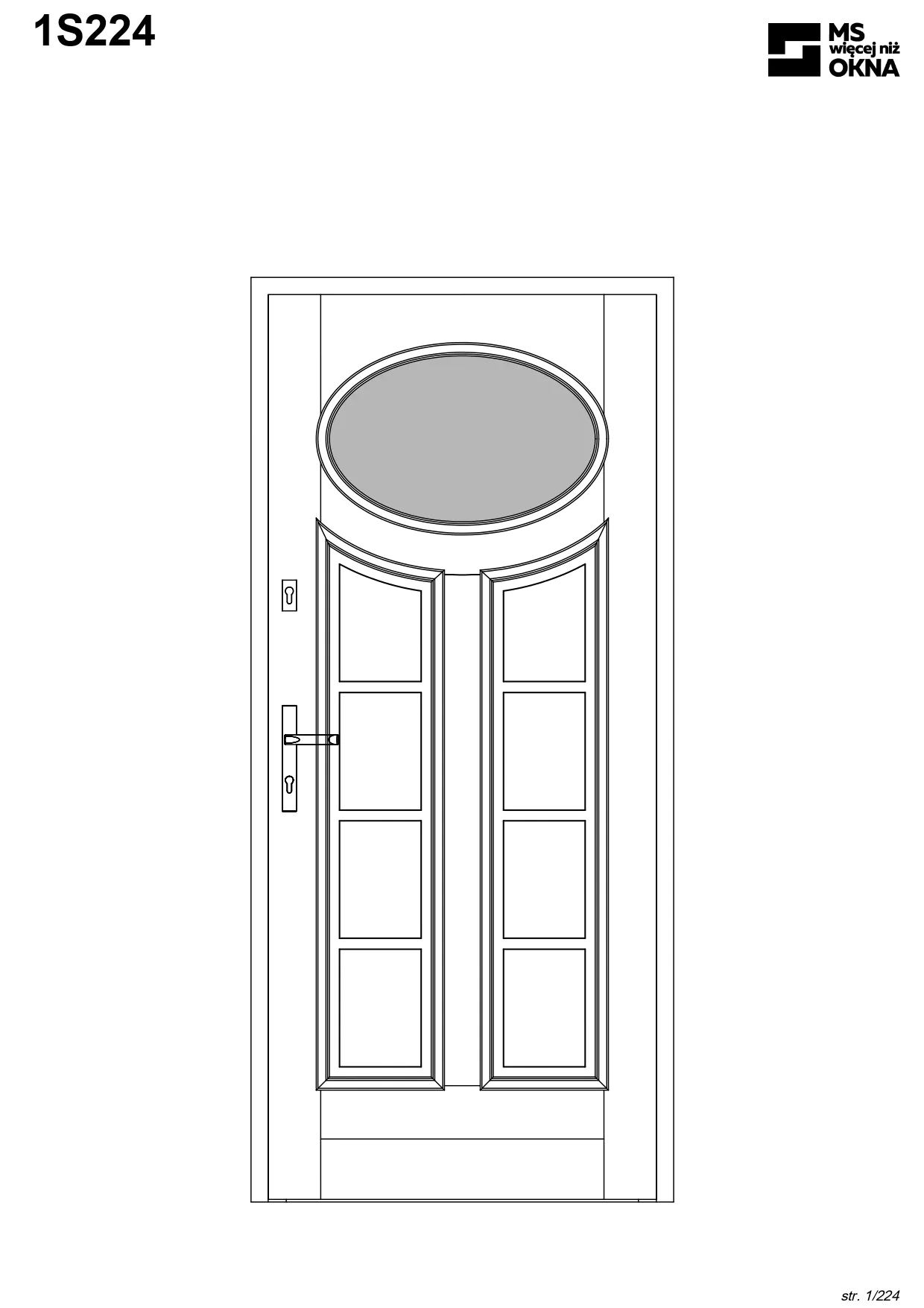 - version standard avec une poignée placée sur le vantail actif – le vantail passif est verrouillé à l’aide de loquets haut/bas, et le déverrouillage s’effectue à l’aide de la poignée,