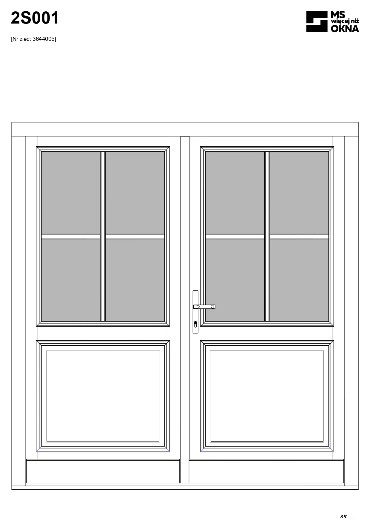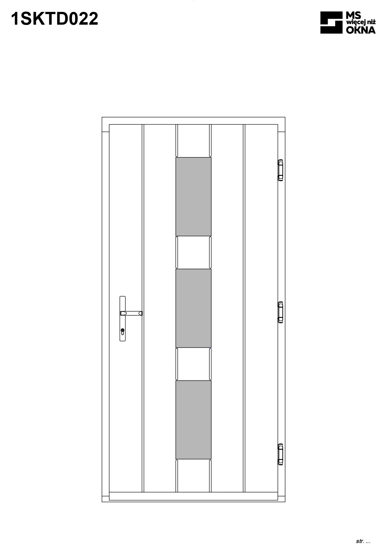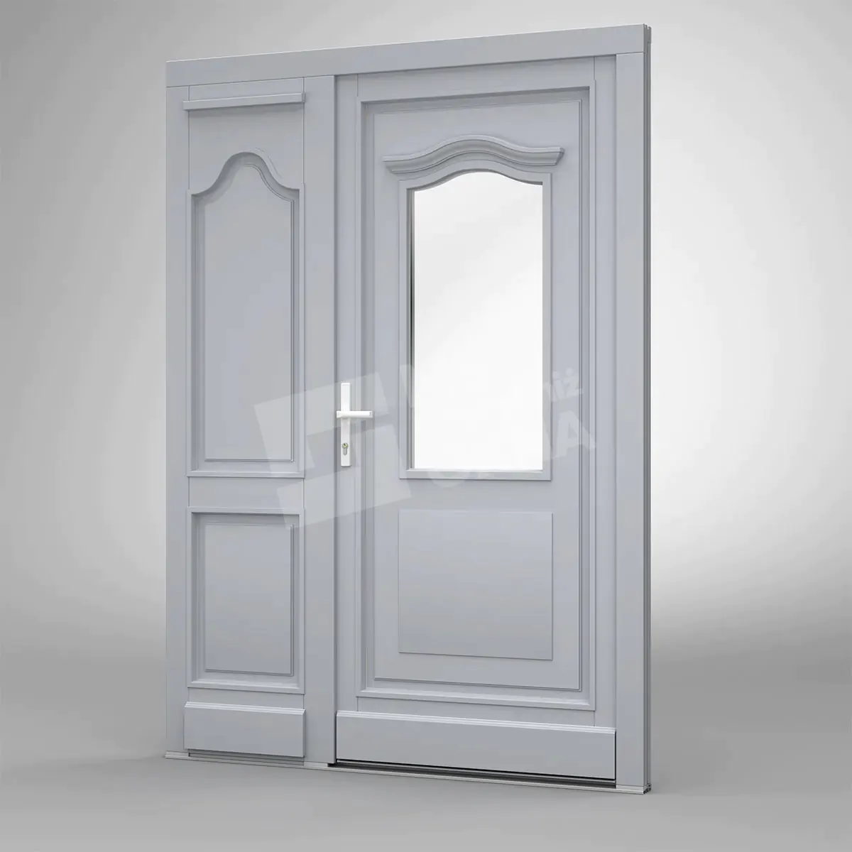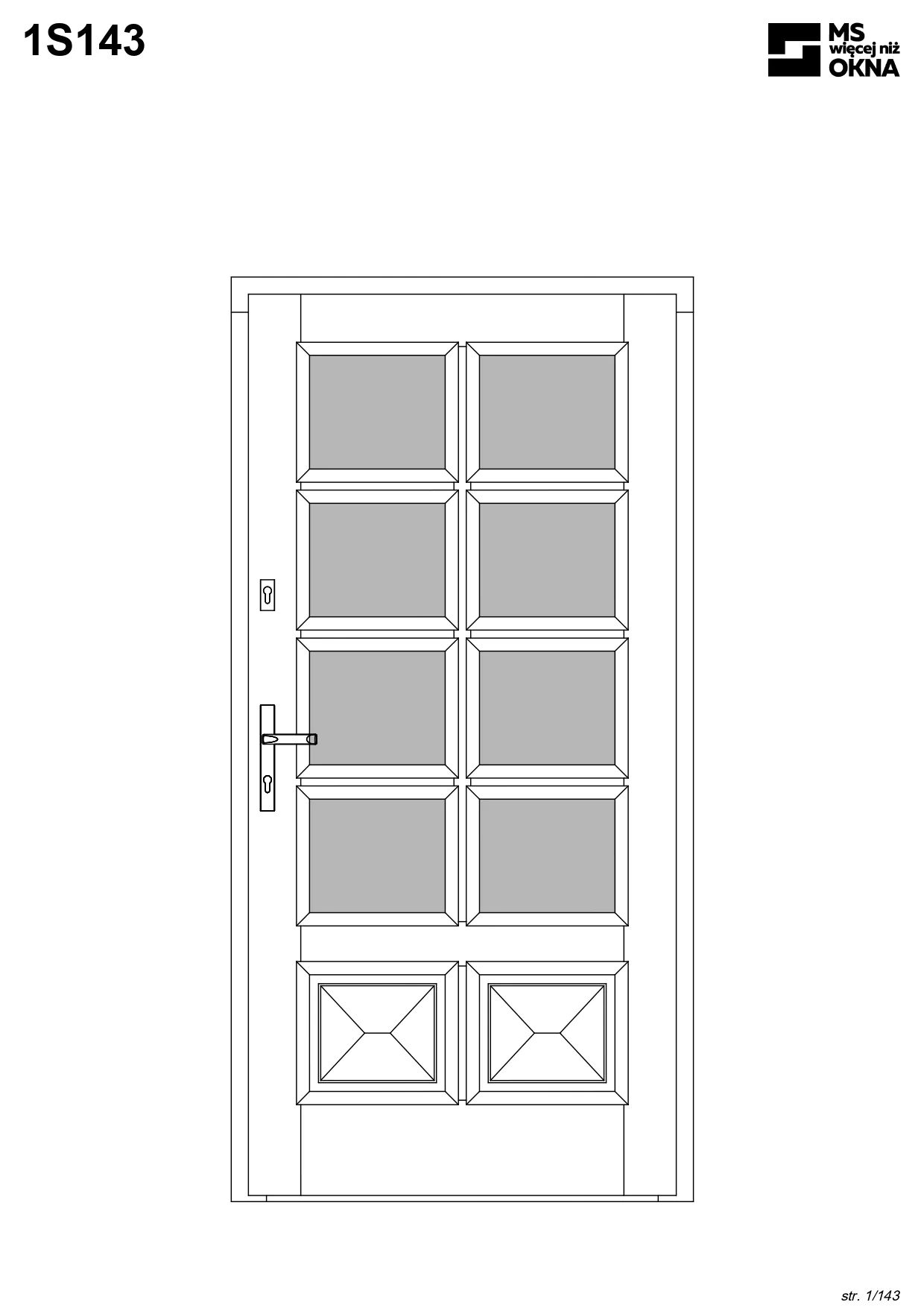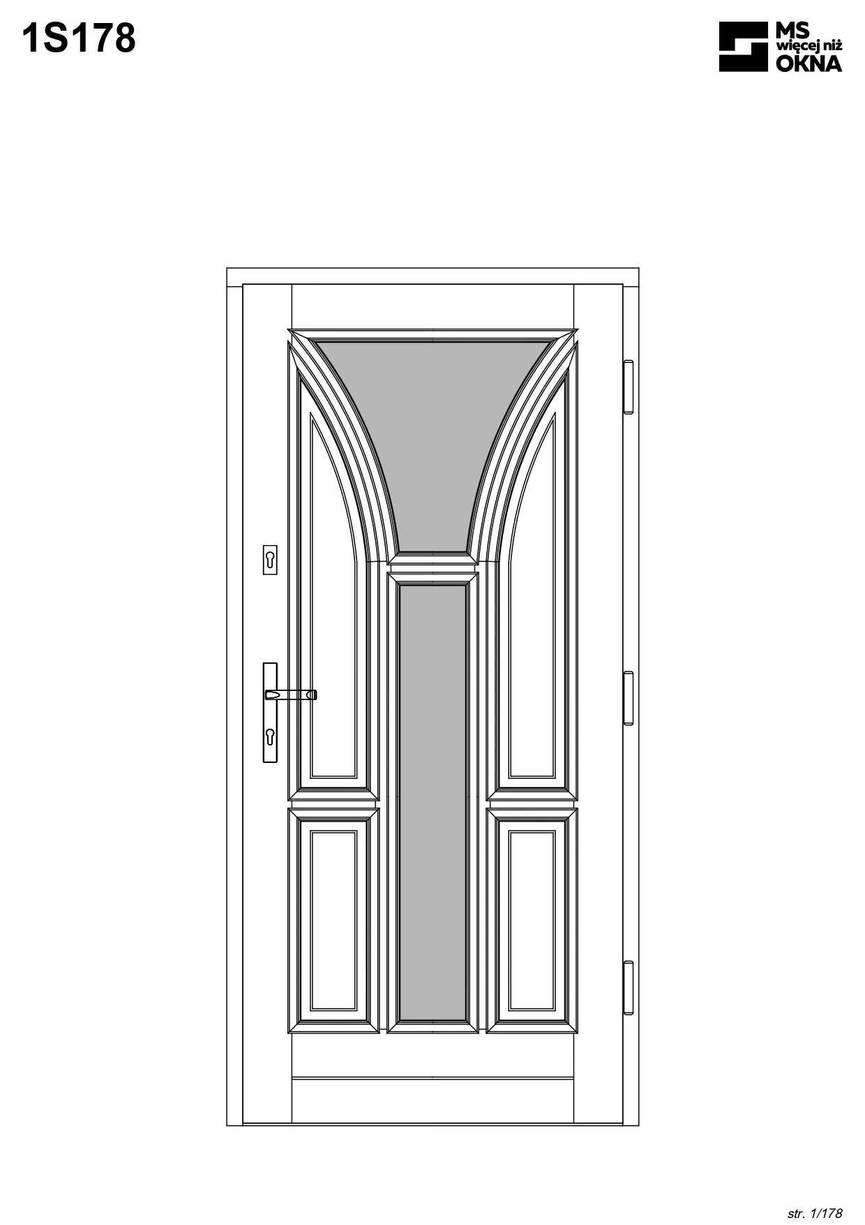 - version standard avec une poignée placée sur le vantail actif – le vantail passif est verrouillé à l’aide de loquets haut/bas, et le déverrouillage s’effectue à l’aide de la poignée,