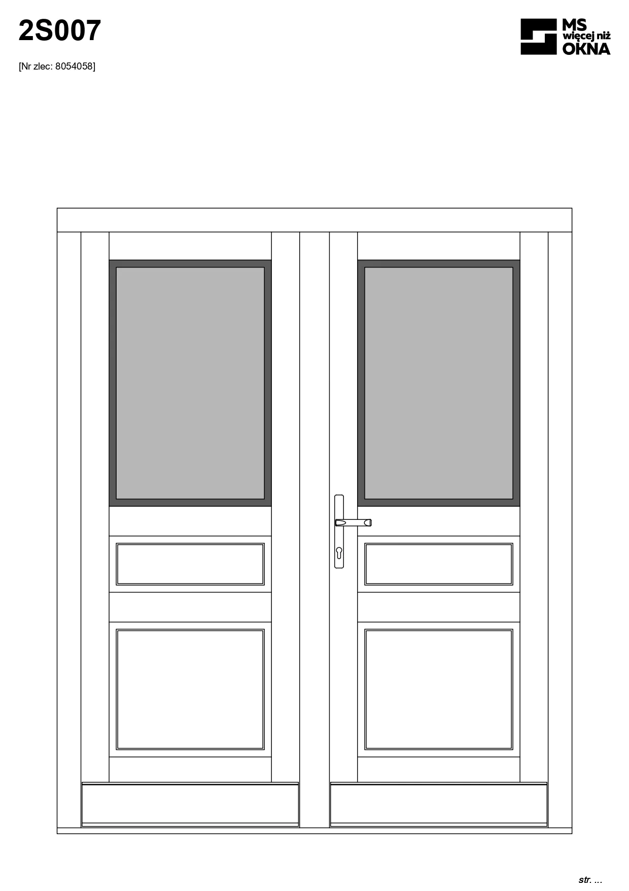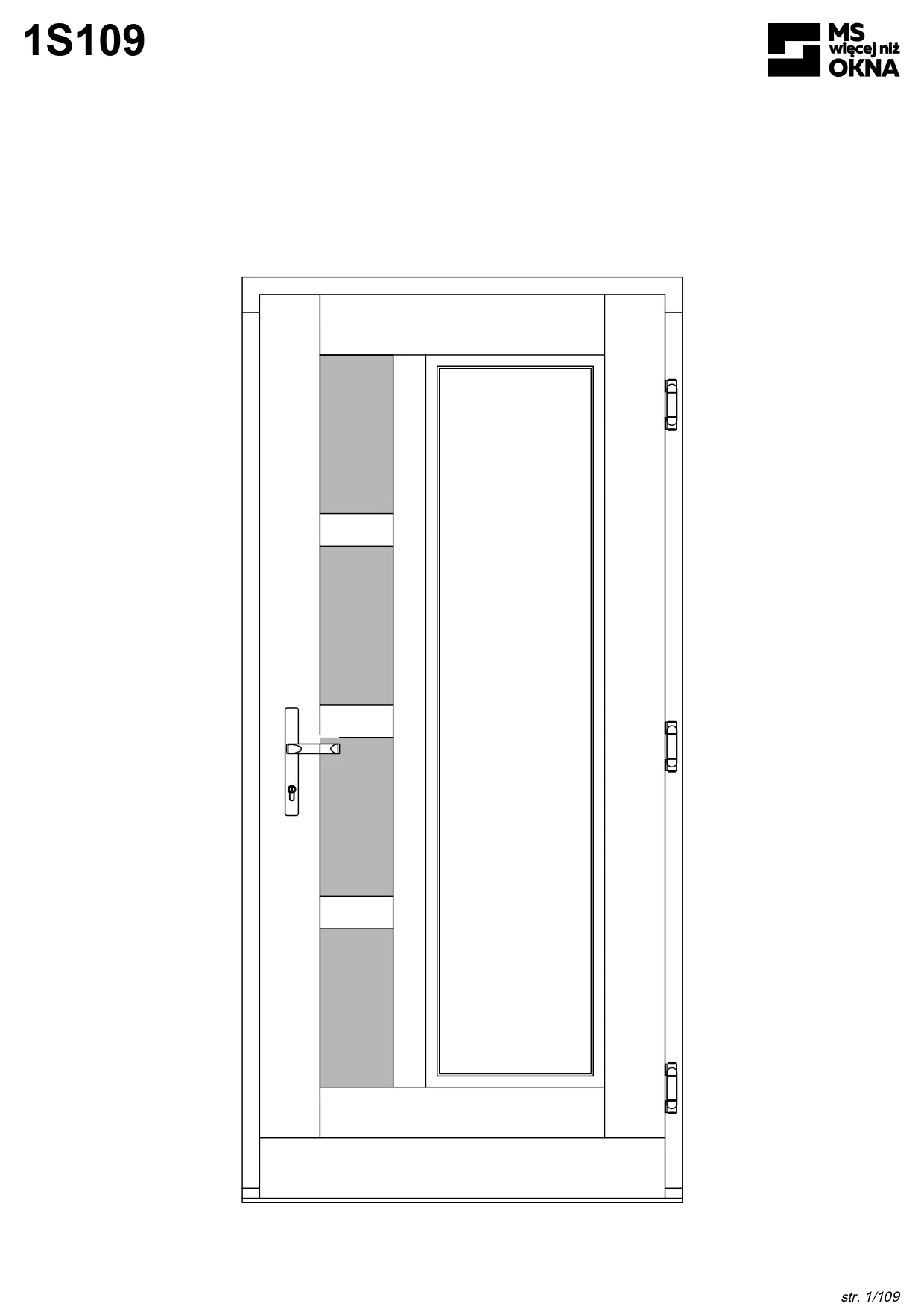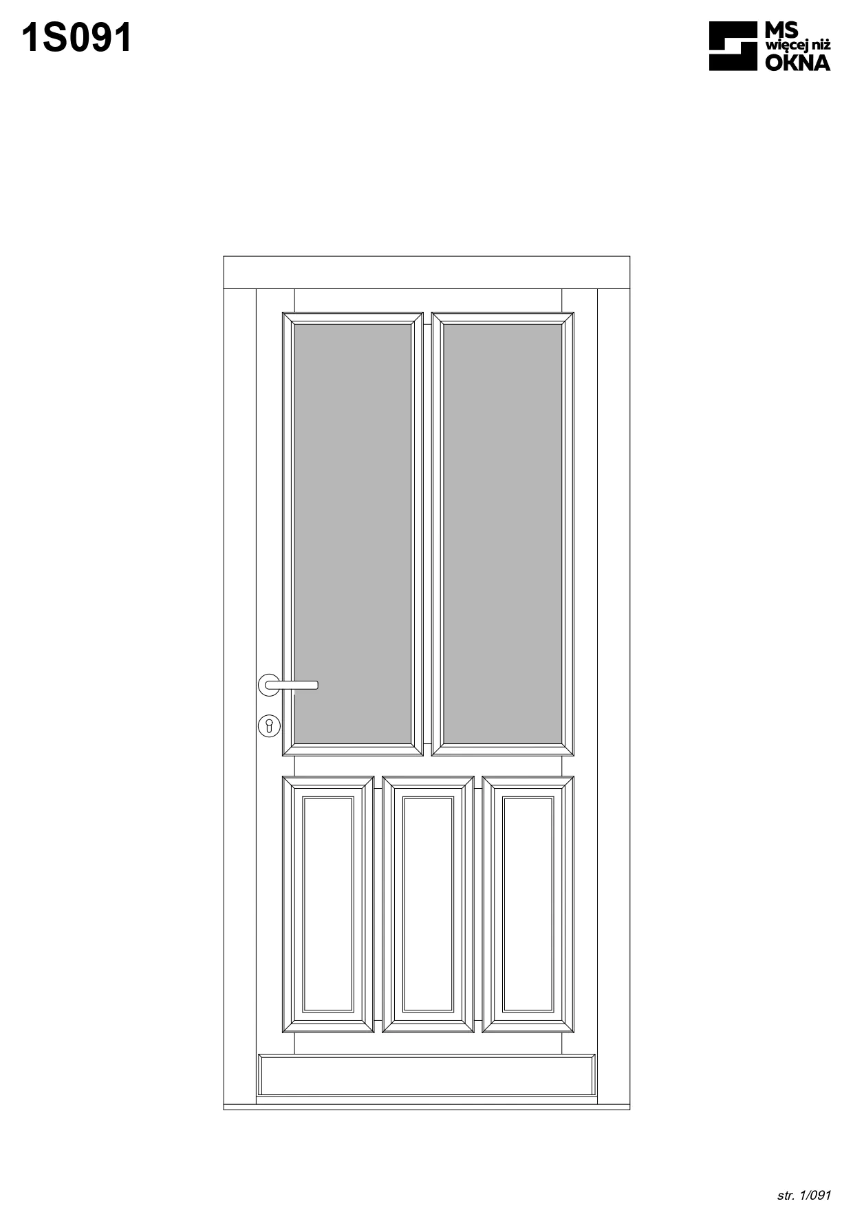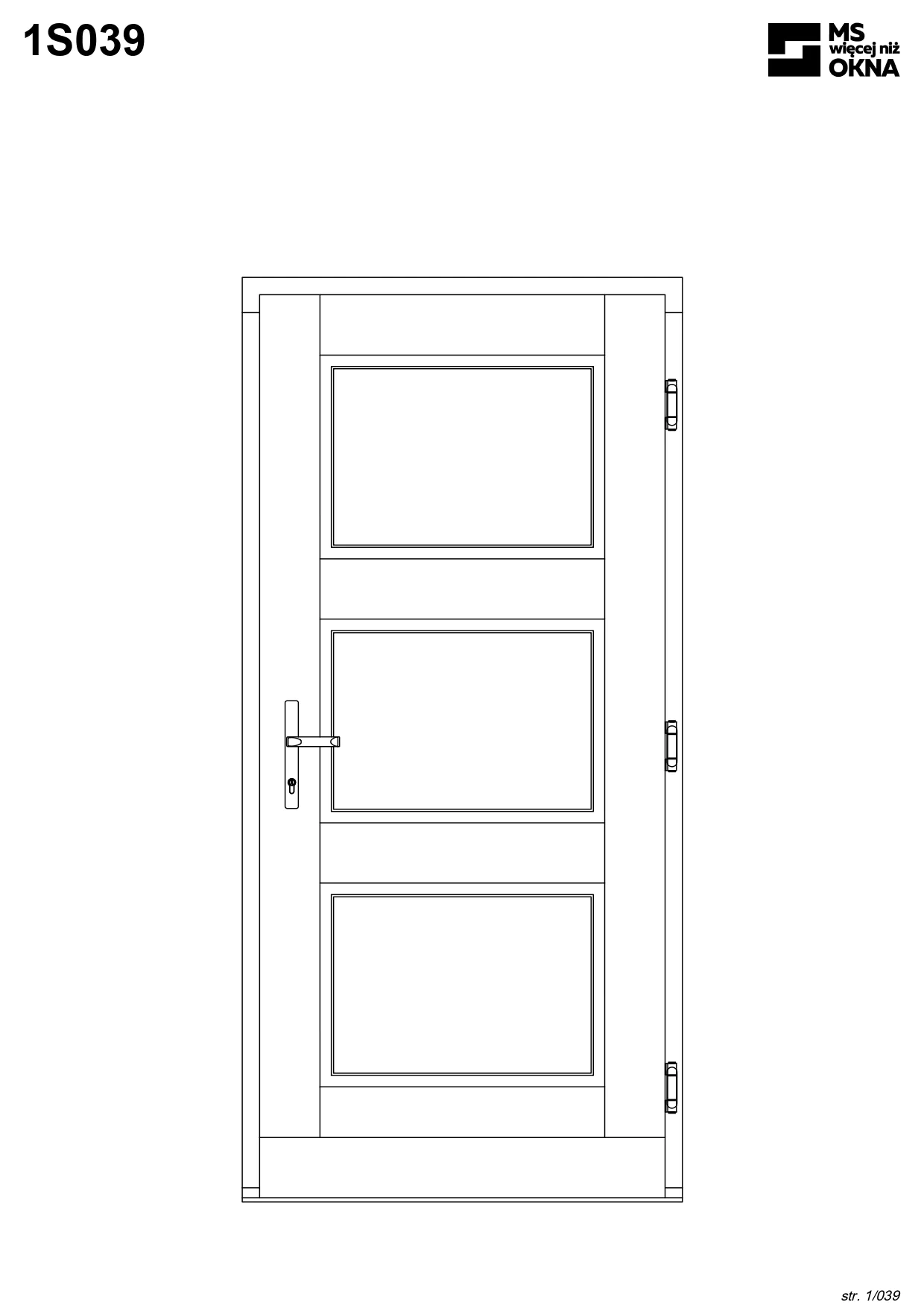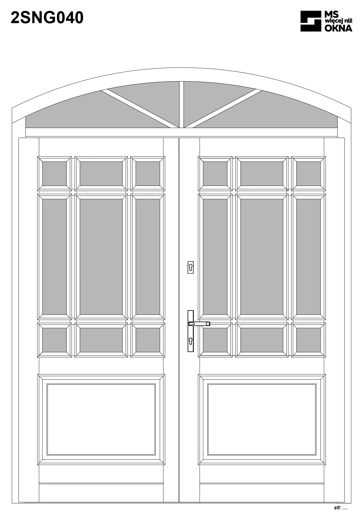 - version standard avec une poignée placée sur le vantail actif – le vantail passif est verrouillé à l’aide de loquets haut/bas, et le déverrouillage s’effectue à l’aide de la poignée,