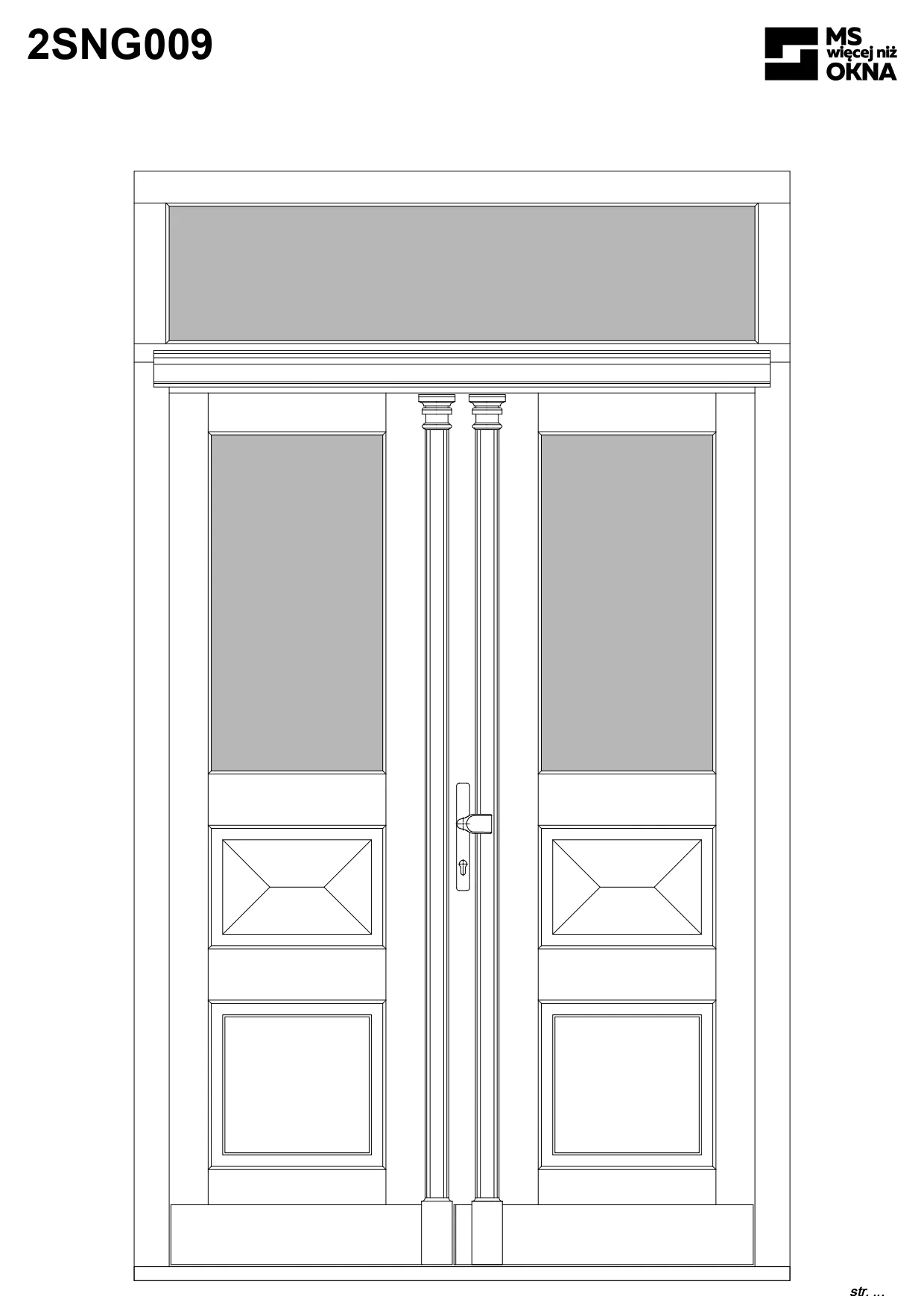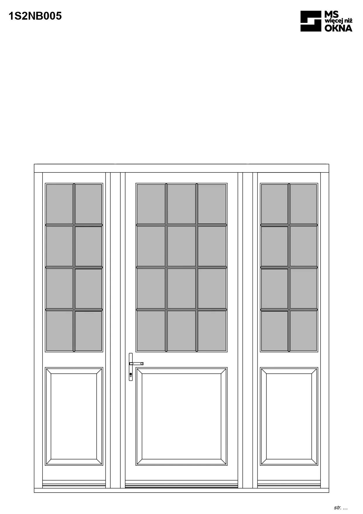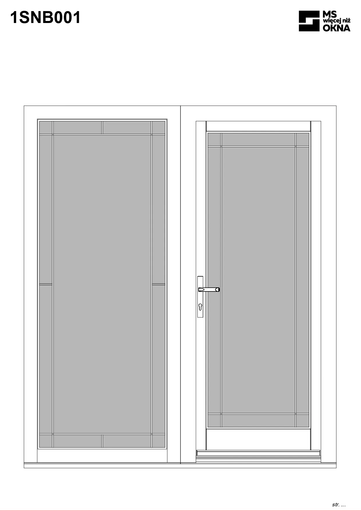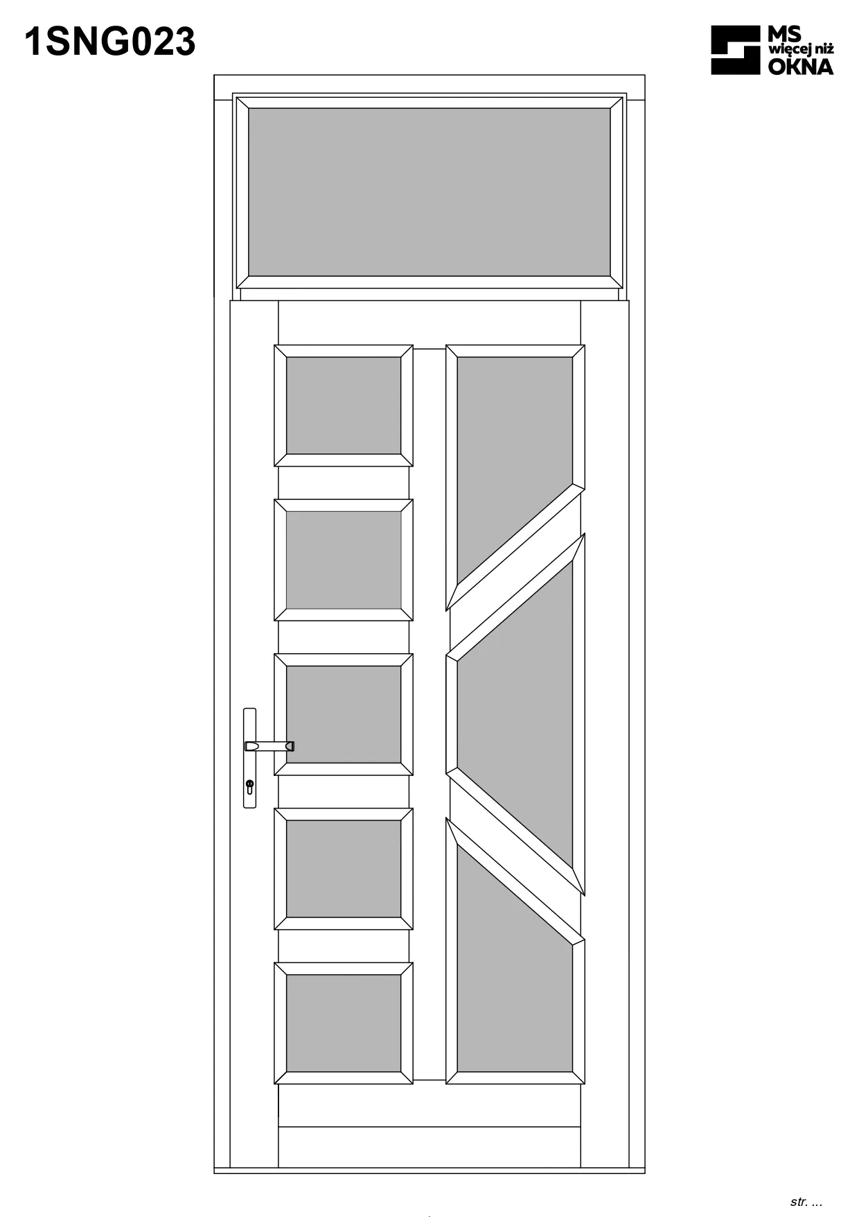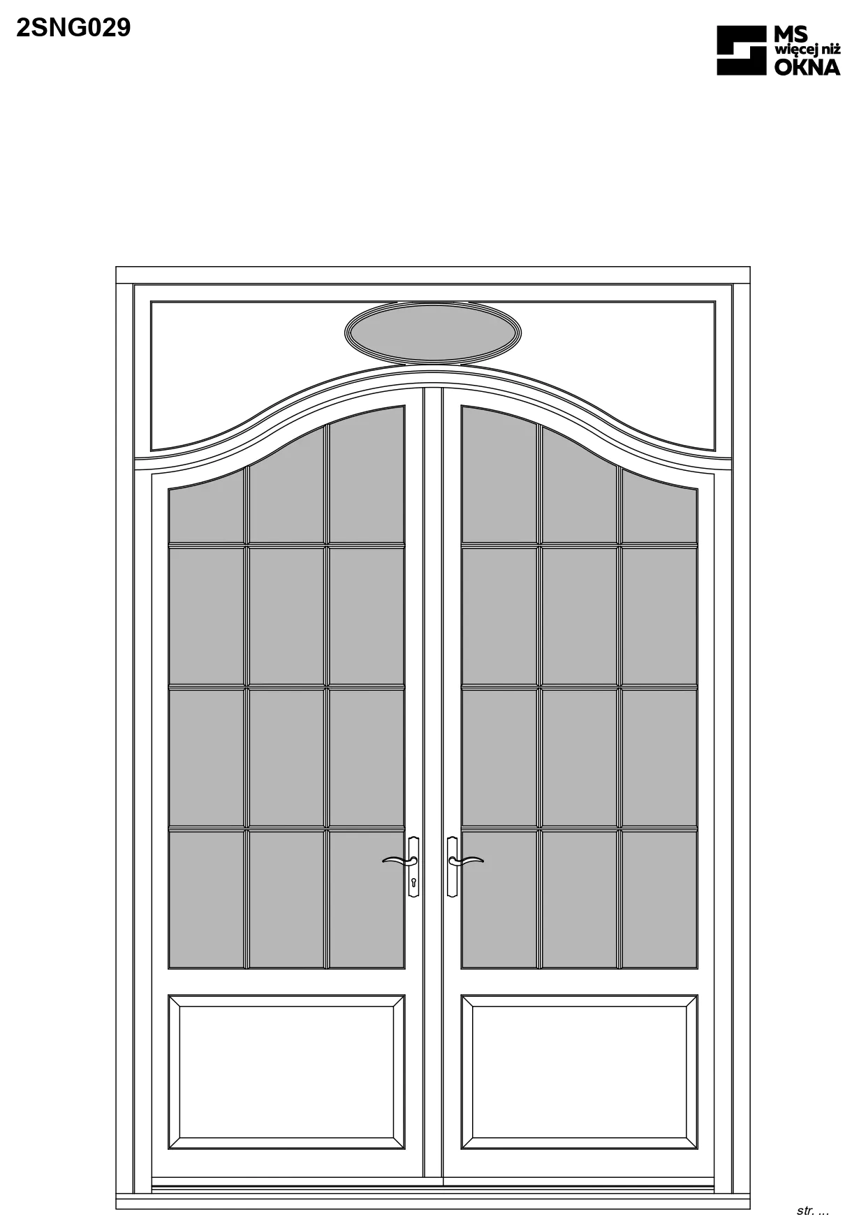 - version standard avec une poignée placée sur le vantail actif – le vantail passif est verrouillé à l’aide de loquets haut/bas, et le déverrouillage s’effectue à l’aide de la poignée,