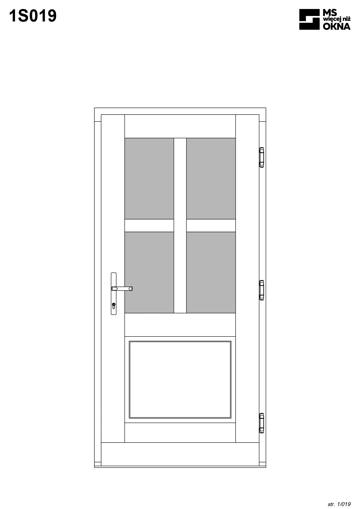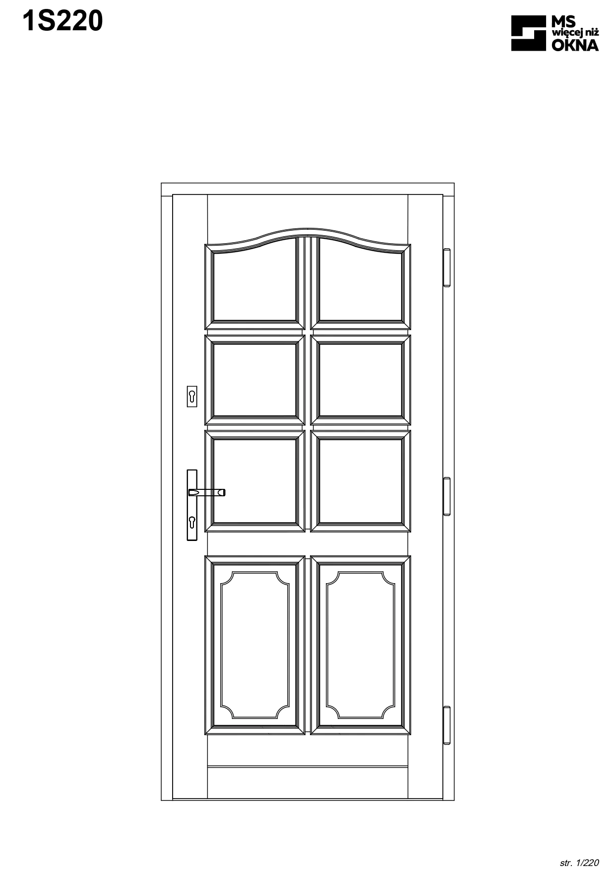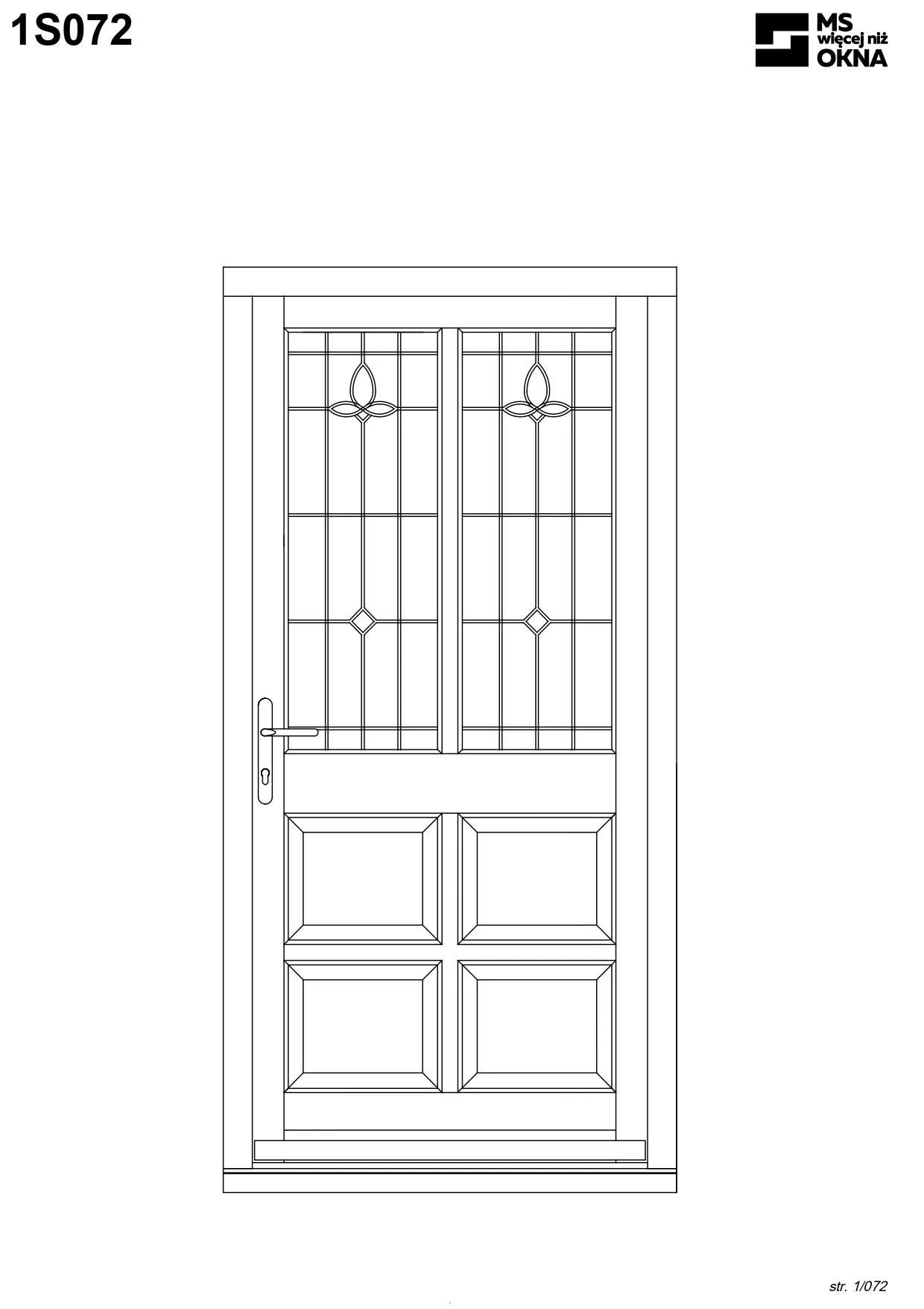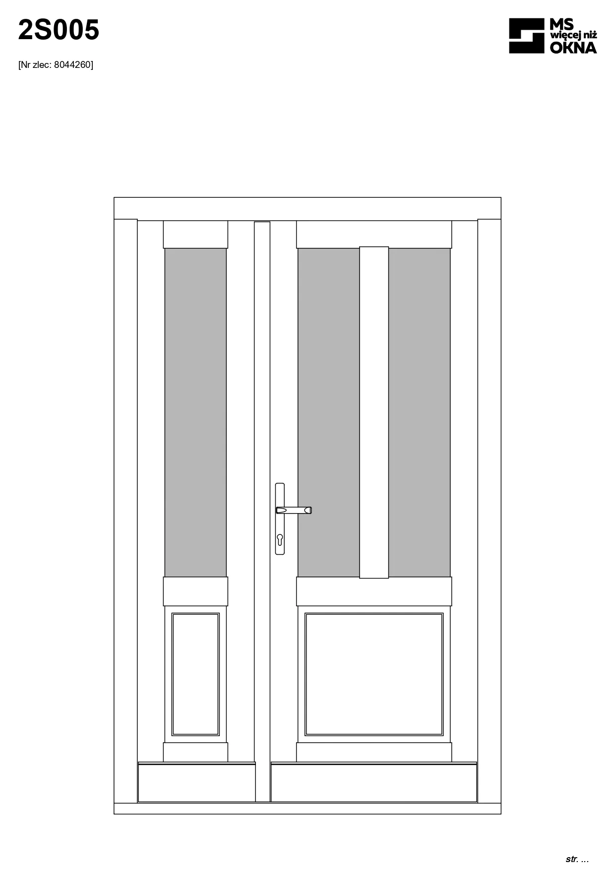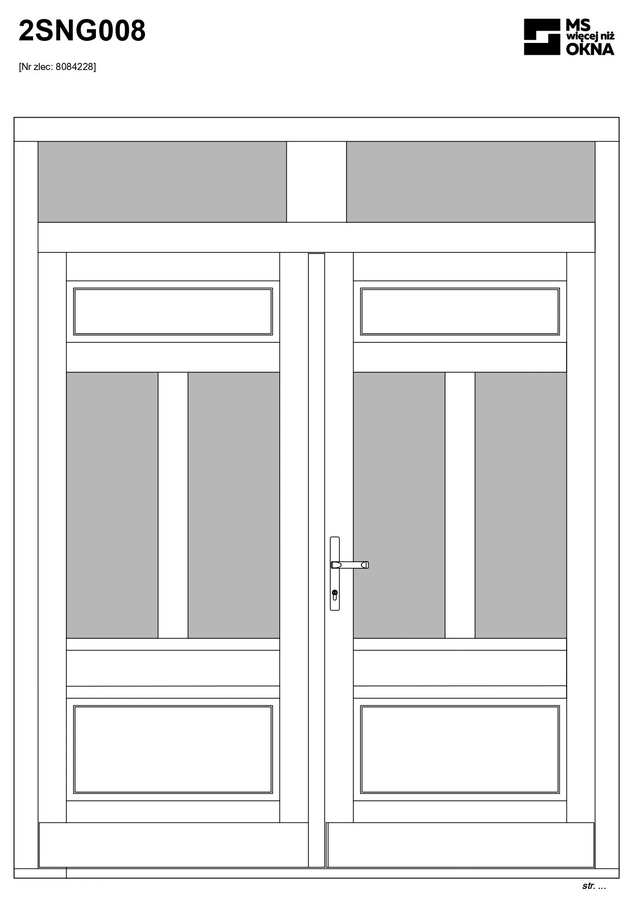 - version standard avec une poignée placée sur le vantail actif – le vantail passif est verrouillé à l’aide de loquets haut/bas, et le déverrouillage s’effectue à l’aide de la poignée,