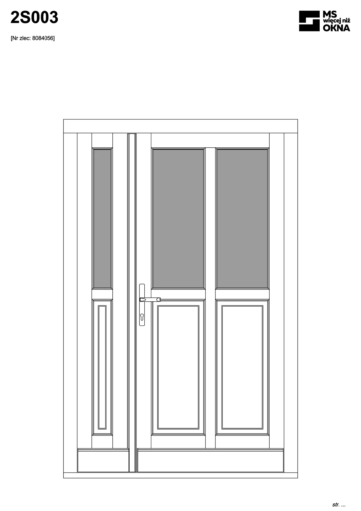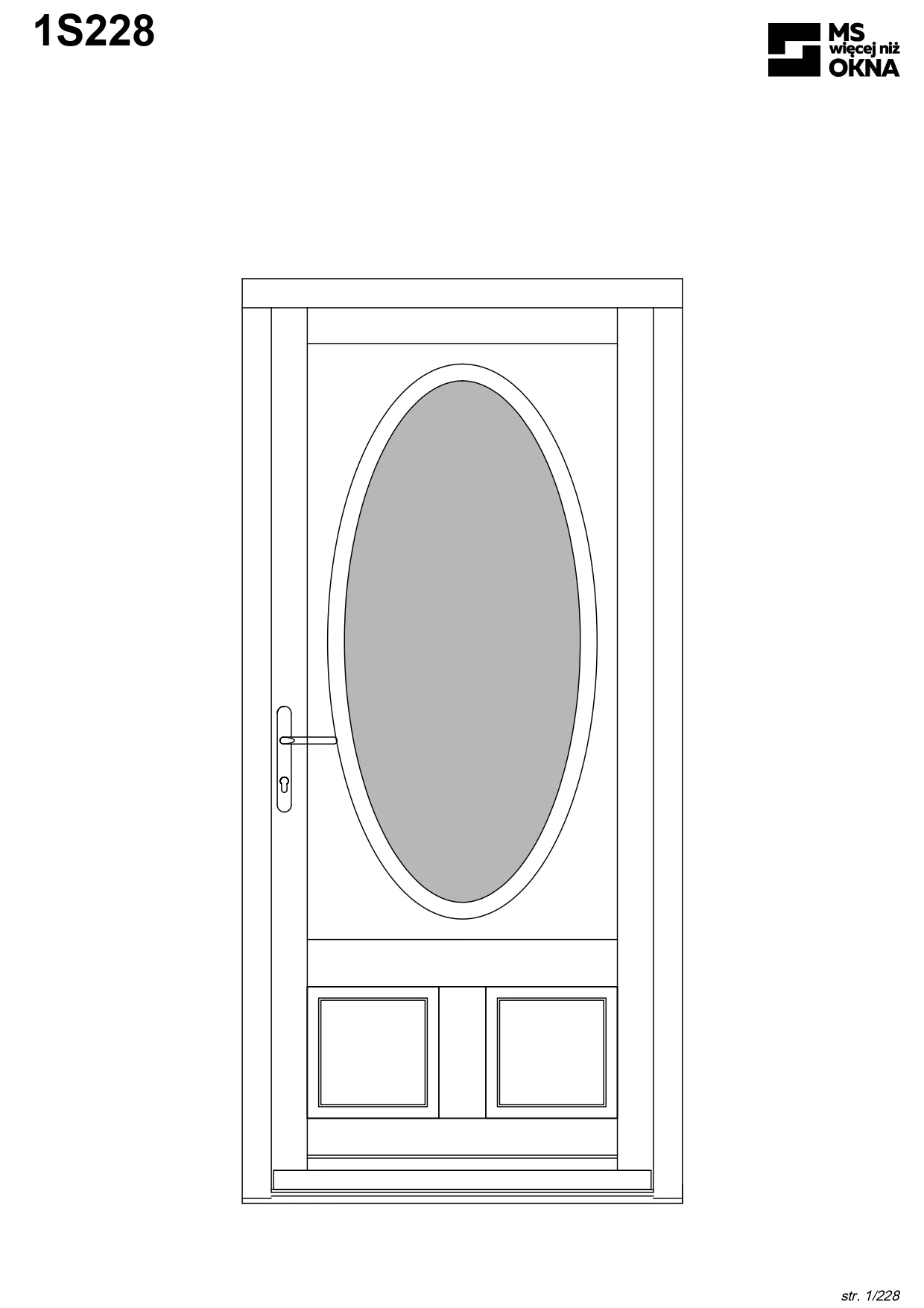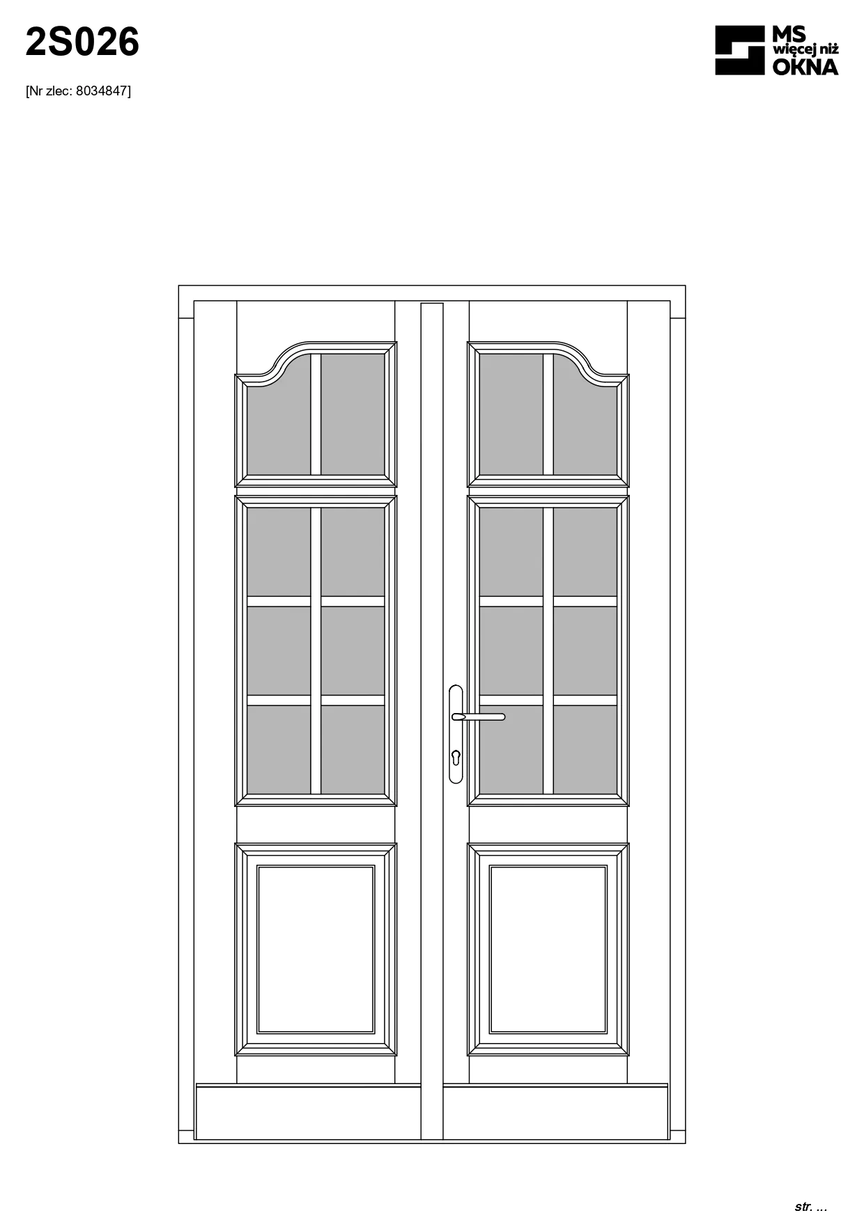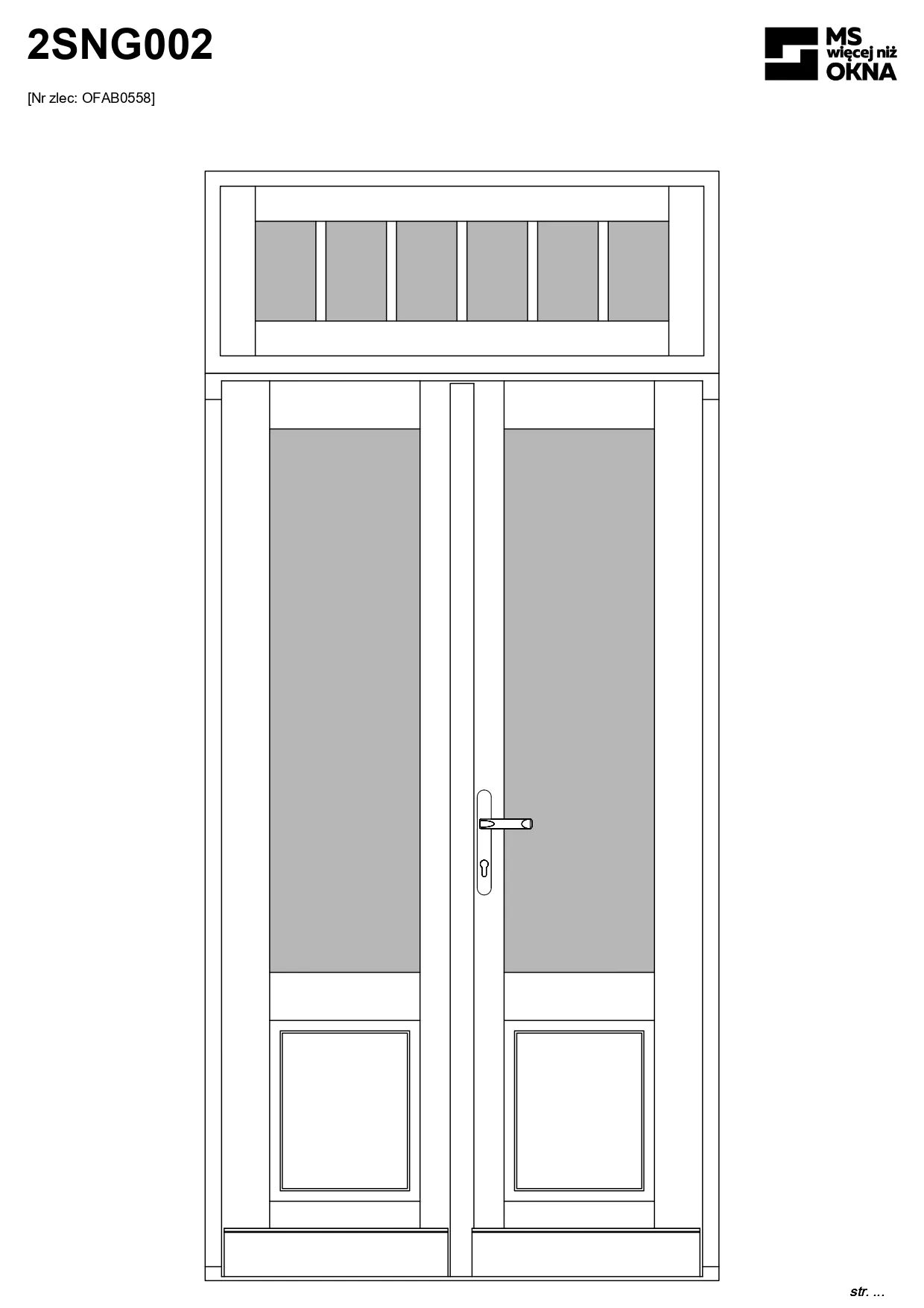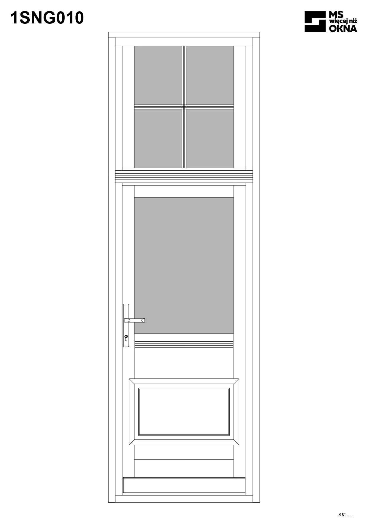 - version standard avec une poignée placée sur le vantail actif – le vantail passif est verrouillé à l’aide de loquets haut/bas, et le déverrouillage s’effectue à l’aide de la poignée,
