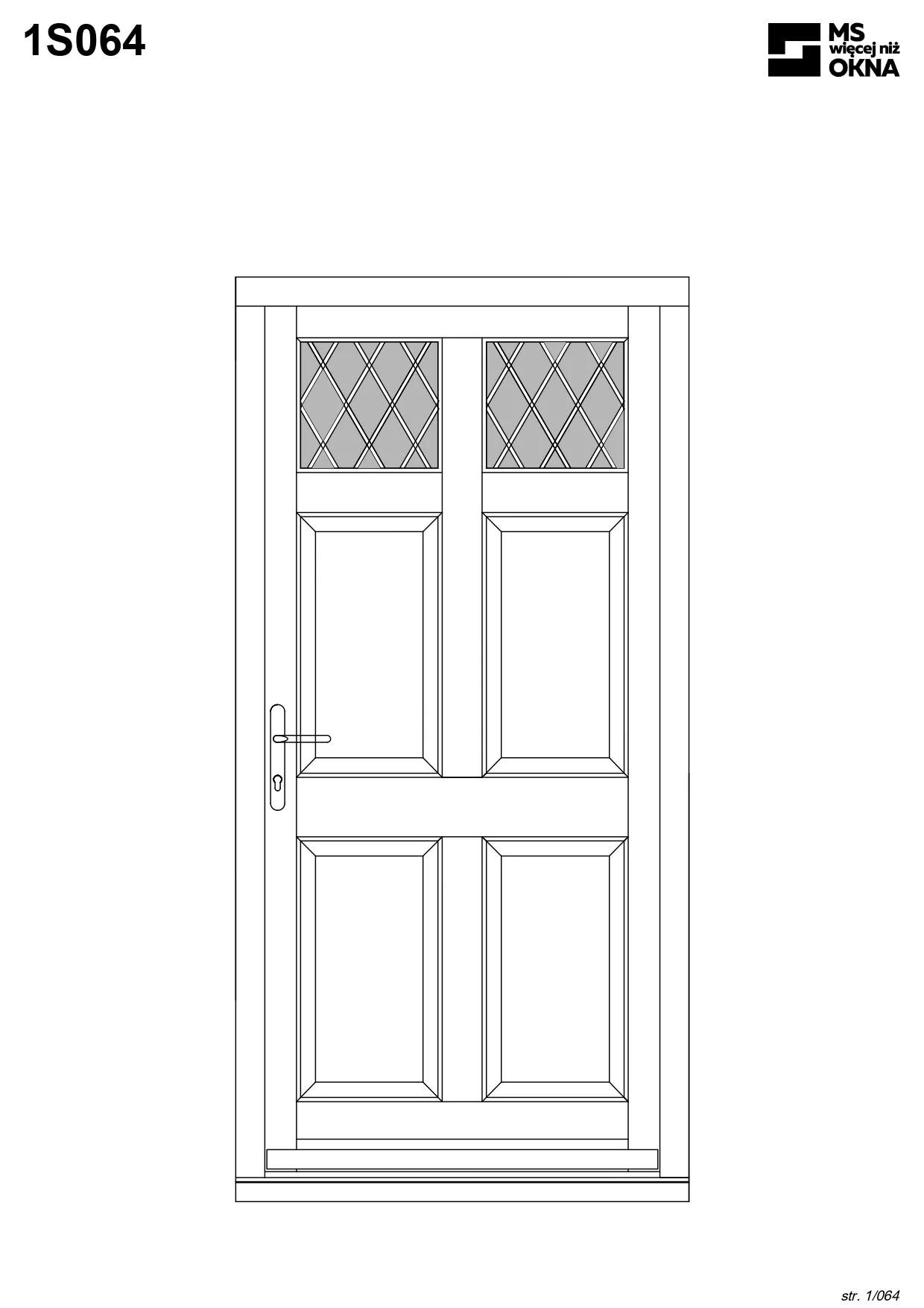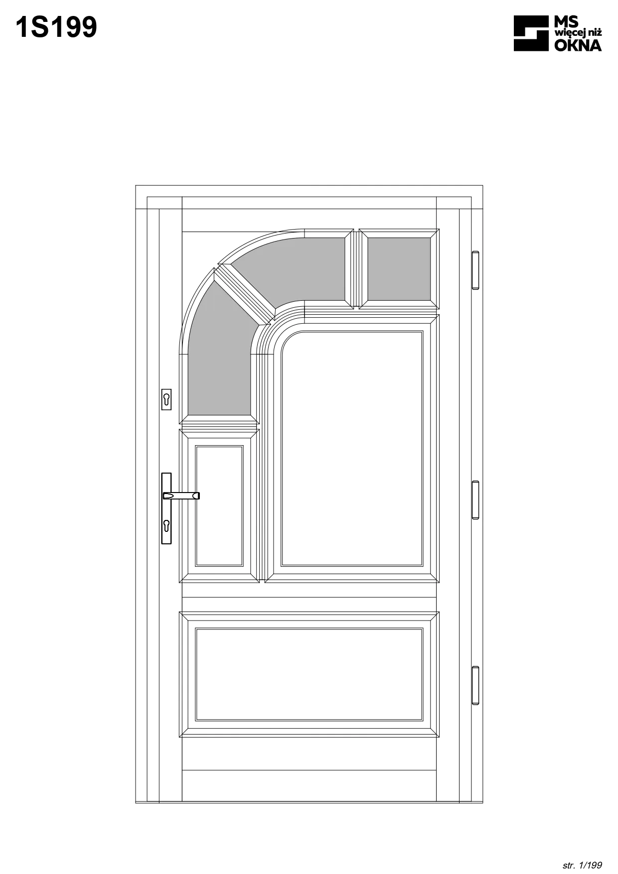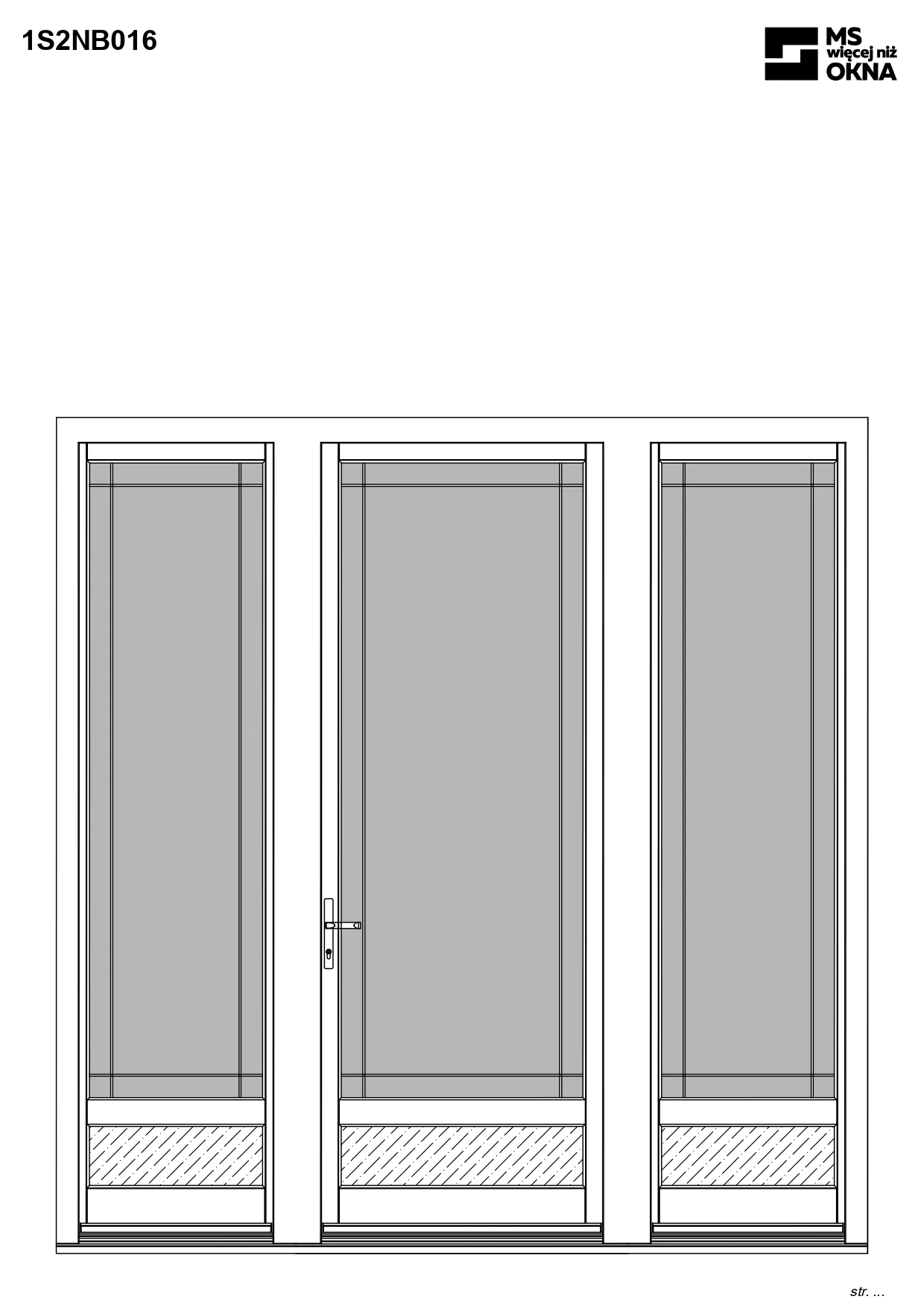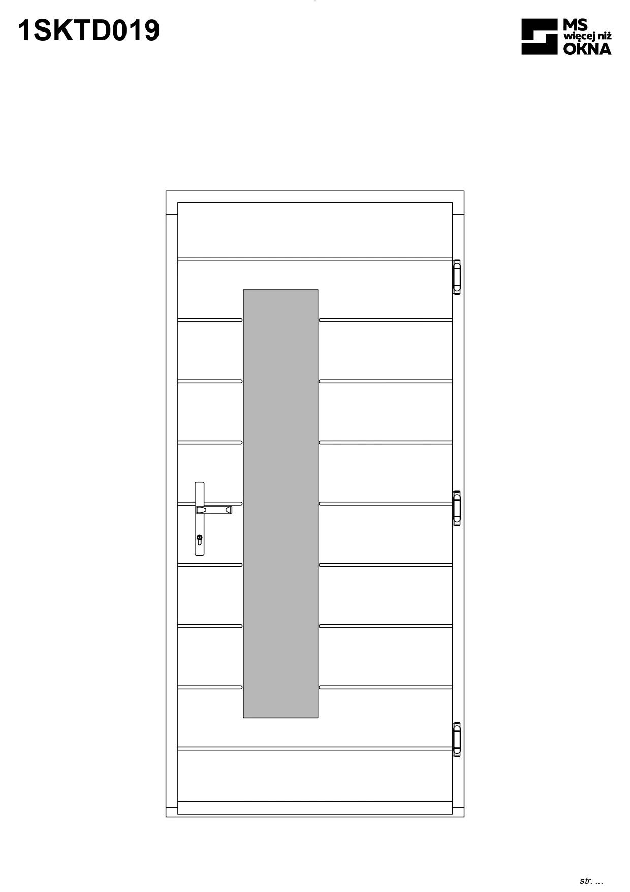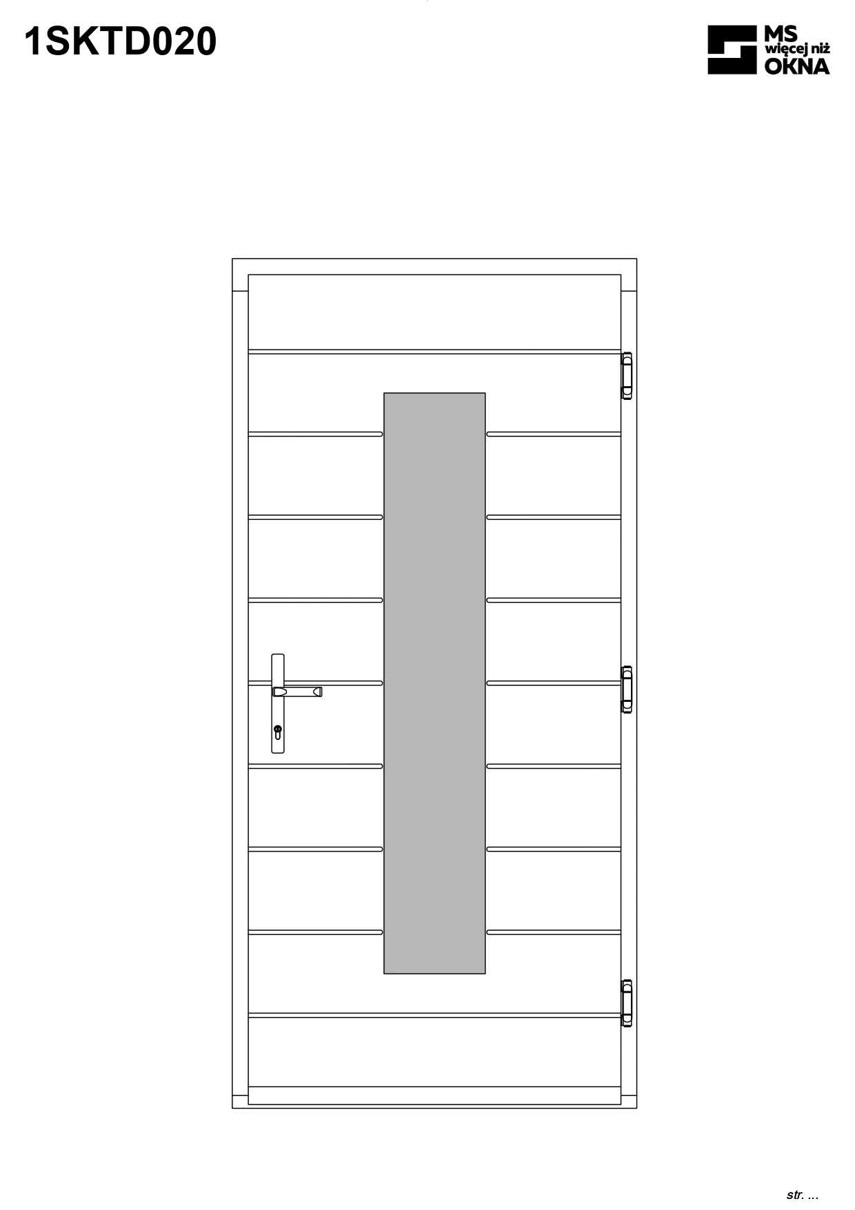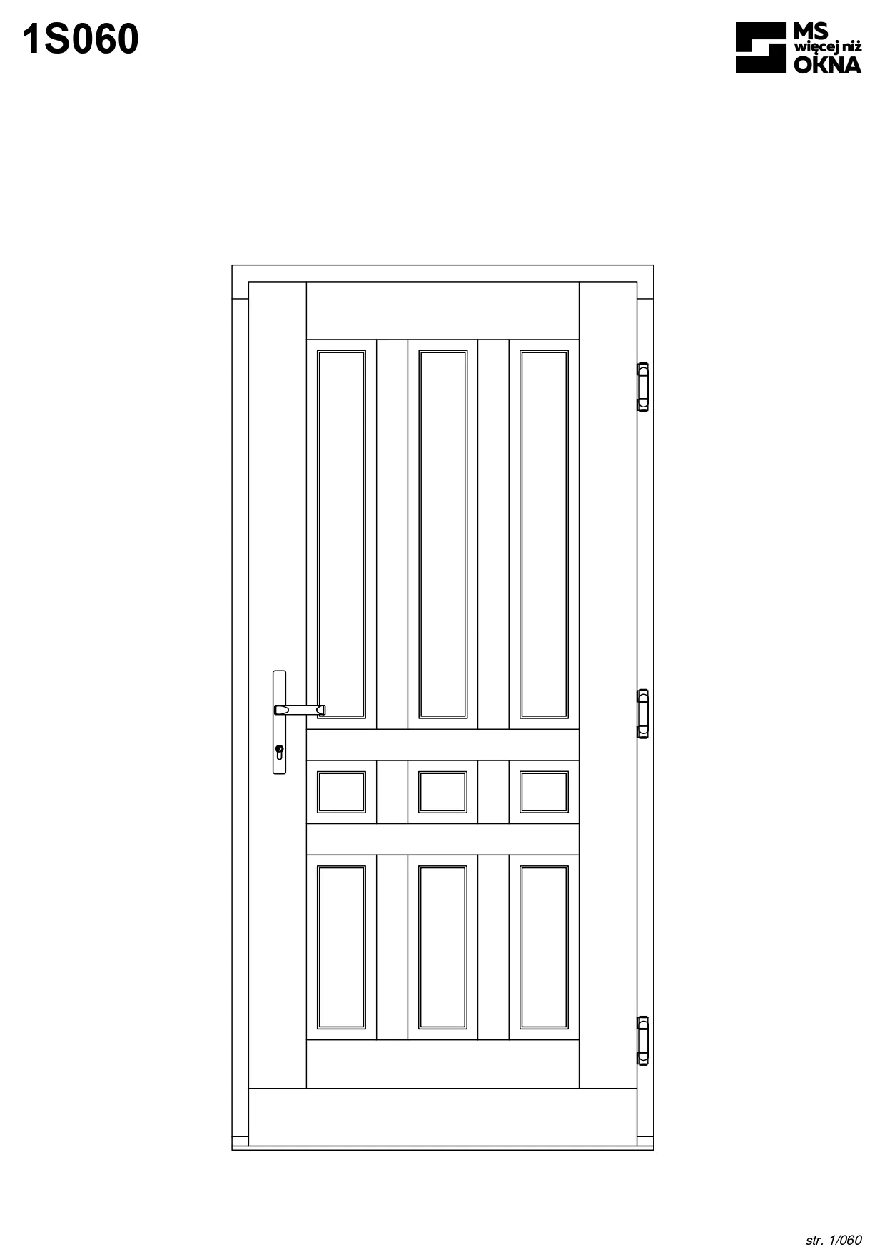 - version standard avec une poignée placée sur le vantail actif – le vantail passif est verrouillé à l’aide de loquets haut/bas, et le déverrouillage s’effectue à l’aide de la poignée,