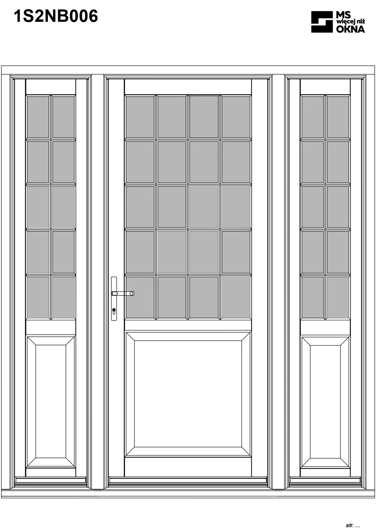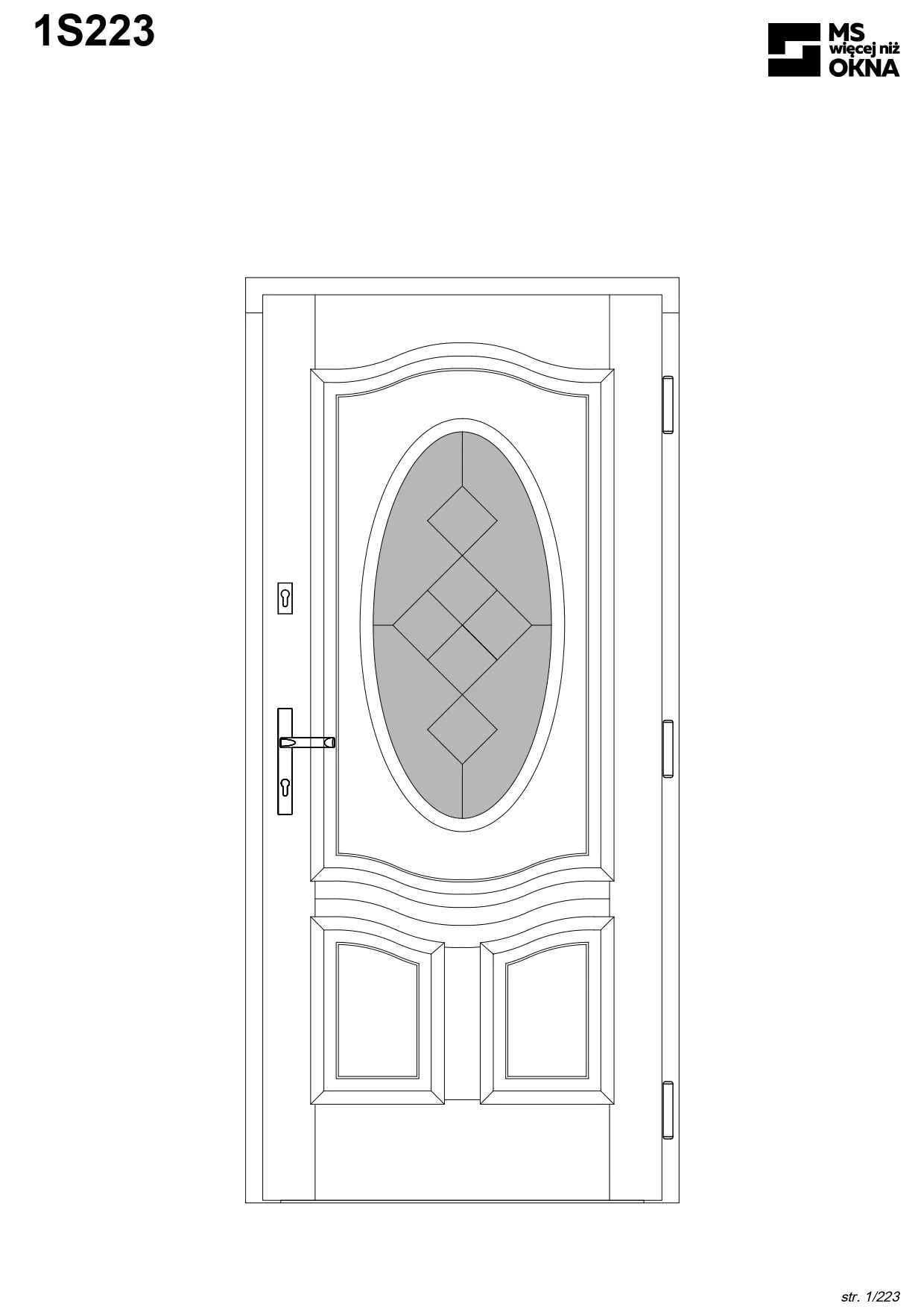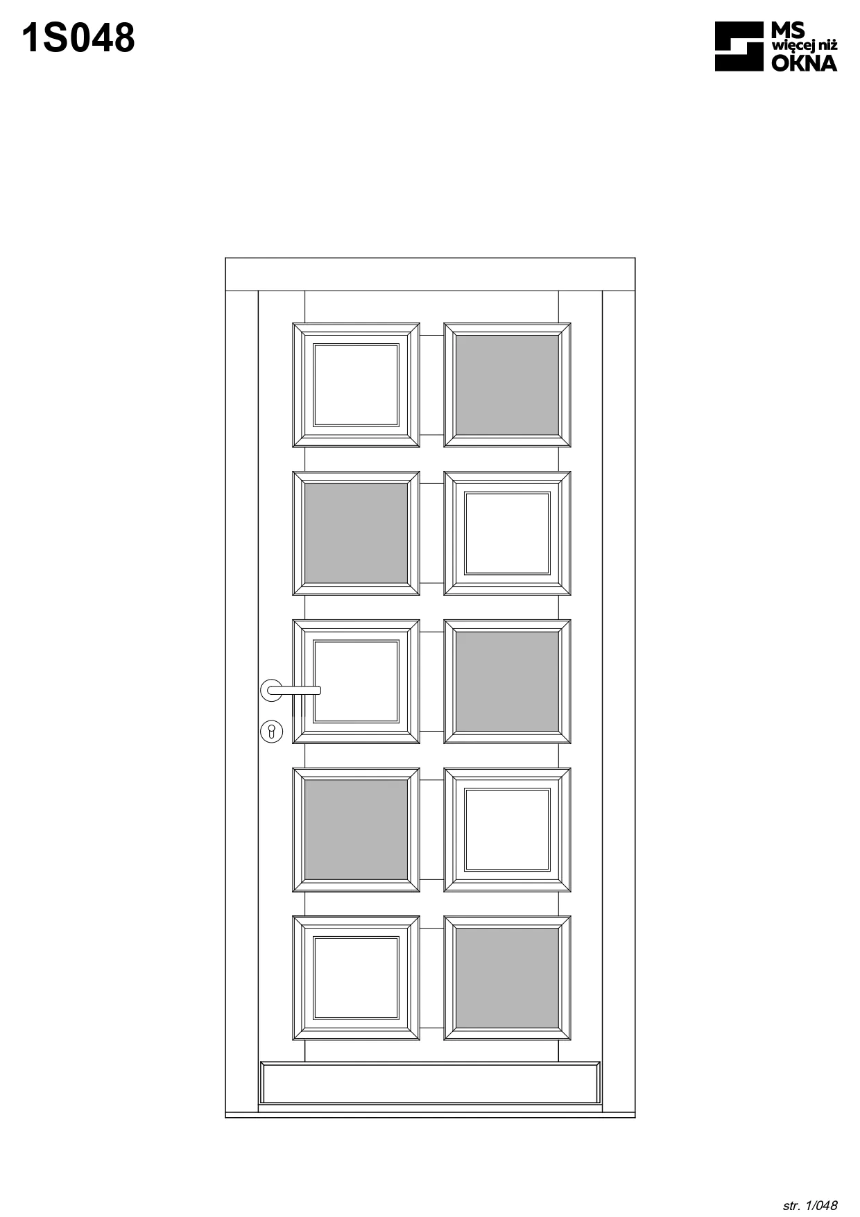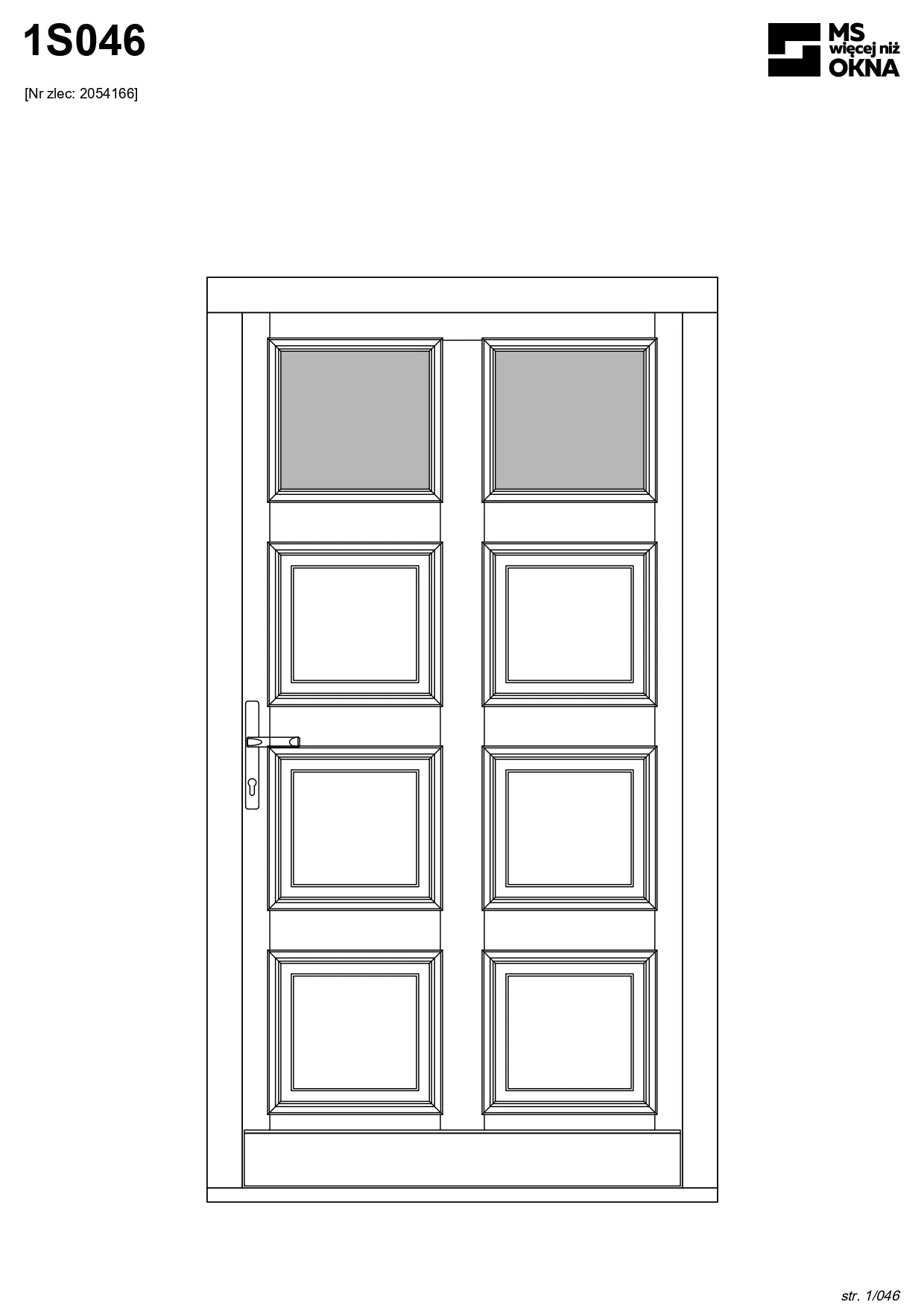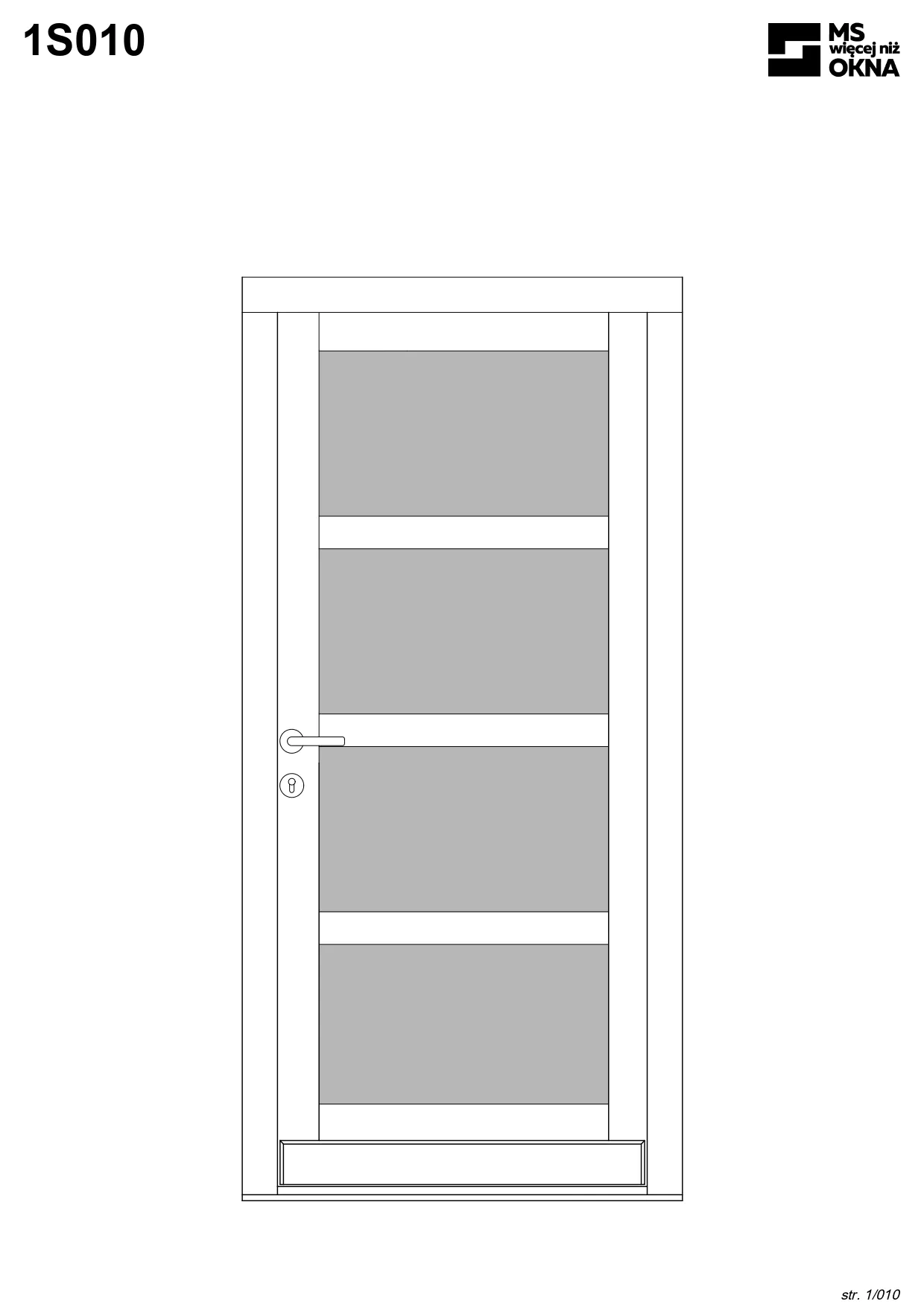 - version standard avec une poignée placée sur le vantail actif – le vantail passif est verrouillé à l’aide de loquets haut/bas, et le déverrouillage s’effectue à l’aide de la poignée,