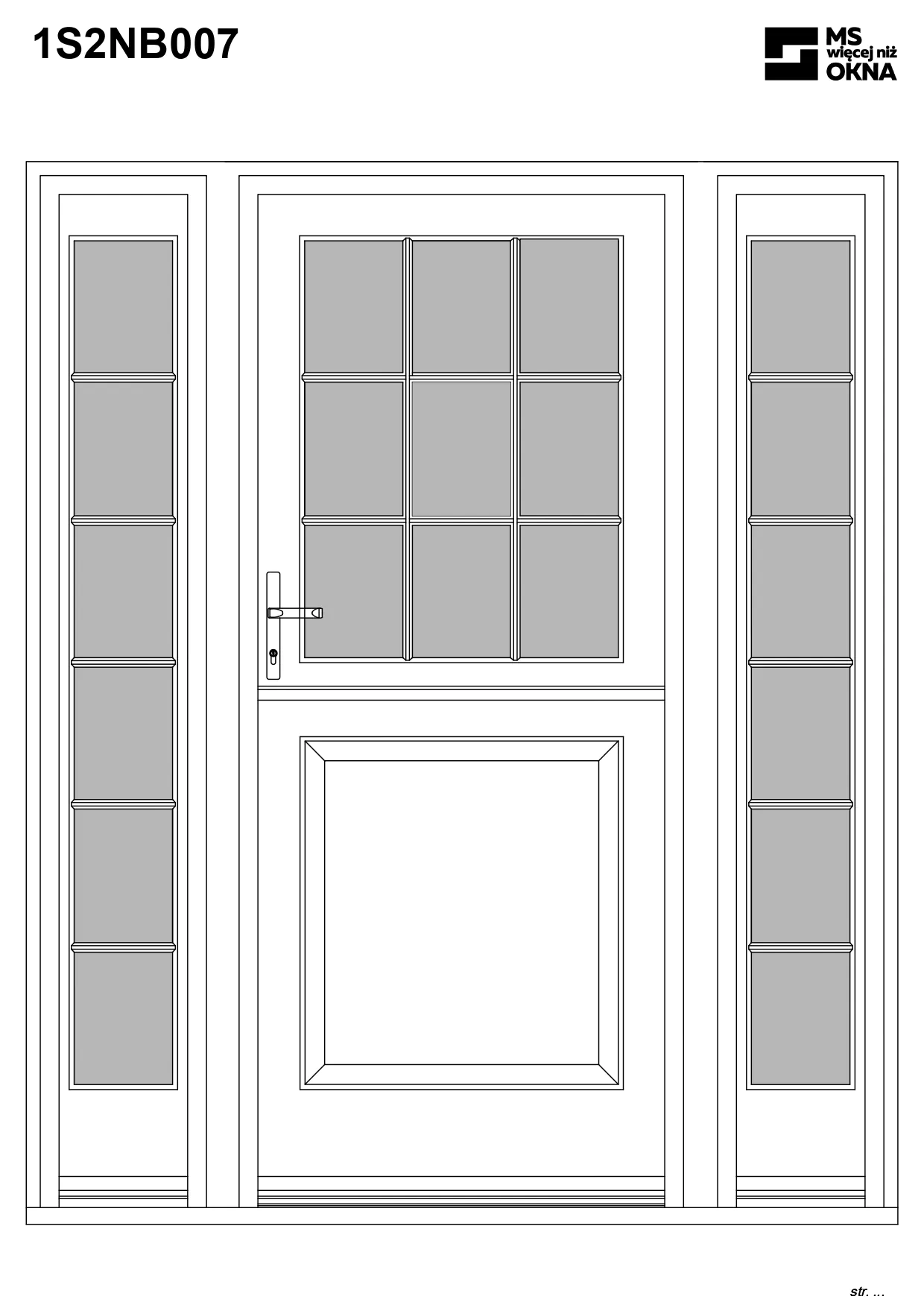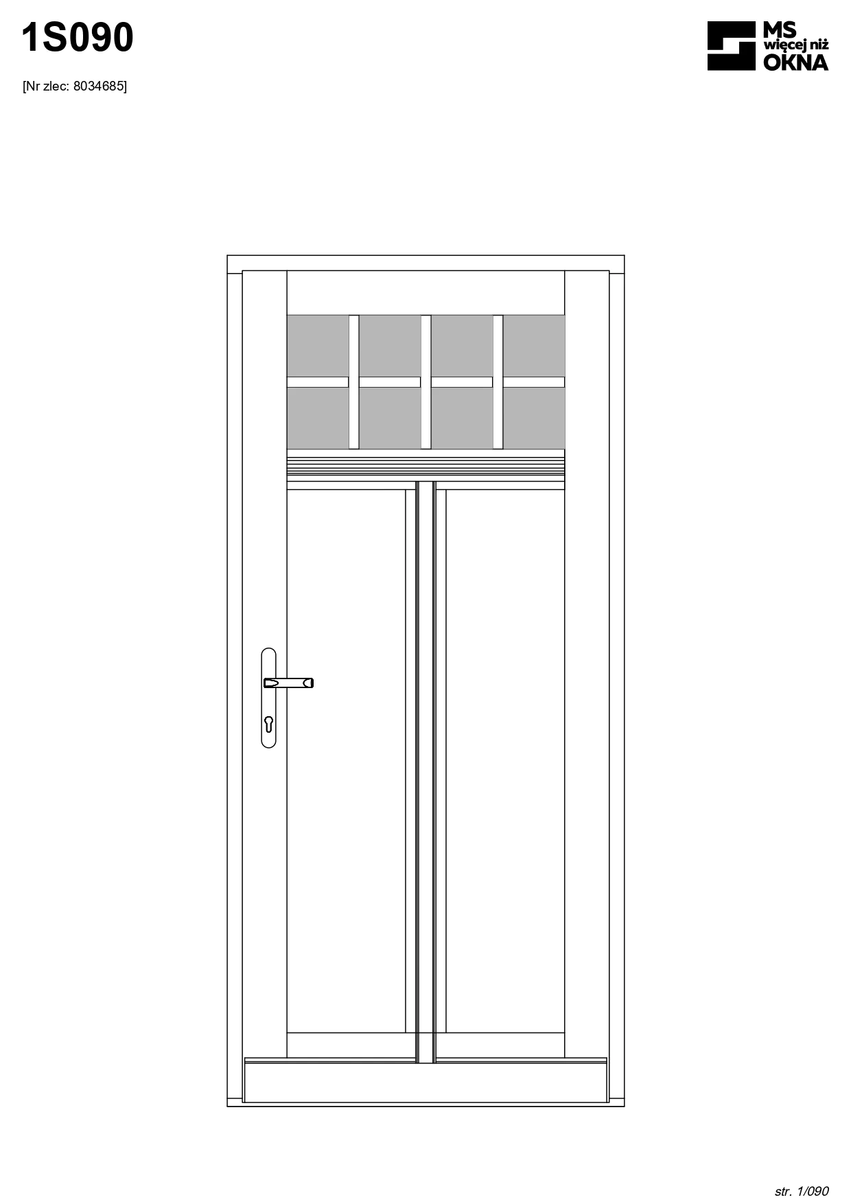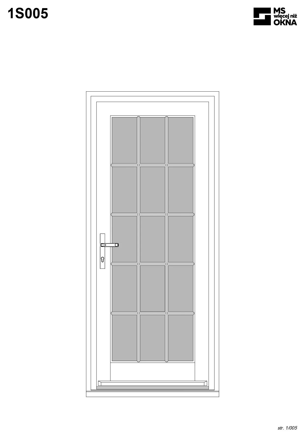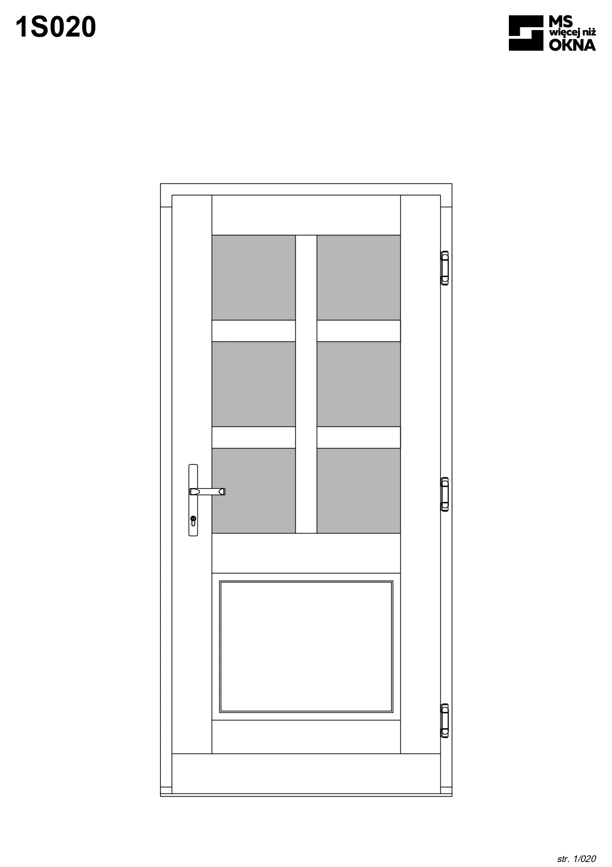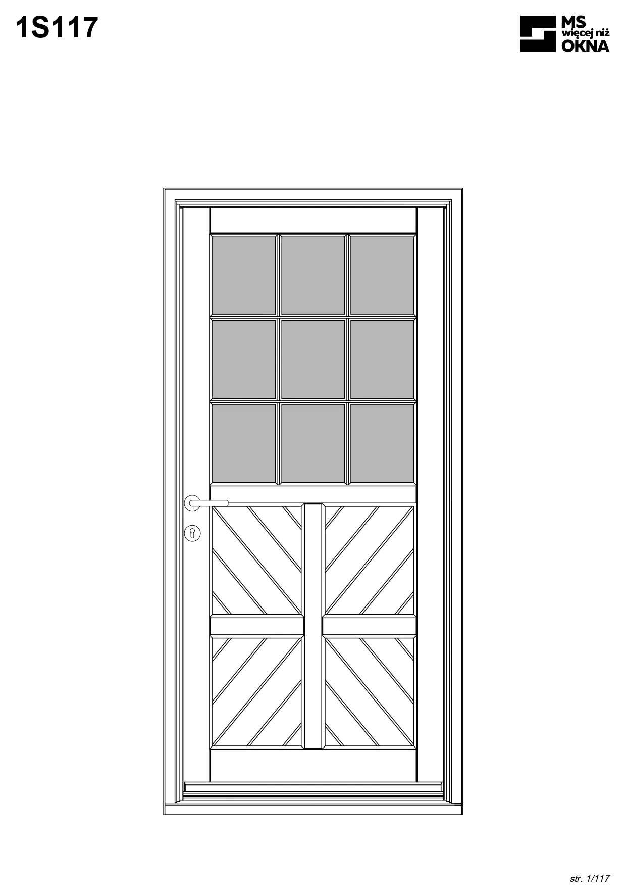 - version standard avec une poignée placée sur le vantail actif – le vantail passif est verrouillé à l’aide de loquets haut/bas, et le déverrouillage s’effectue à l’aide de la poignée,