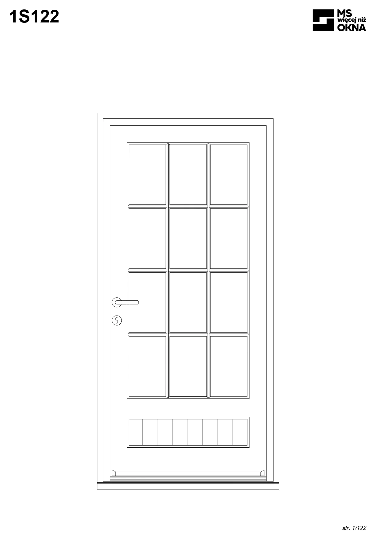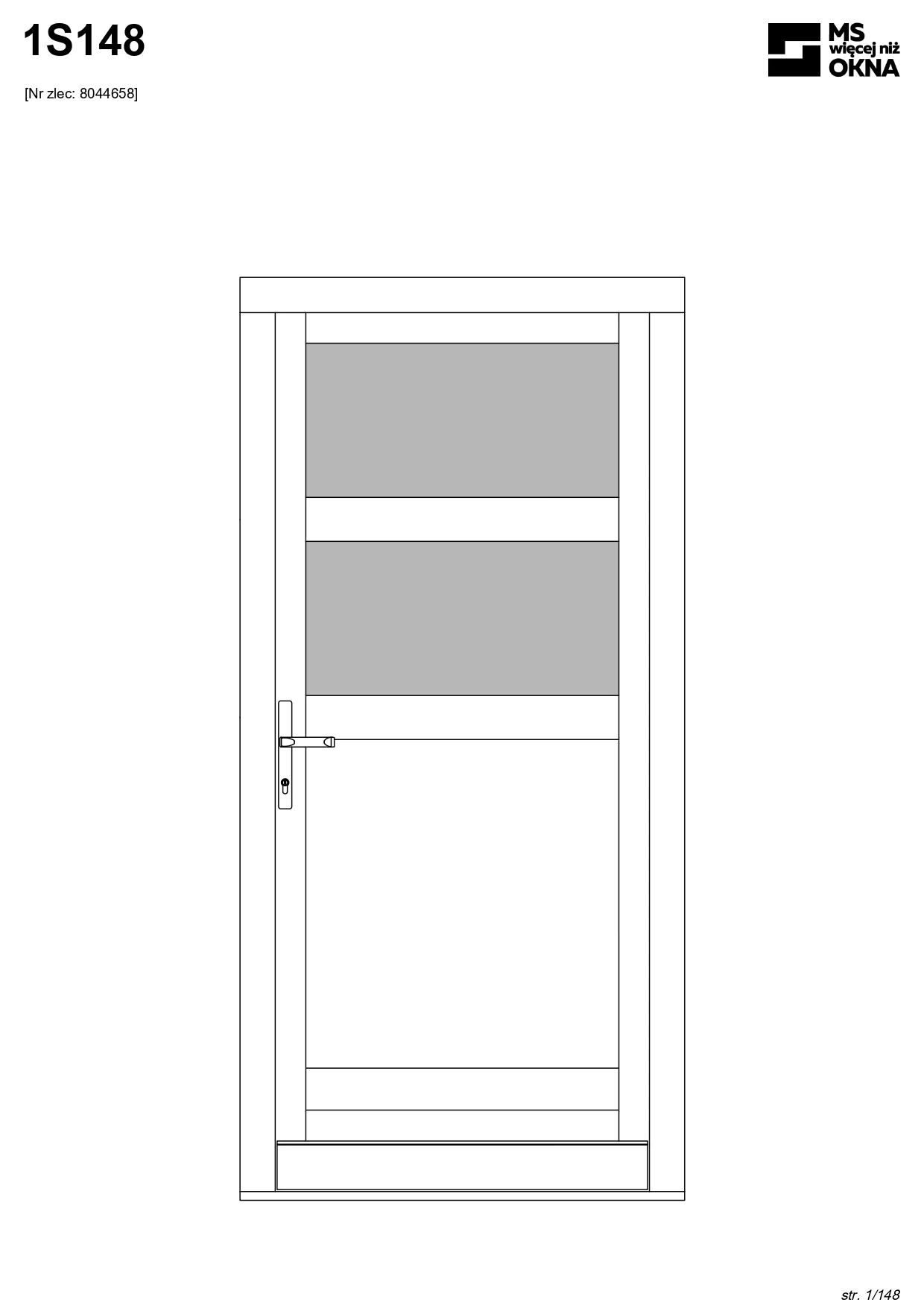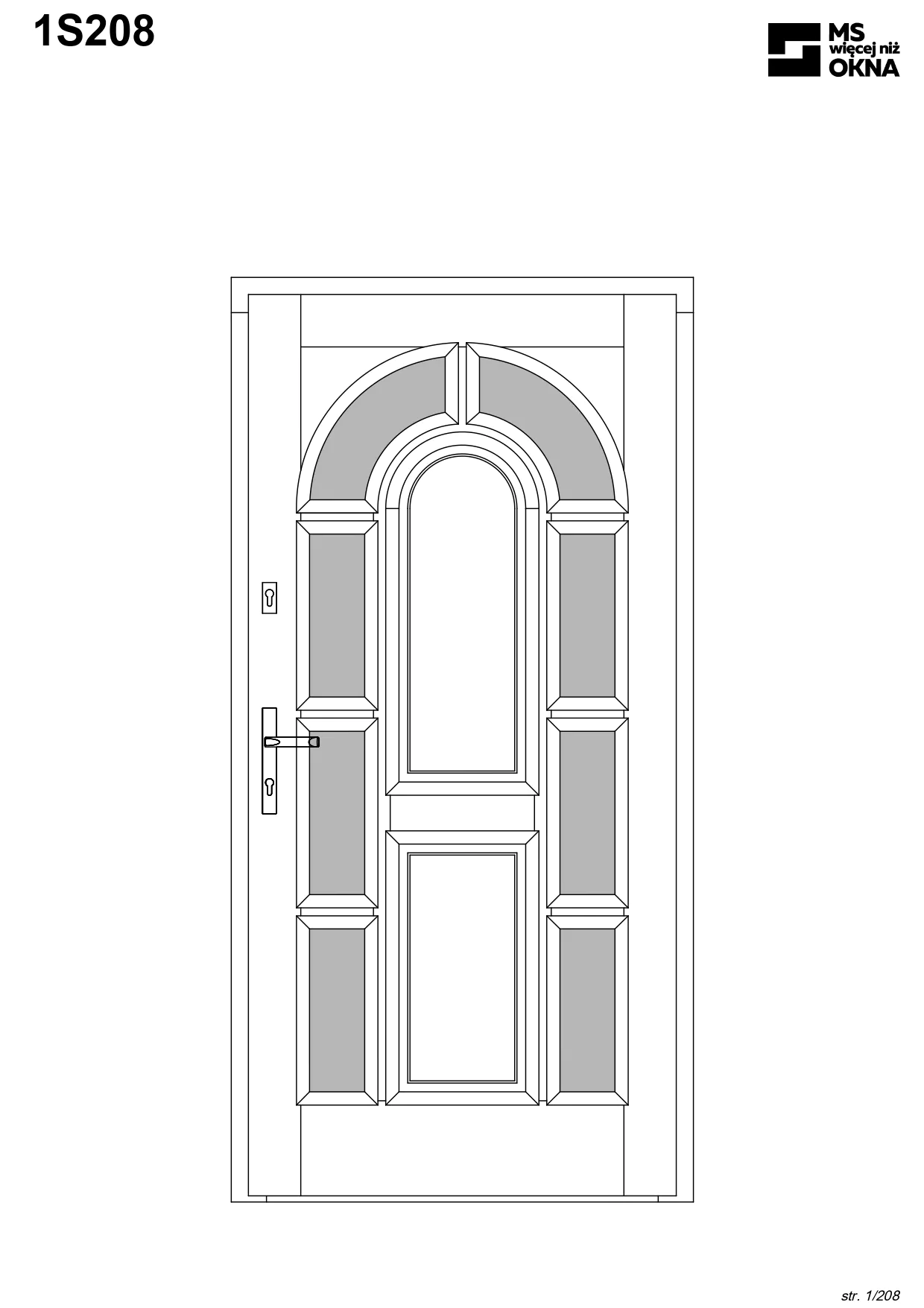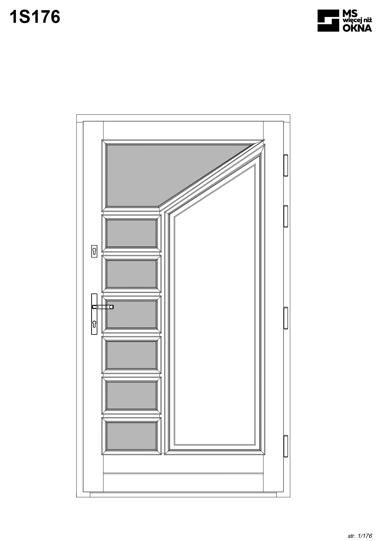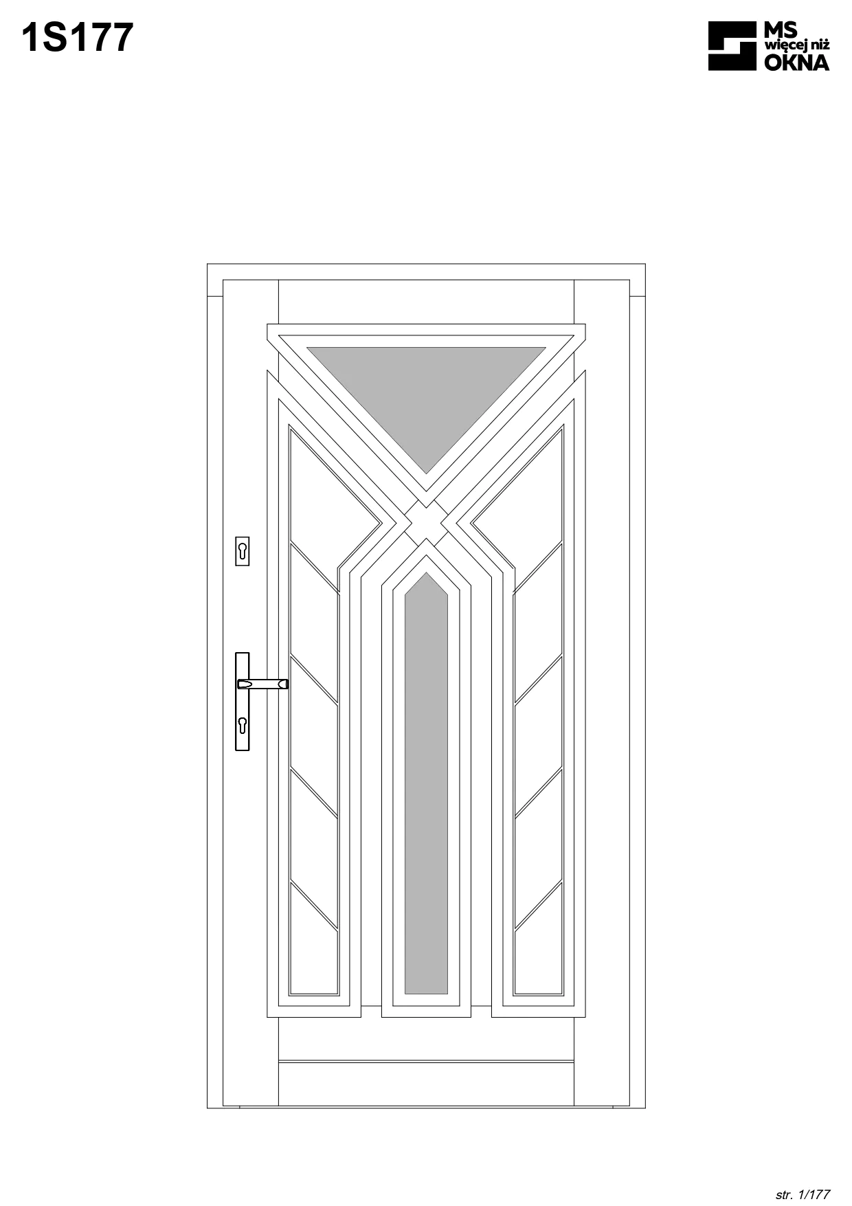 - version standard avec une poignée placée sur le vantail actif – le vantail passif est verrouillé à l’aide de loquets haut/bas, et le déverrouillage s’effectue à l’aide de la poignée,