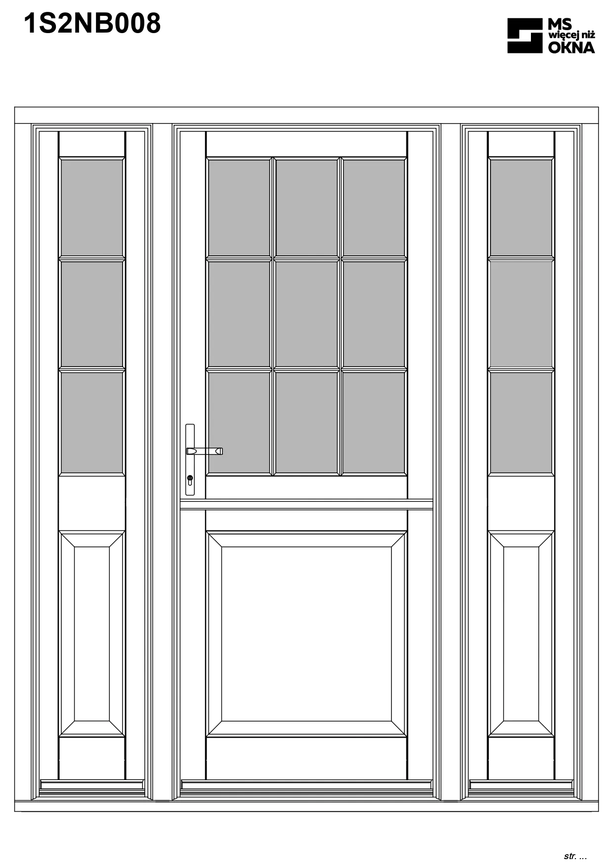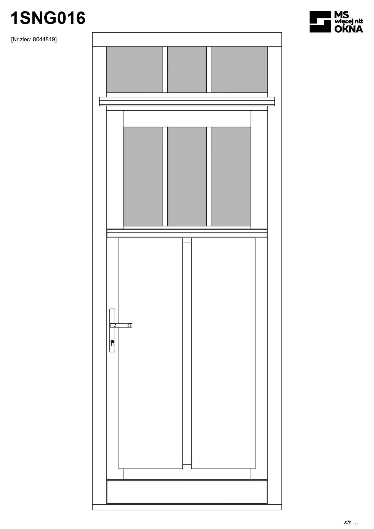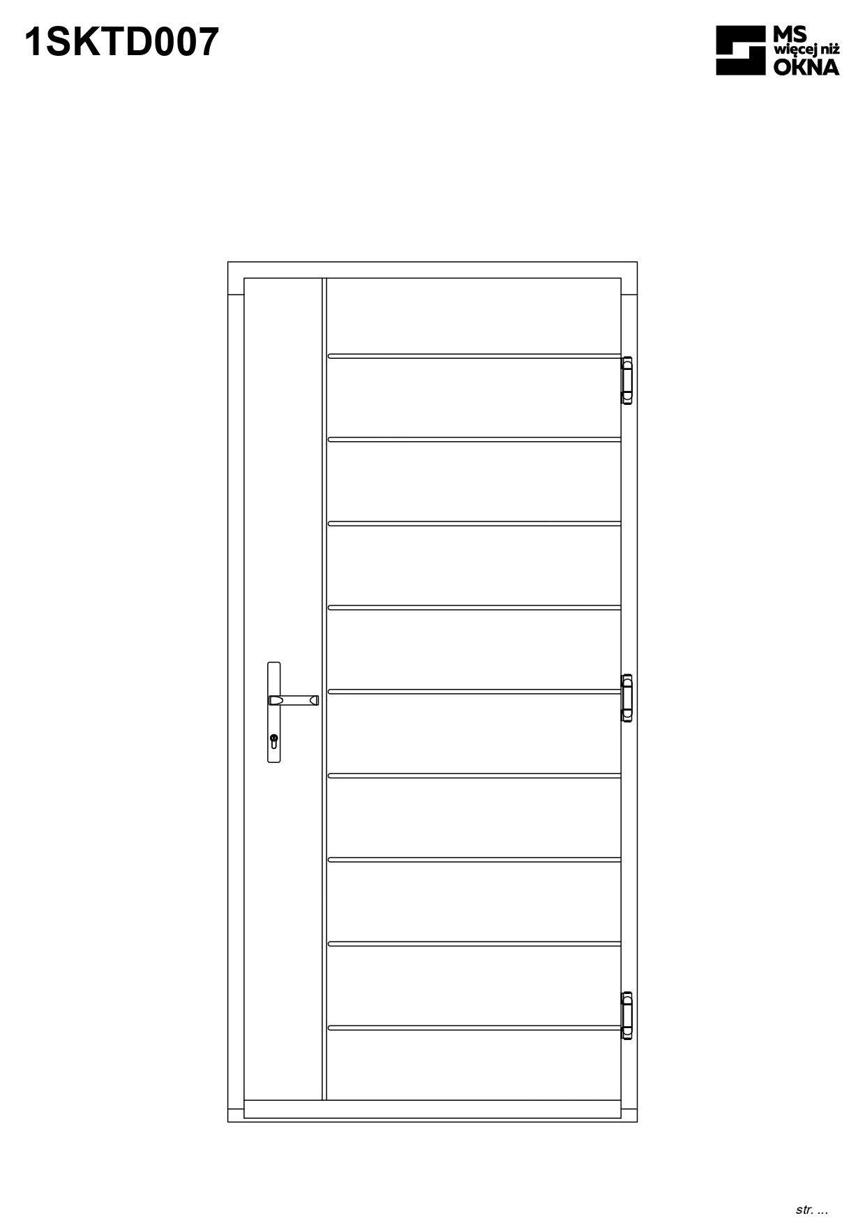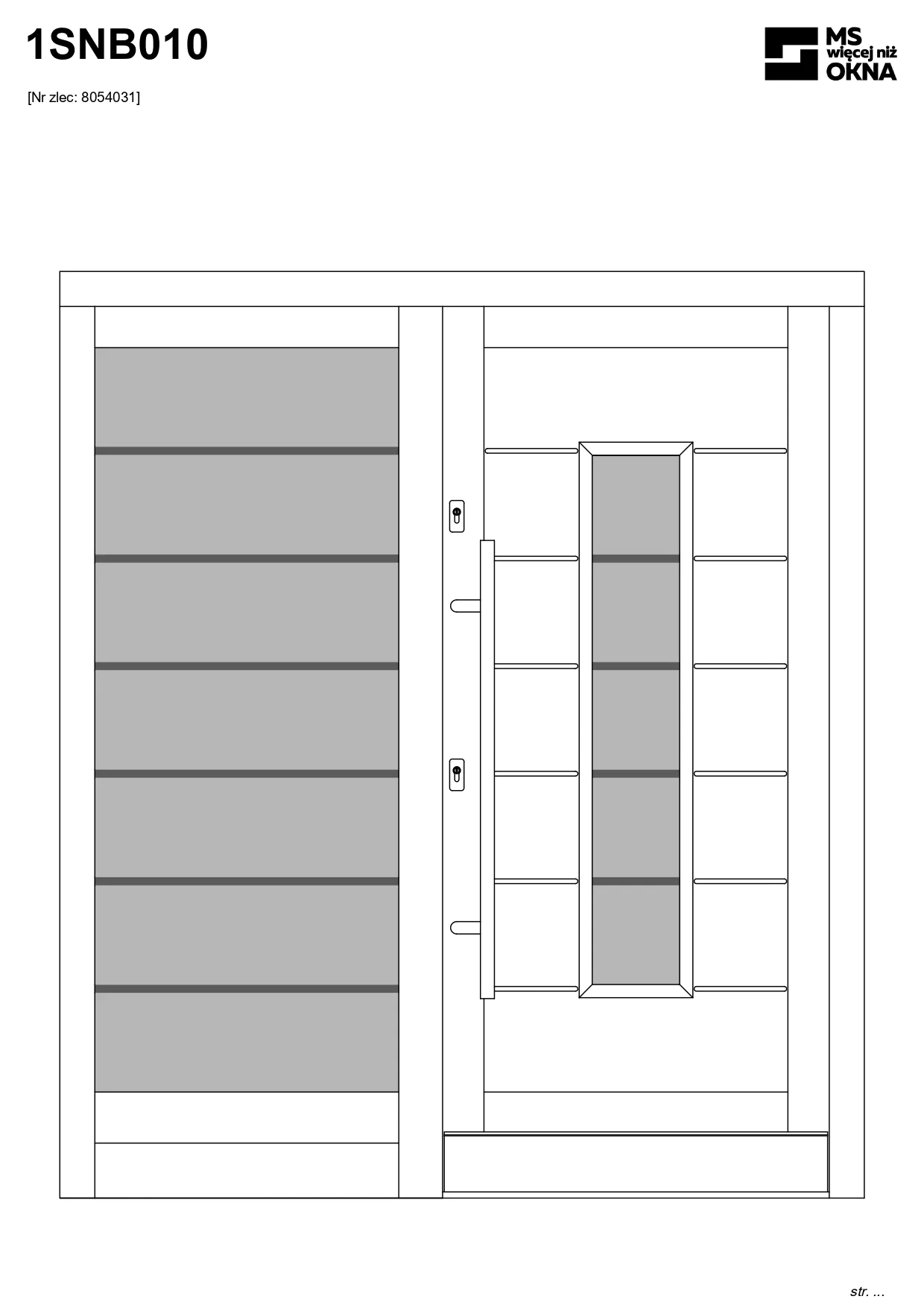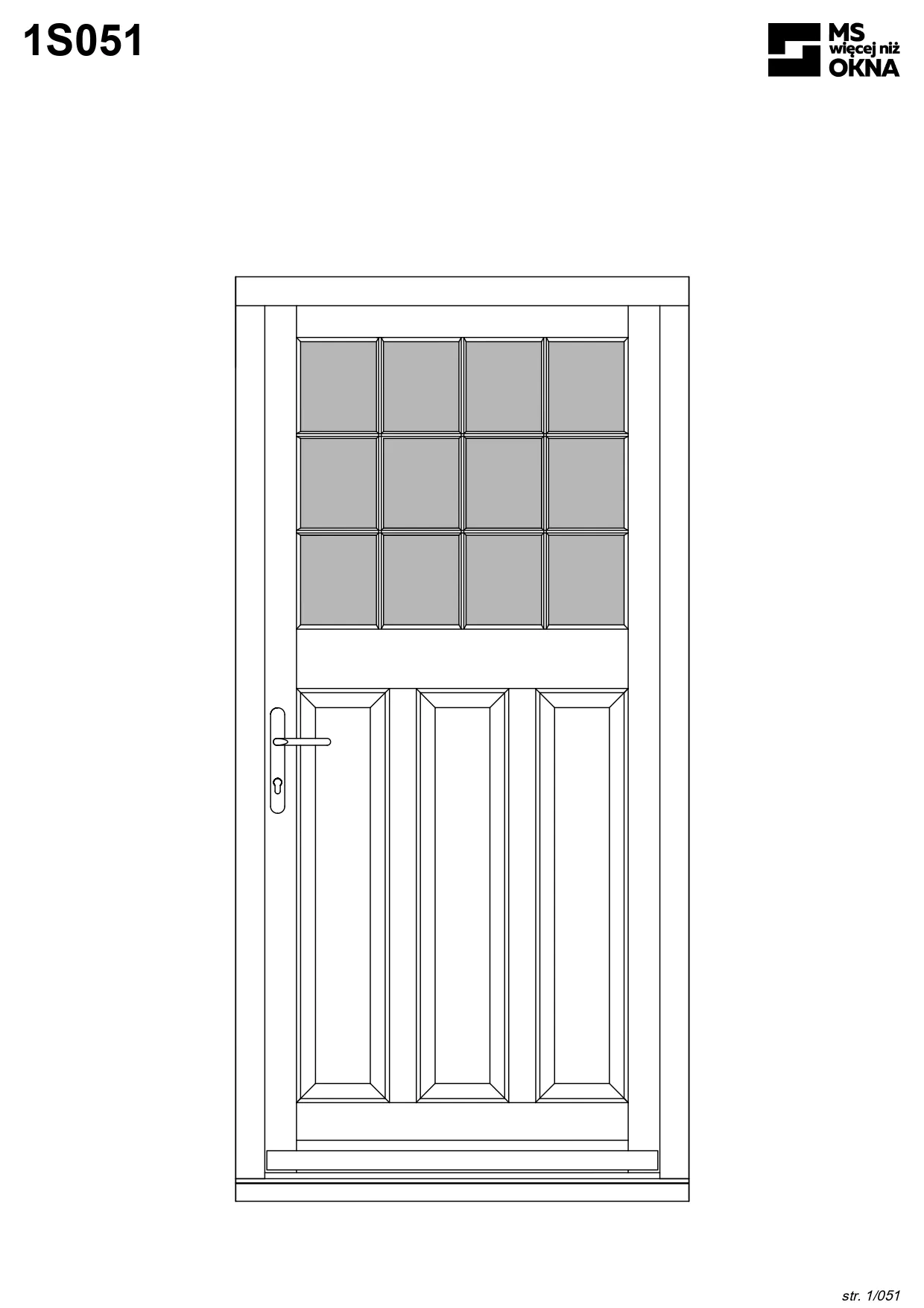 - version standard avec une poignée placée sur le vantail actif – le vantail passif est verrouillé à l’aide de loquets haut/bas, et le déverrouillage s’effectue à l’aide de la poignée,