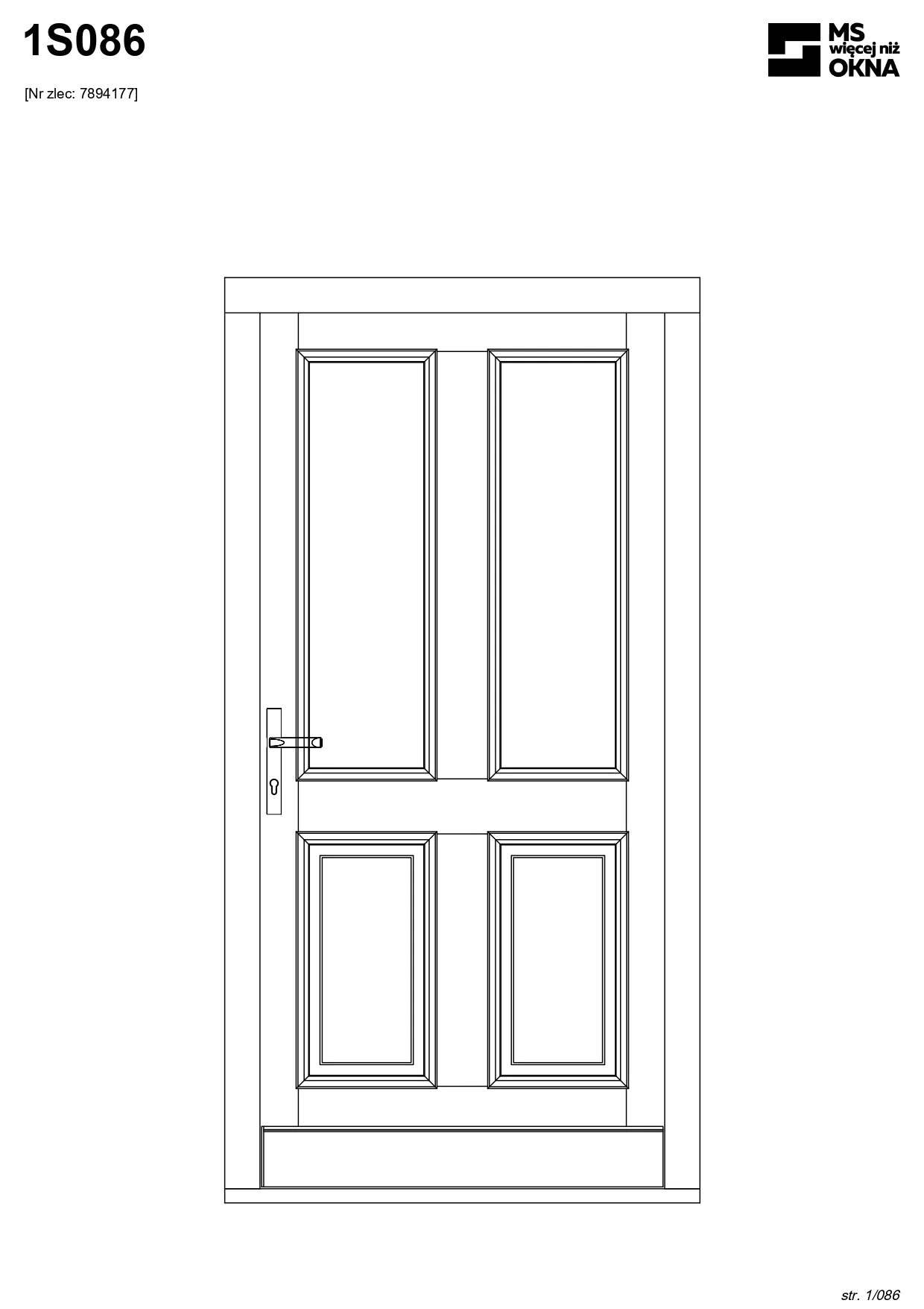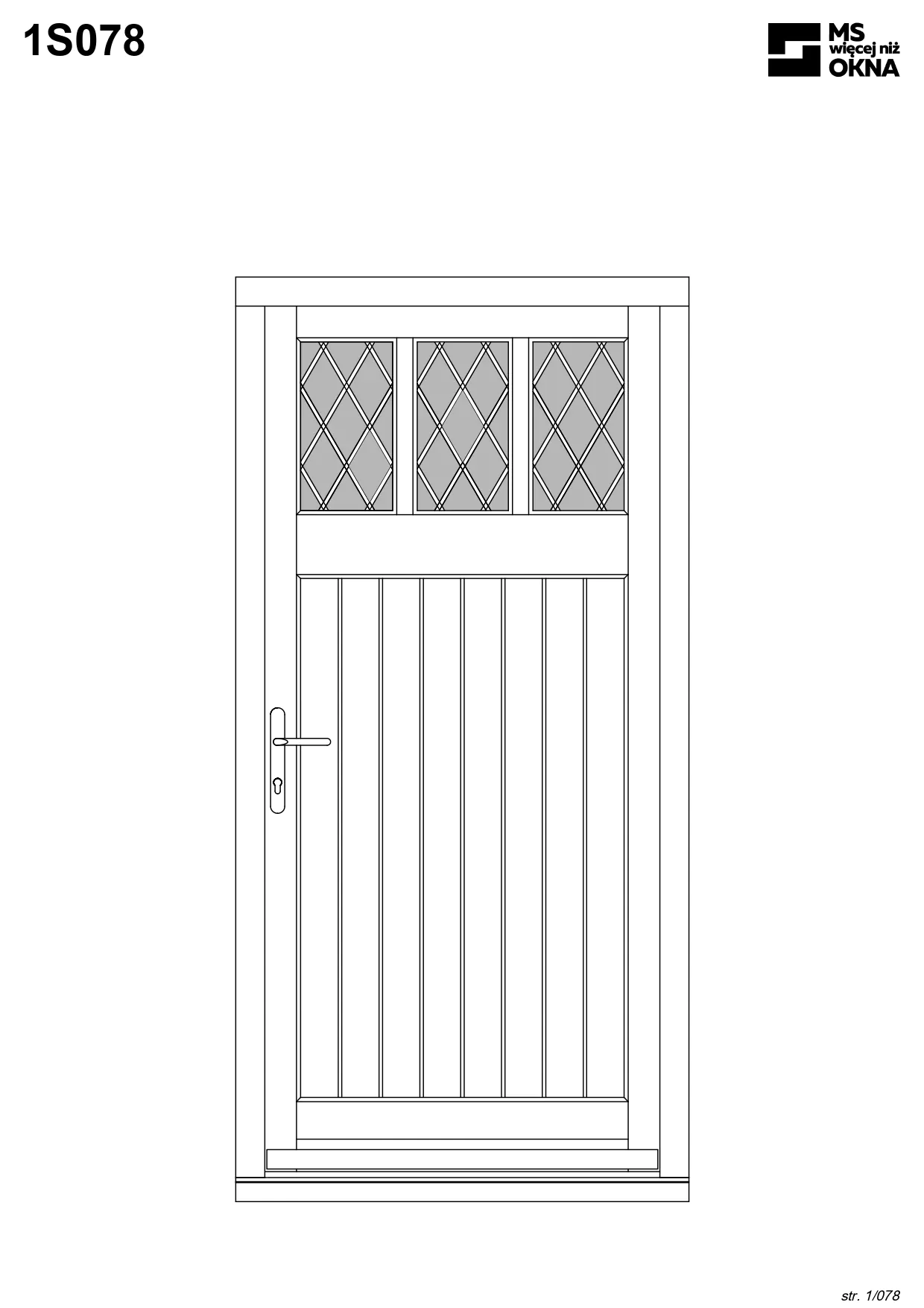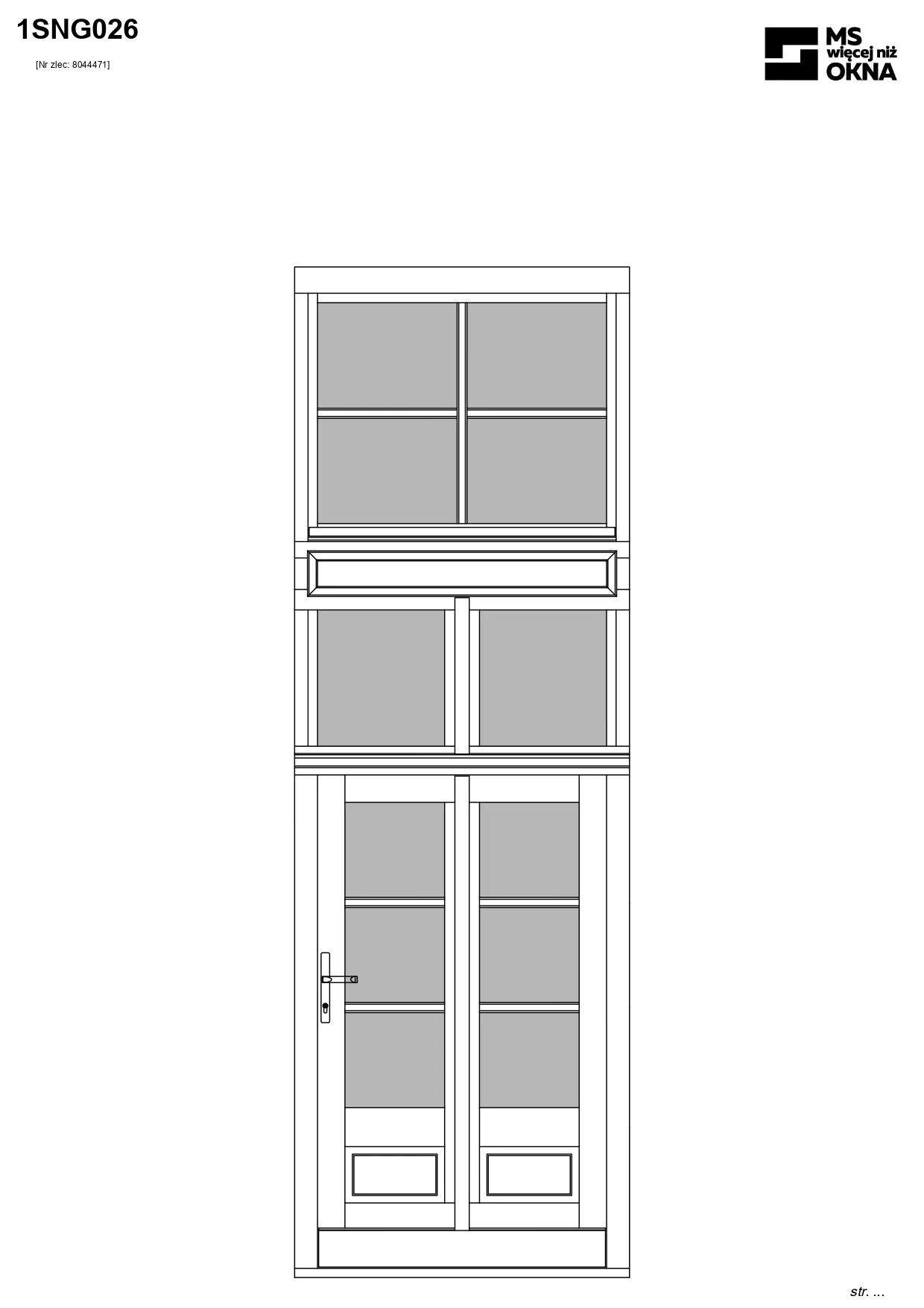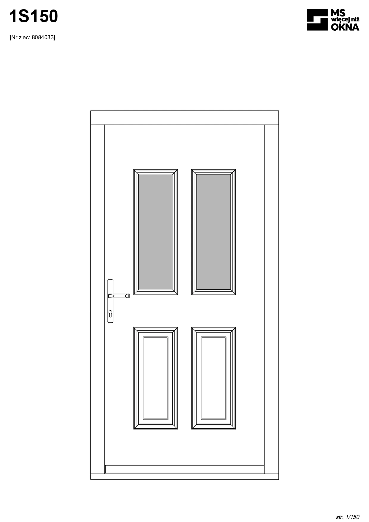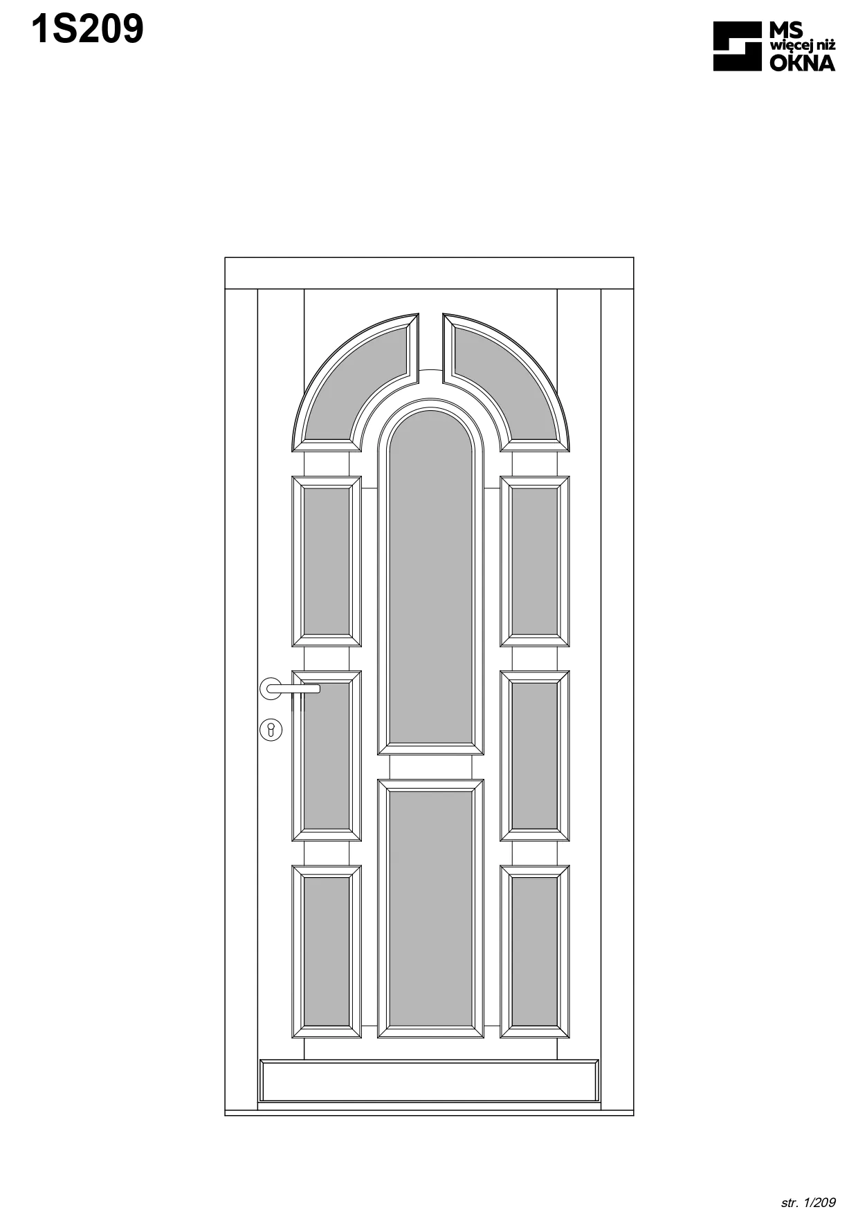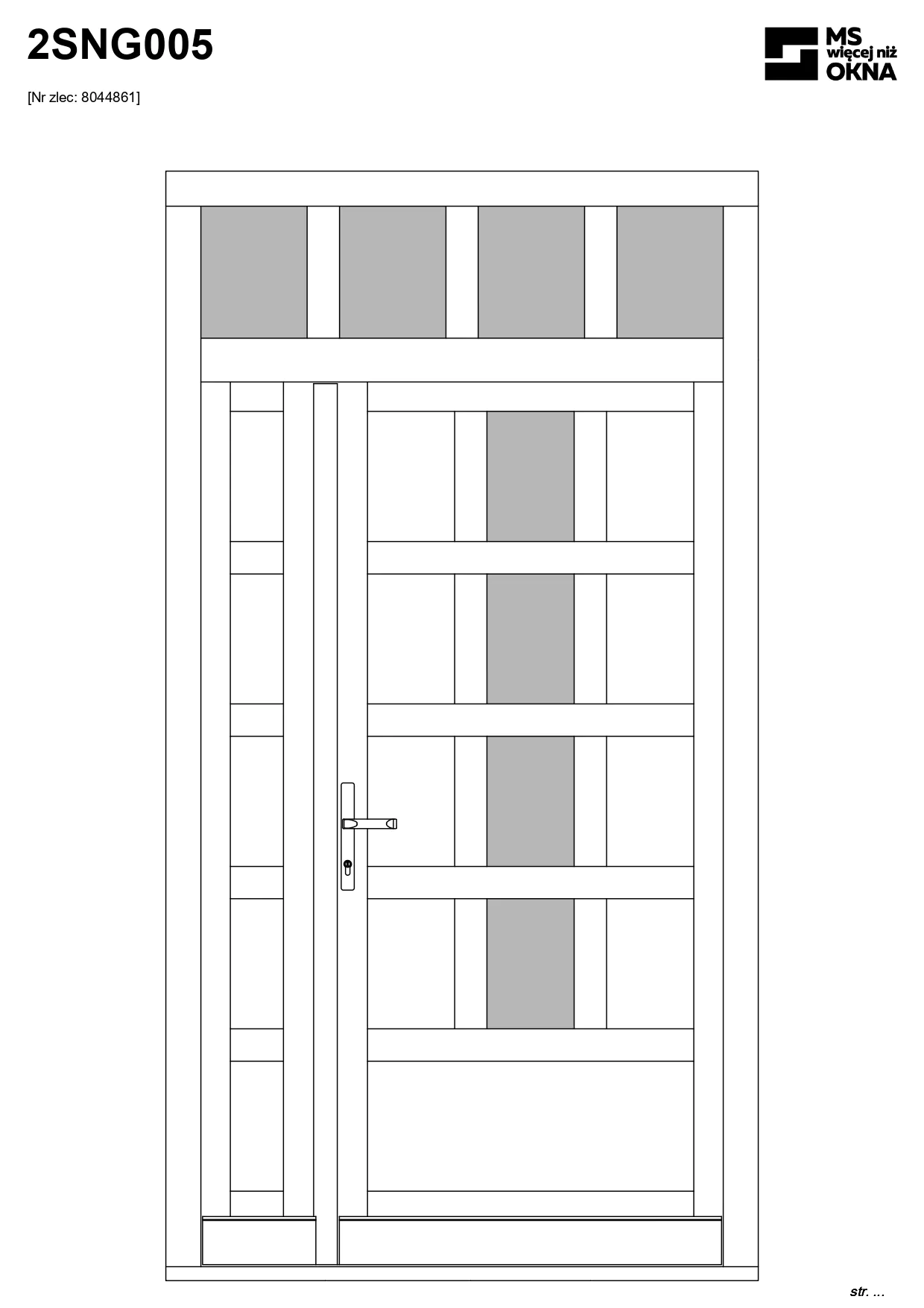 - version standard avec une poignée placée sur le vantail actif – le vantail passif est verrouillé à l’aide de loquets haut/bas, et le déverrouillage s’effectue à l’aide de la poignée,