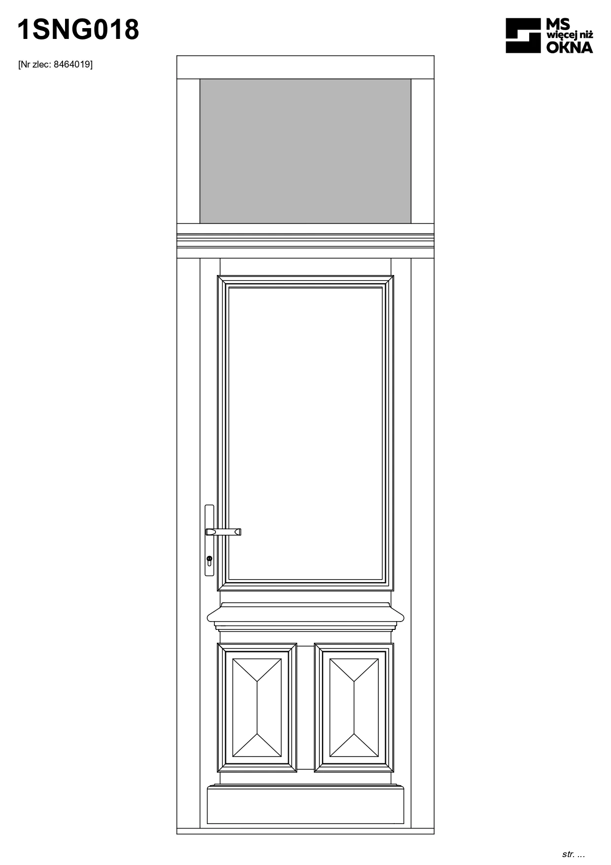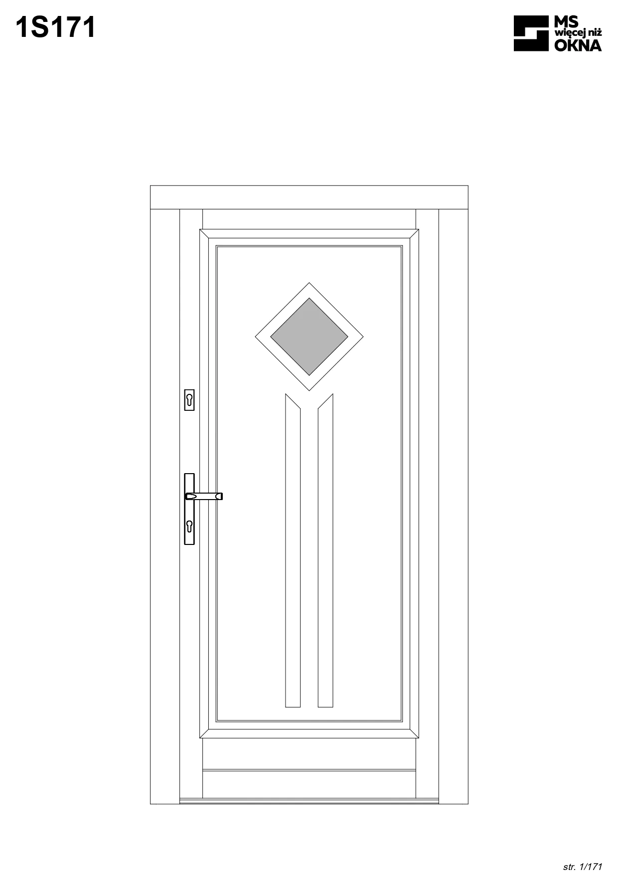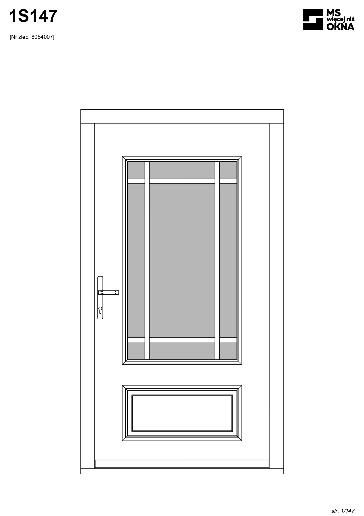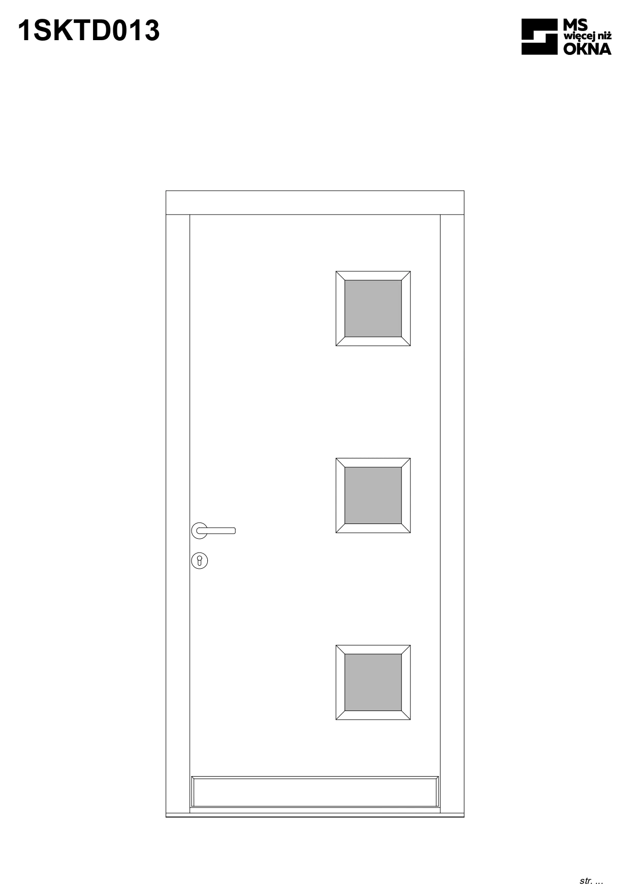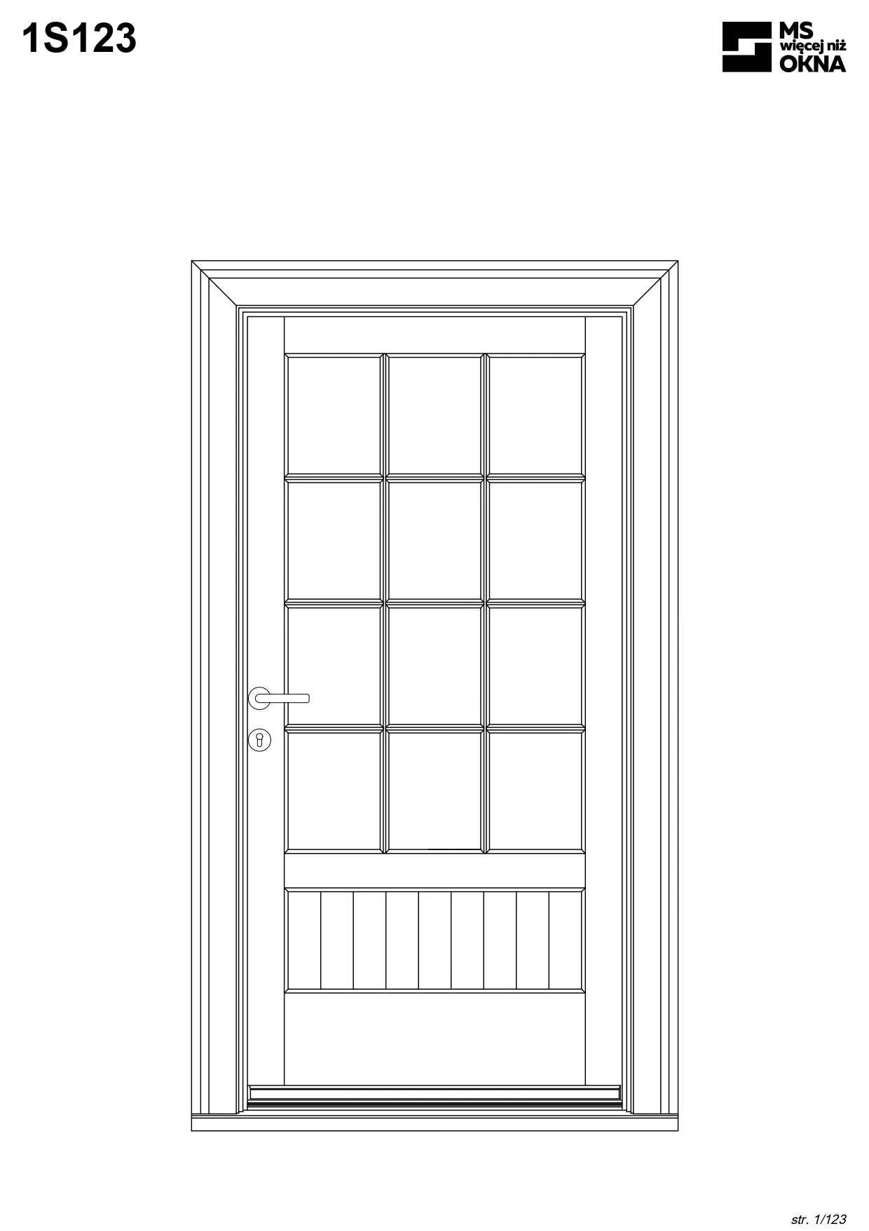 - version standard avec une poignée placée sur le vantail actif – le vantail passif est verrouillé à l’aide de loquets haut/bas, et le déverrouillage s’effectue à l’aide de la poignée,