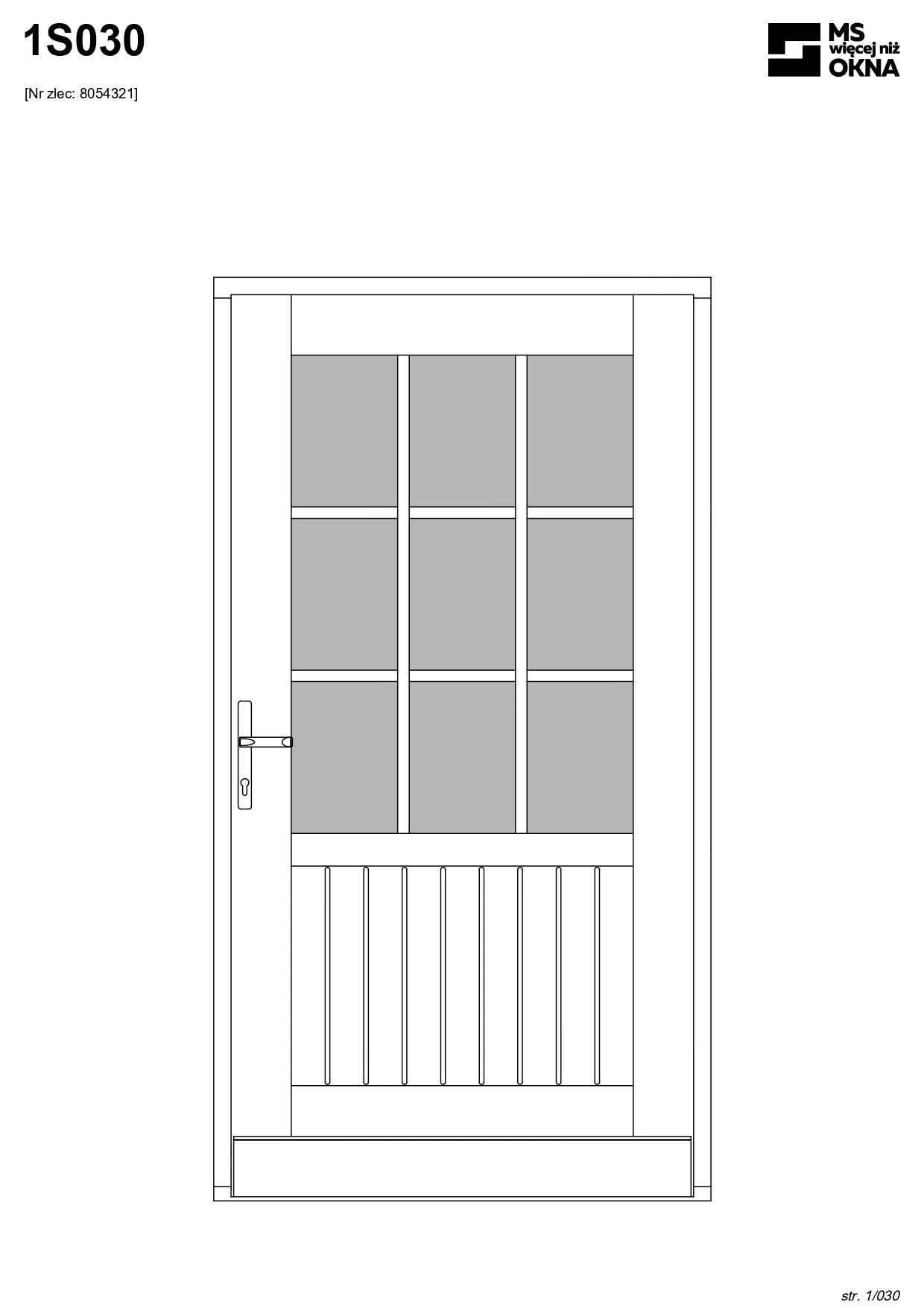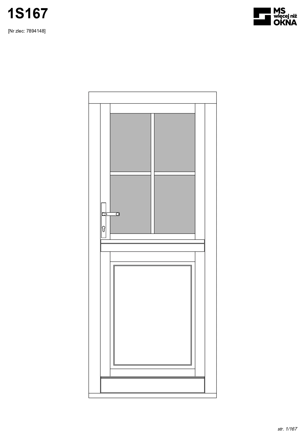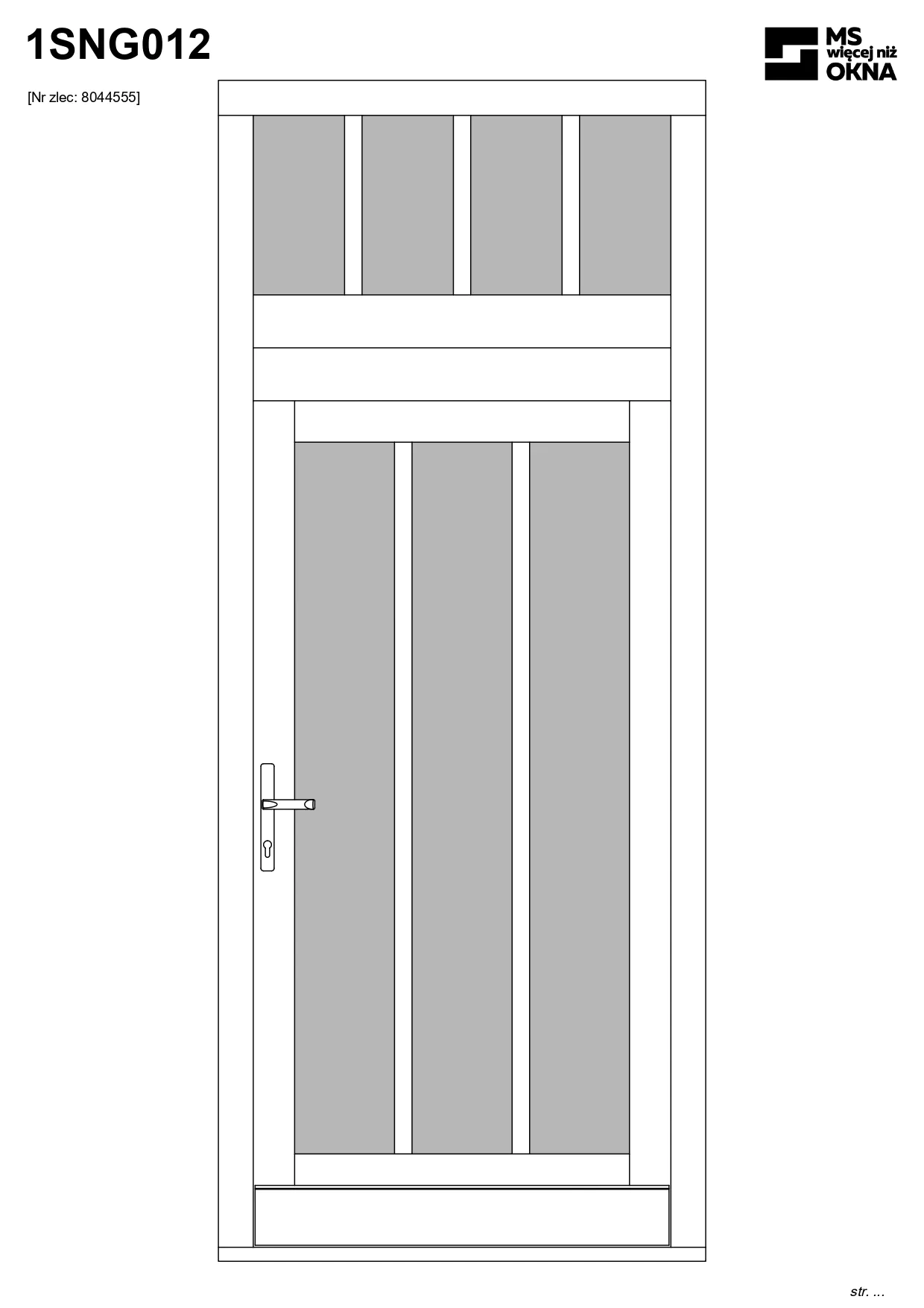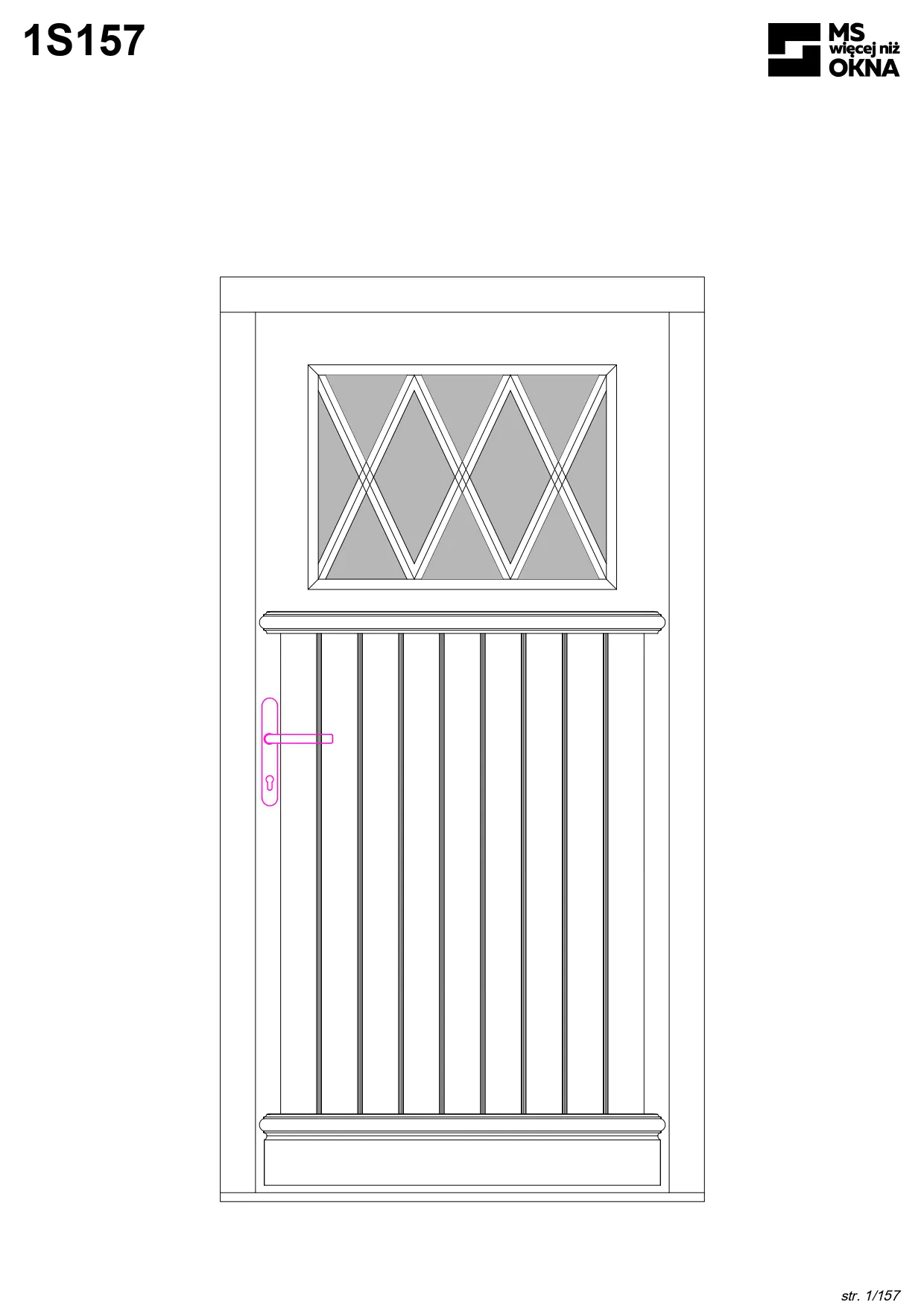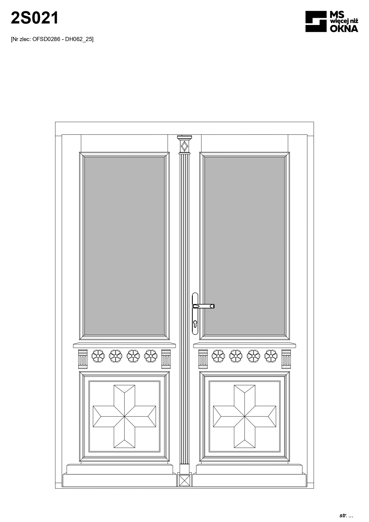- version standard avec une poignée placée sur le vantail actif – le vantail passif est verrouillé à l’aide de loquets haut/bas, et le déverrouillage s’effectue à l’aide de la poignée,