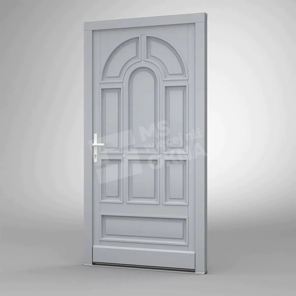 Les portes d’entrée en bois peuvent être équipées de plusieurs types de seuils, permettant au client d’obtenir une solution optimale. Les graphiques ci-dessous montrent des portes à cadre de la gamme de produits Modern (épaisseur du profil : 92 mm) avec des exemples de seuils.