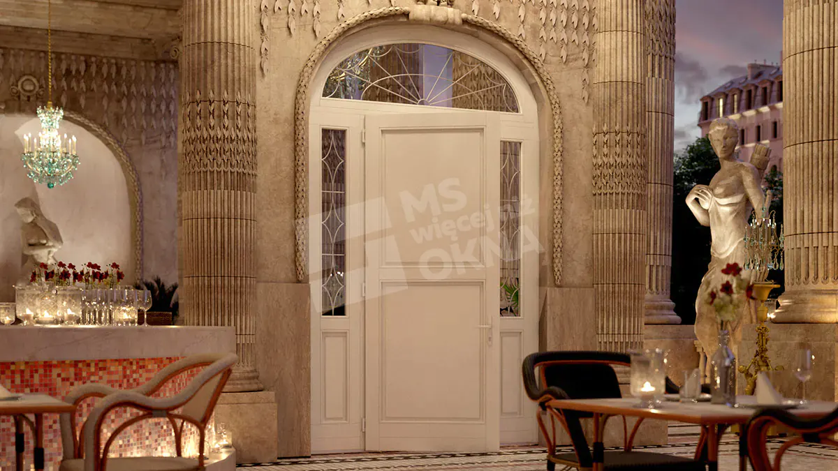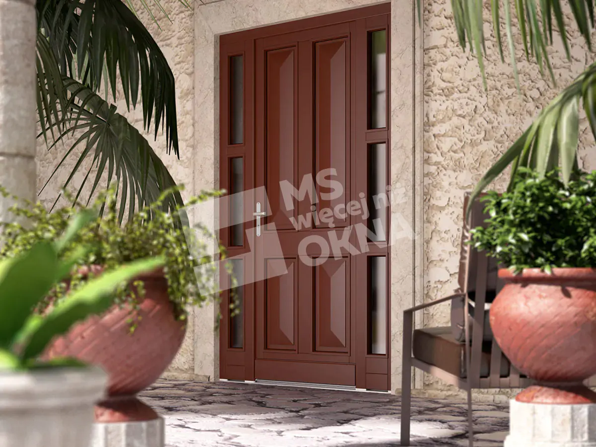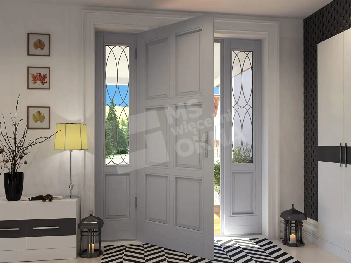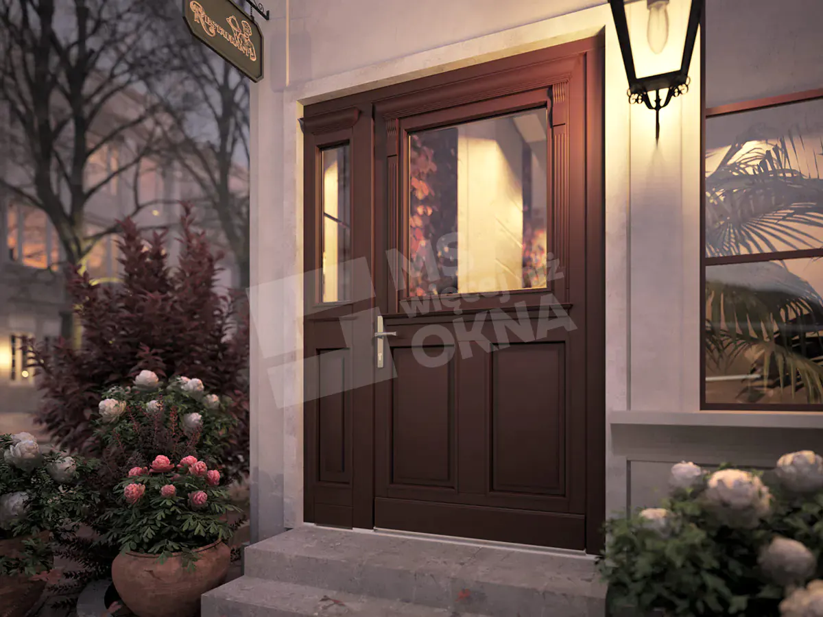 Vous trouverez ci-dessous des exemples de portes en bois se distinguant par leur construction robuste et leur design élégant. Chaque modèle disponible peut être associé à des fenêtres latérales et supérieures, offrant ainsi davantage de lumière et soulignant le caractère de l’espace. Grâce à leur large gamme de configurations, ces portes s’intègrent parfaitement aux intérieurs modernes comme classiques. Un autre avantage réside dans la personnalisation quasi illimitée des couleurs, des finitions et des ornements, permettant à chaque porte de refléter pleinement le style et les goûts de chacun.