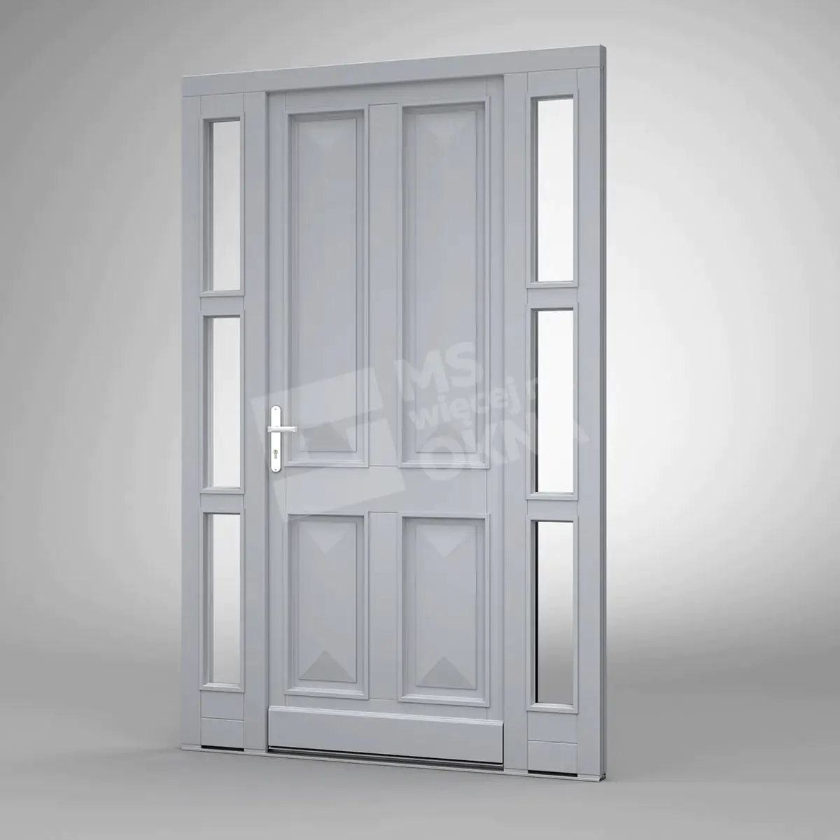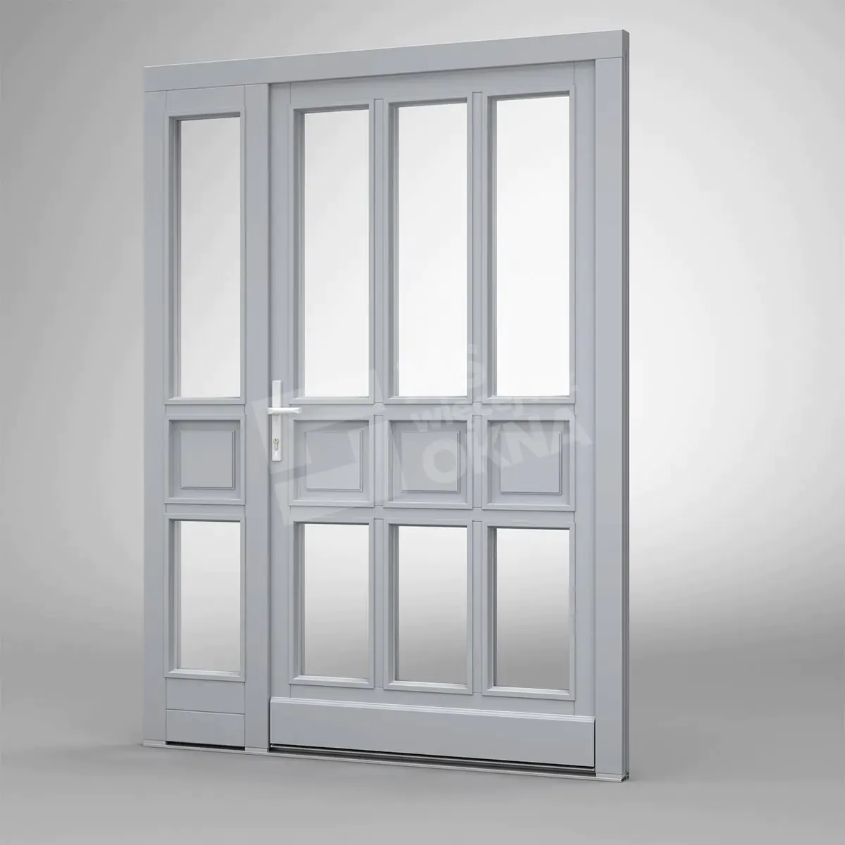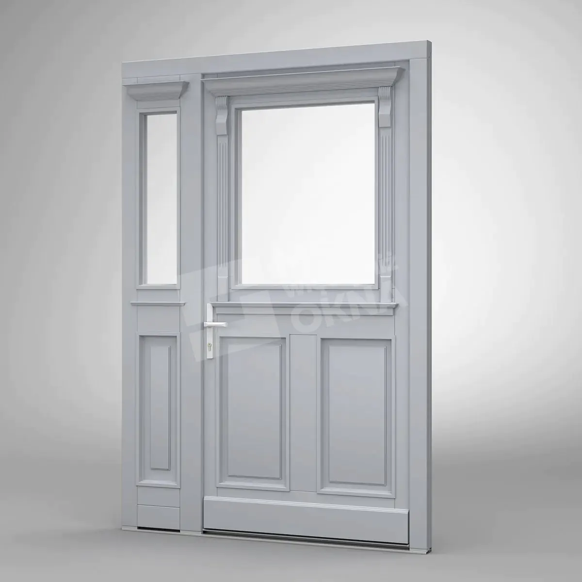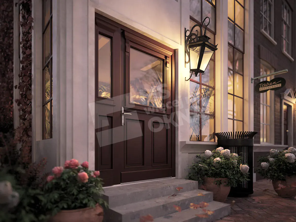 Vous trouverez ci-dessous des exemples de portes en bois se distinguant par leur construction robuste et leur design élégant. Chaque modèle disponible peut être associé à des fenêtres latérales et supérieures, offrant ainsi davantage de lumière et soulignant le caractère de l’espace. Grâce à leur large gamme de configurations, ces portes s’intègrent parfaitement aux intérieurs modernes comme classiques. Un autre avantage réside dans la personnalisation quasi illimitée des couleurs, des finitions et des ornements, permettant à chaque porte de refléter pleinement le style et les goûts de chacun.