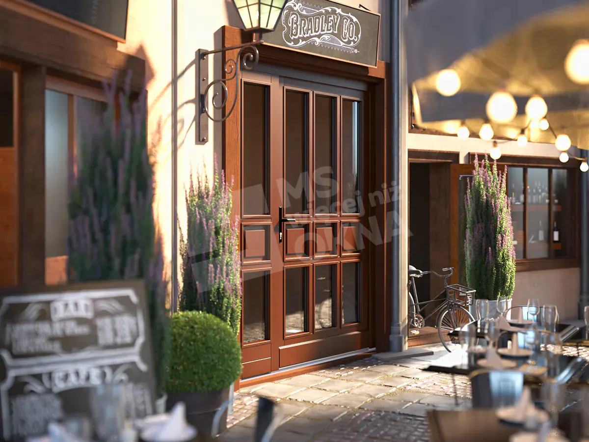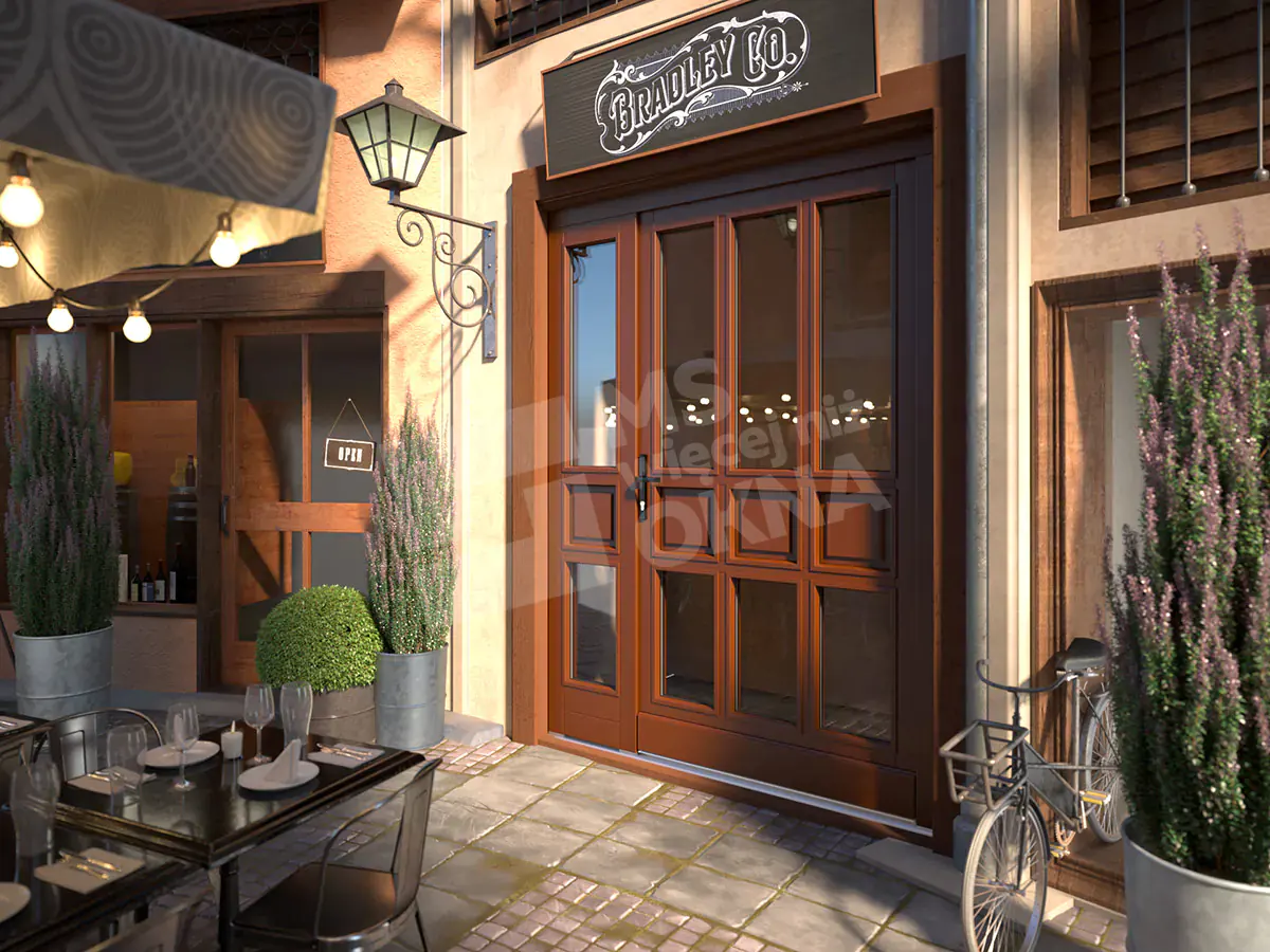 Les portes d’entrée doubles en bois sont fabriquées à partir de ce qu’on appelle poteau mobile. Dans ce type de construction, une fois les deux portes ouvertes, aucun élément ne restreint le passage. Le poteau mobile de MS Windows and Doors est disponible en deux variantes :