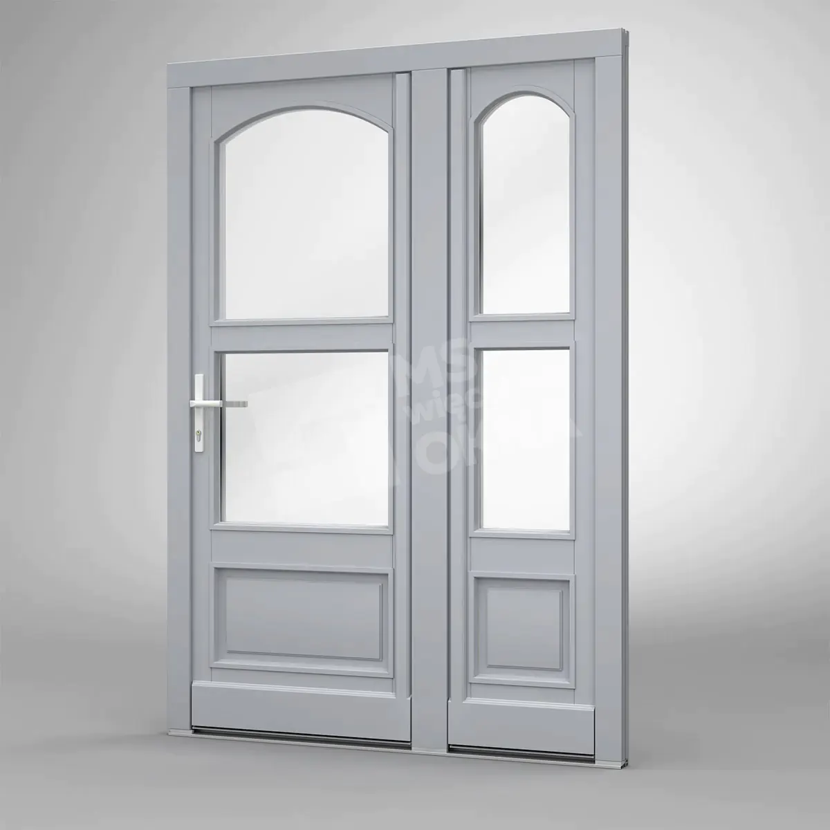 - variante optionnelle avec deux poignées (une sur le vantail actif et l’autre sur le vantail passif). Dans cette solution, chaque vantail s’ouvre en tournant la poignée.